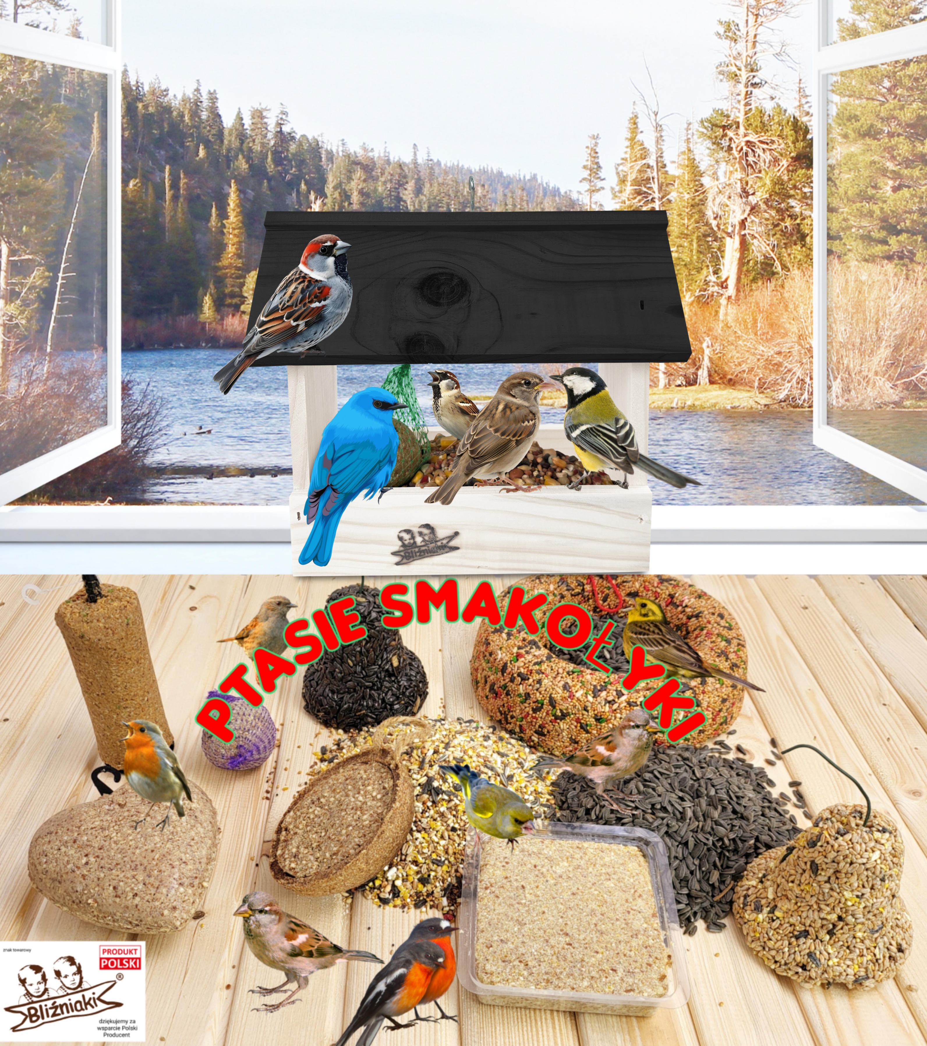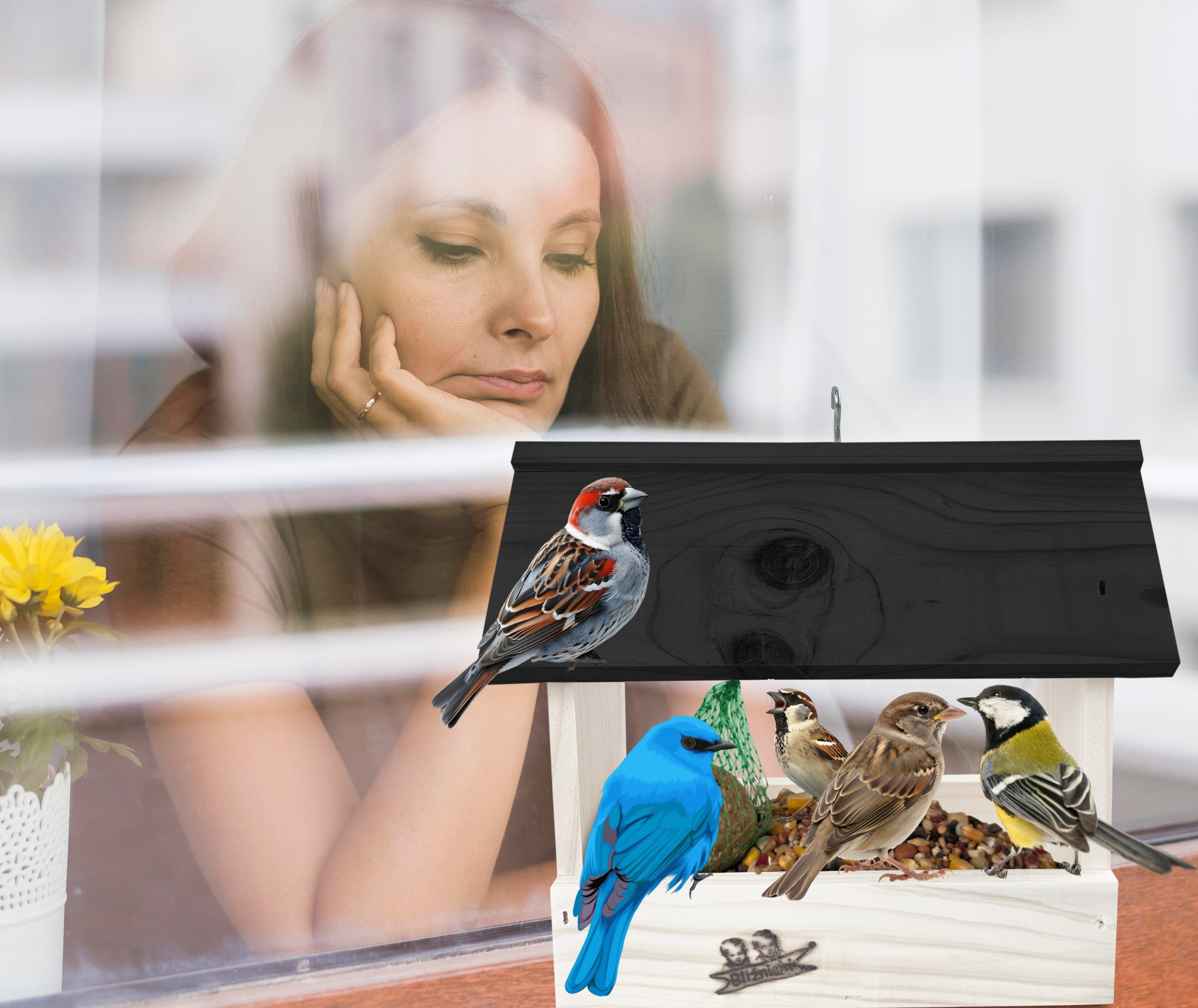 Karmnik drewniany mały idealne na parapet do ogrodu na zimę dla dzikich ptaków sikorki bogatki K204 BI CZ