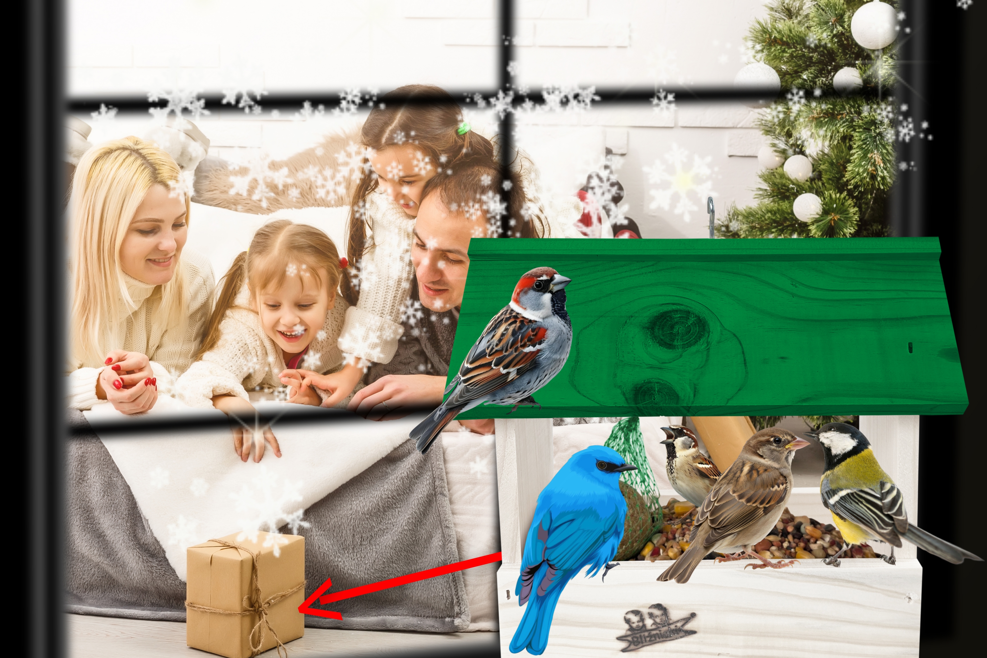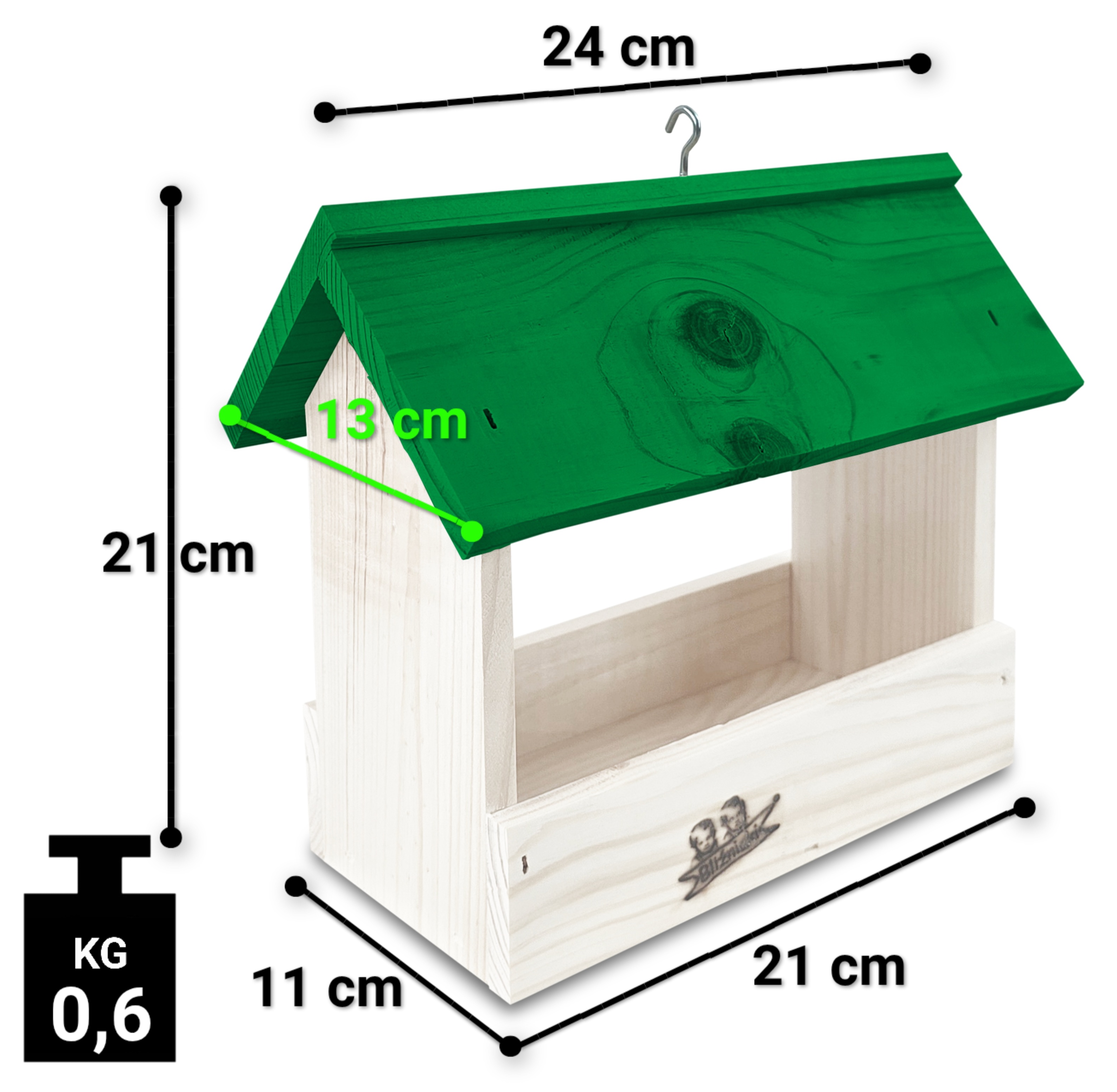 - Karmnik wykonany jest w całości z drewna iglastego, KOLOR BIAŁY Z ZIELONYM DACHEM