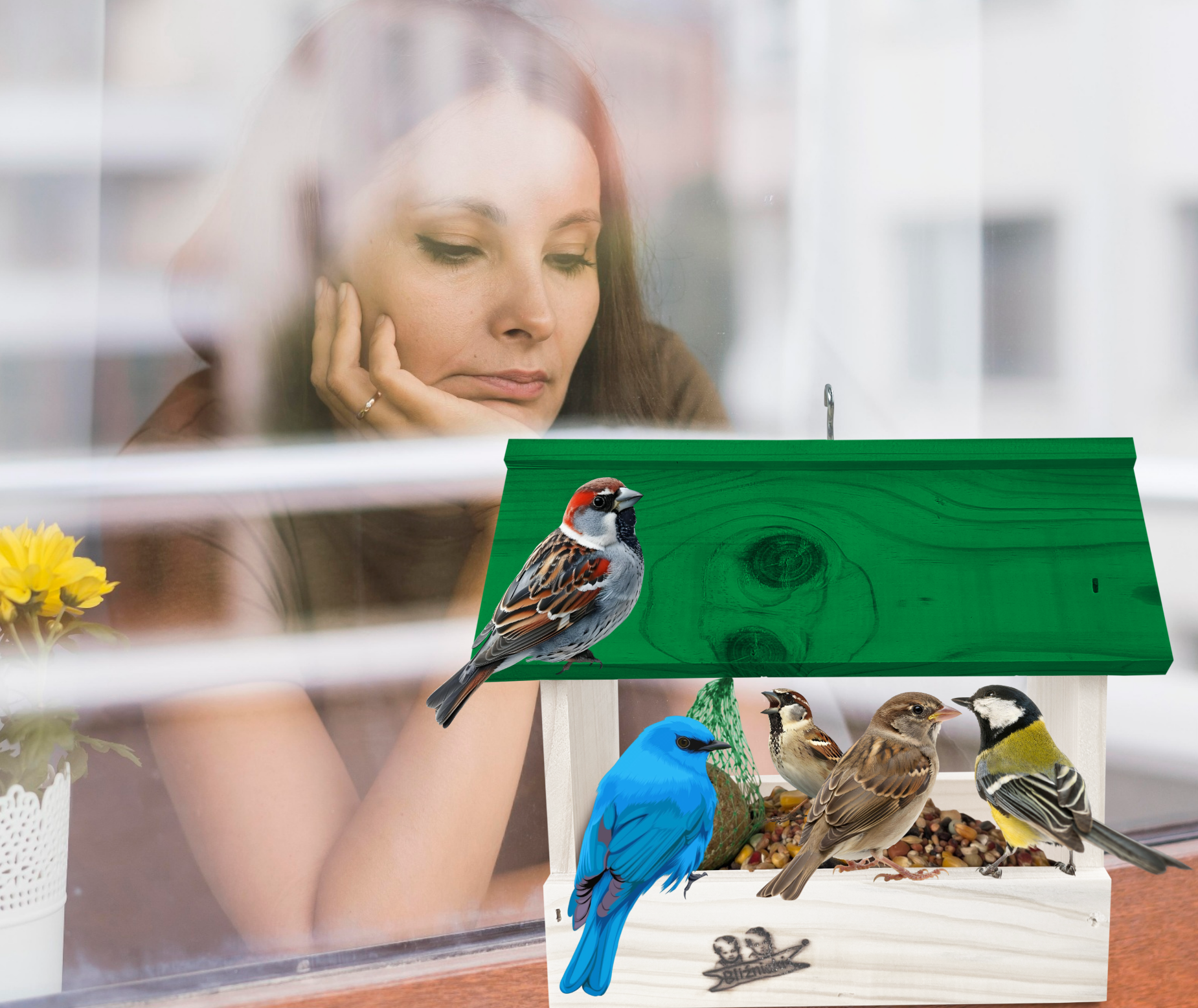 Karmnik drewniany mały idealne na parapet do ogrodu na zimę dla dzikich ptaków sikorki bogatki K204 BI K