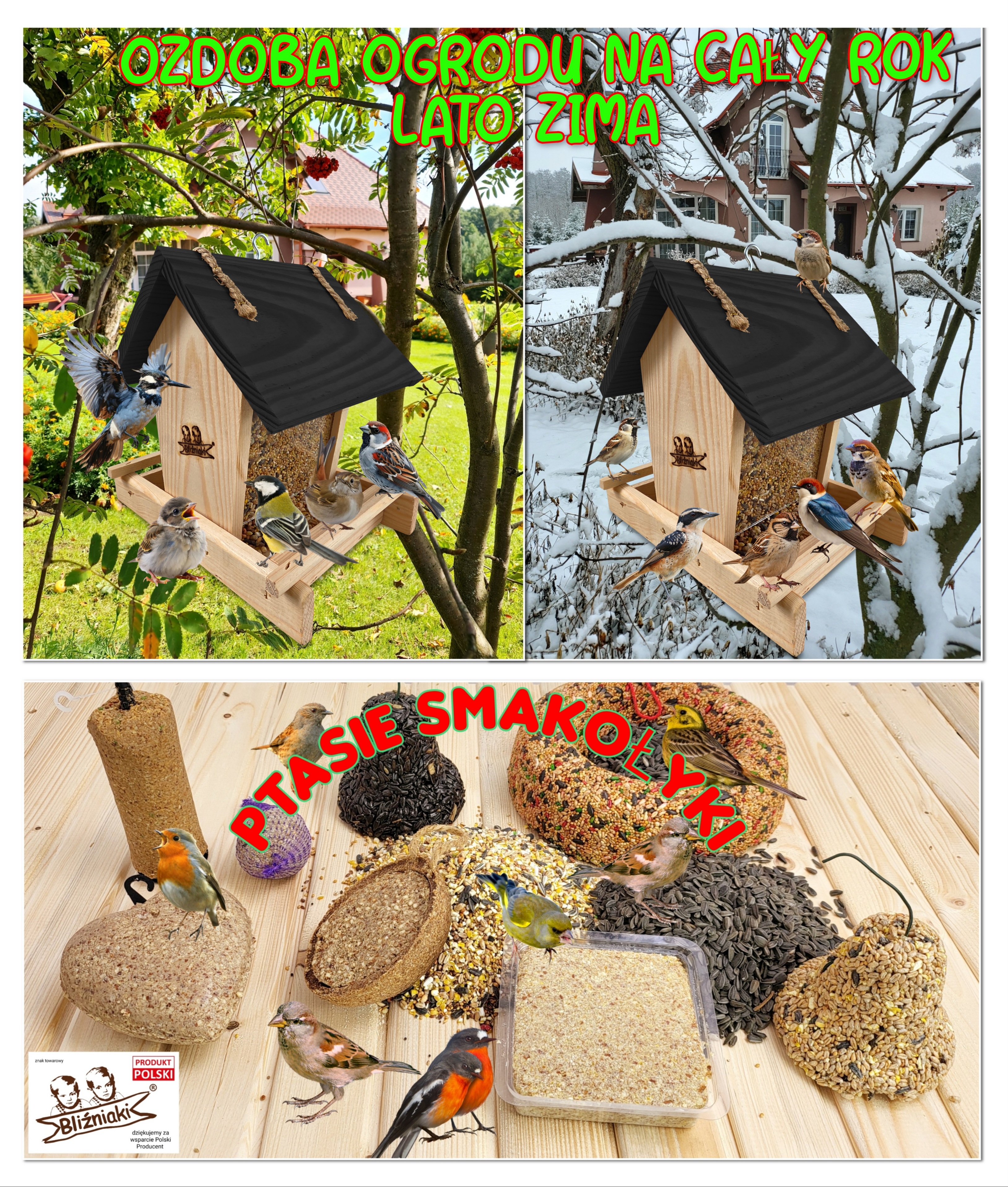 Wraz ze zbliżającym się okresem jesienno-zimowym nadchodzi trudny czas dla wszystkich gatunków ptaków, które w tym czasie nie migrują. Główny ich problem wiąże się z niedostatkiem pożywienia łatwego do zdobycia. Wszyscy powinniśmy myśleć pro-ekologicznie, dbać o bezpieczeństwo tych małych, ale bardzo pożytecznych zwierząt i zwiększyć ich szanse na przetrwanie śniegu i mrozu. Kupując karmnik z naszej aukcji i umieszczając w nim ptasi pokarm masz pewność, że przyczynisz się do utrzymania życia w Twojej okolicy.