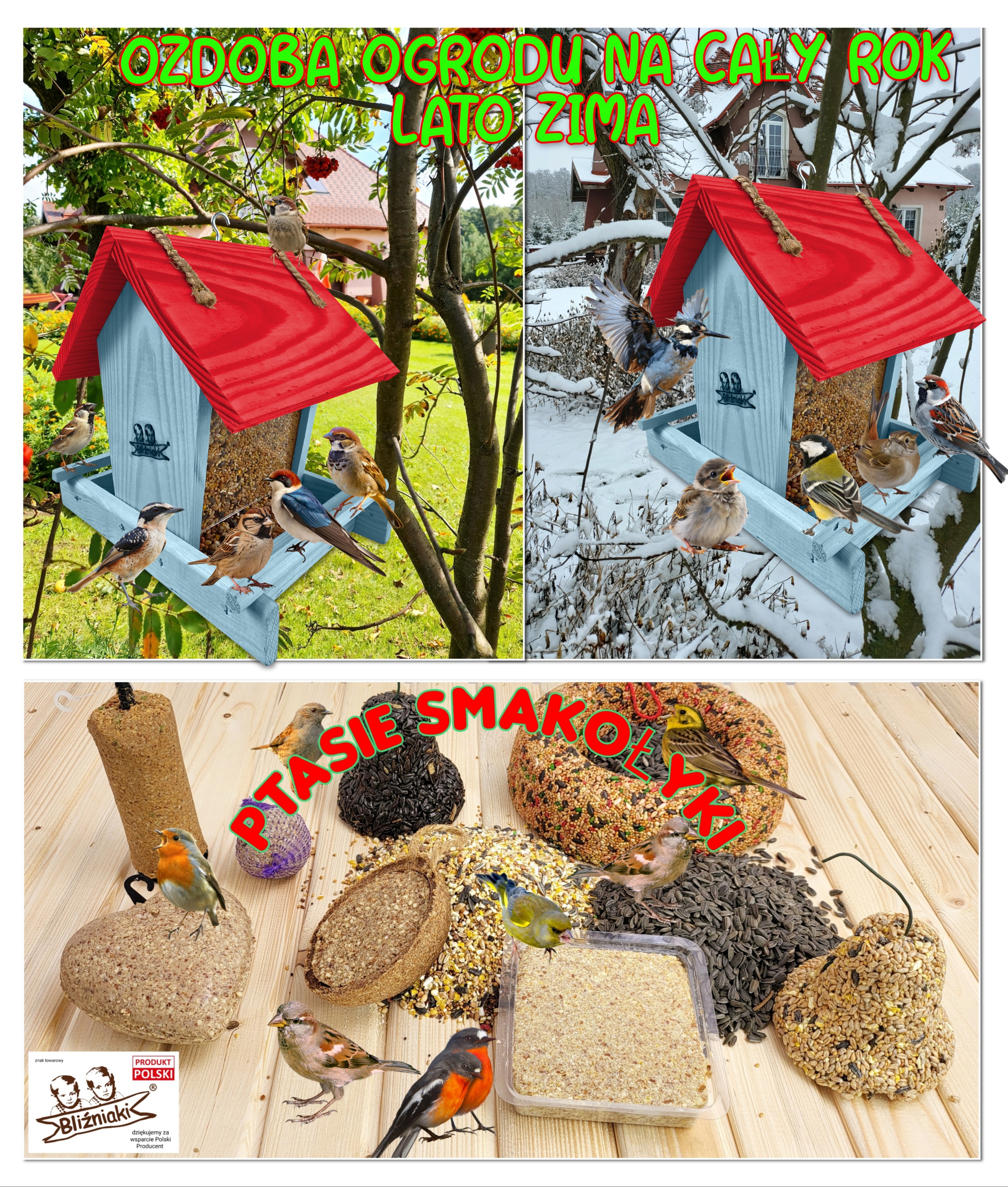 Wraz ze zbliżającym się okresem jesienno-zimowym nadchodzi trudny czas dla wszystkich gatunków ptaków, które w tym czasie nie migrują. Główny ich problem wiąże się z niedostatkiem pożywienia łatwego do zdobycia. Wszyscy powinniśmy myśleć pro-ekologicznie, dbać o bezpieczeństwo tych małych, ale bardzo pożytecznych zwierząt i zwiększyć ich szanse na przetrwanie śniegu i mrozu. Kupując karmnik z naszej aukcji i umieszczając w nim ptasi pokarm masz pewność, że przyczynisz się do utrzymania życia w Twojej okolicy.