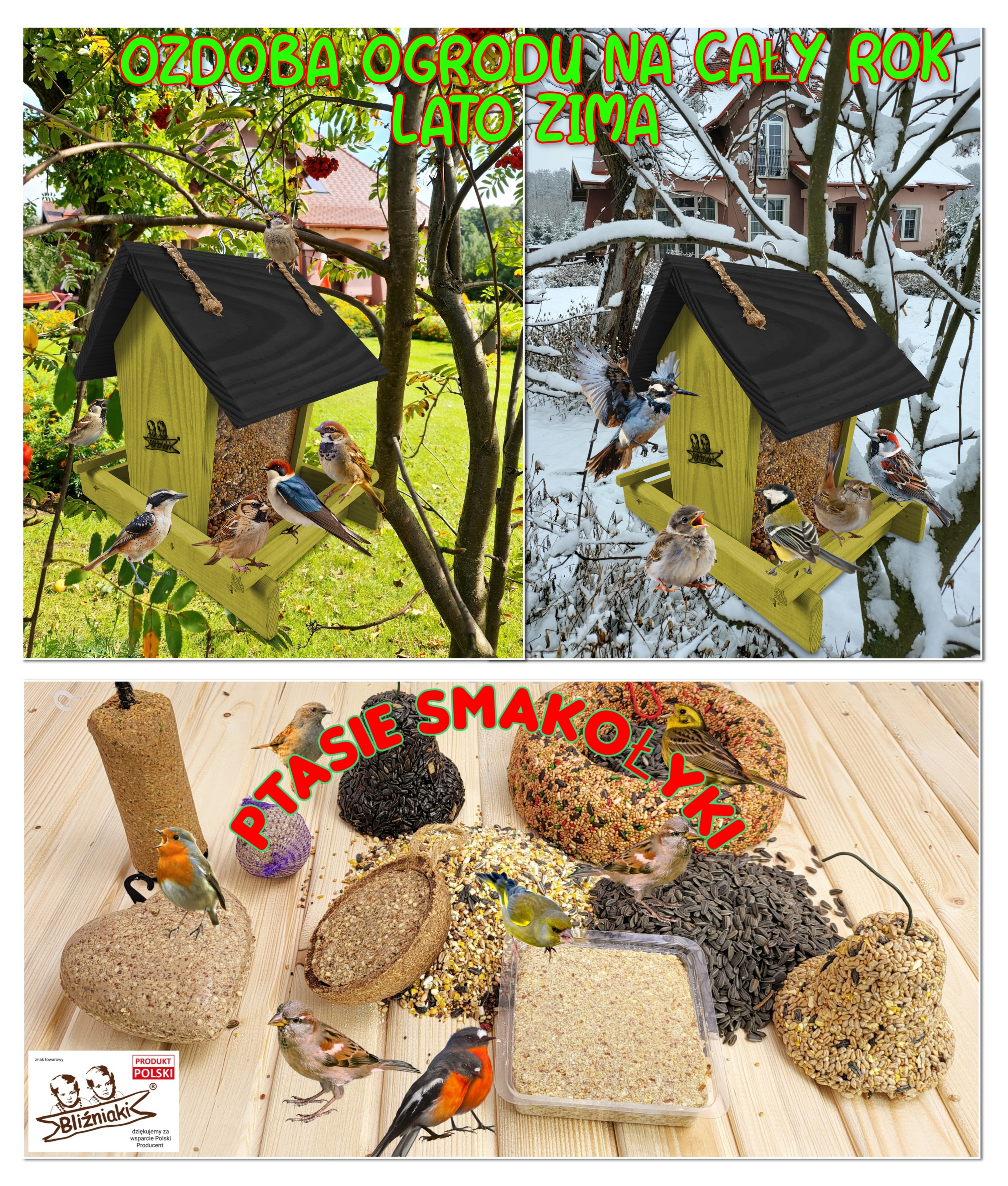 Wraz ze zbliżającym się okresem jesienno-zimowym nadchodzi trudny czas dla wszystkich gatunków ptaków, które w tym czasie nie migrują. Główny ich problem wiąże się z niedostatkiem pożywienia łatwego do zdobycia. Wszyscy powinniśmy myśleć pro-ekologicznie, dbać o bezpieczeństwo tych małych, ale bardzo pożytecznych zwierząt i zwiększyć ich szanse na przetrwanie śniegu i mrozu. Kupując karmnik z naszej aukcji i umieszczając w nim ptasi pokarm masz pewność, że przyczynisz się do utrzymania życia w Twojej okolicy.