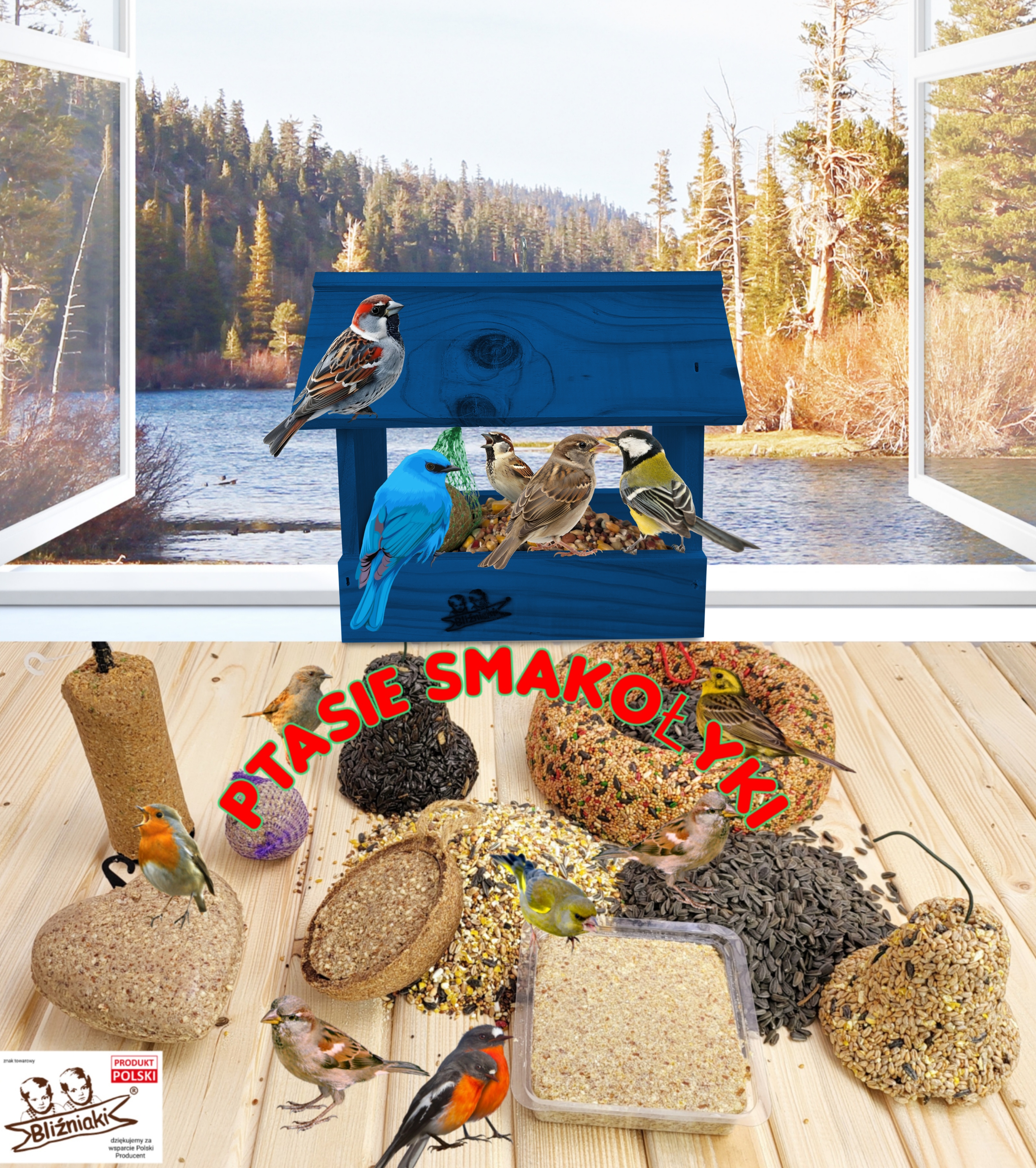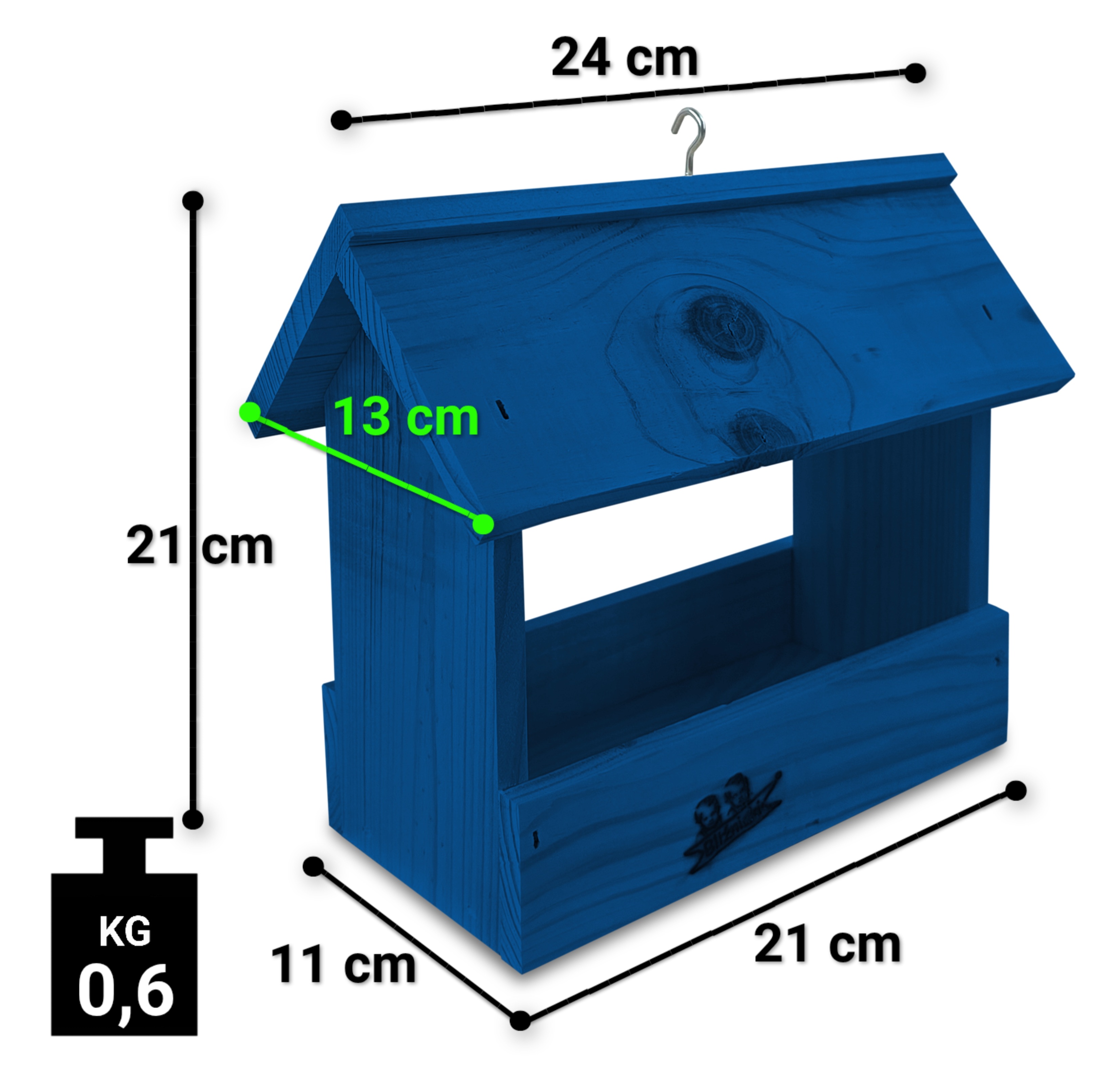 - Karmnik wykonany jest w całości z drewna iglastego, KOLOR CIEMNONIEBIESKI