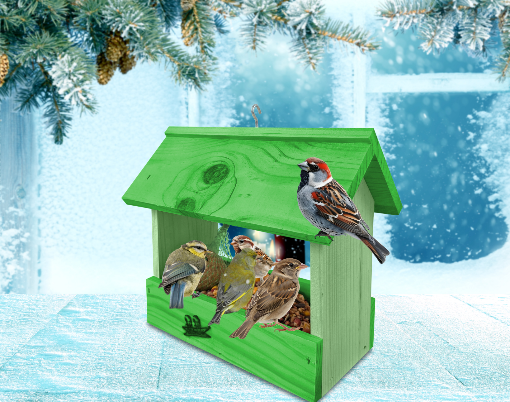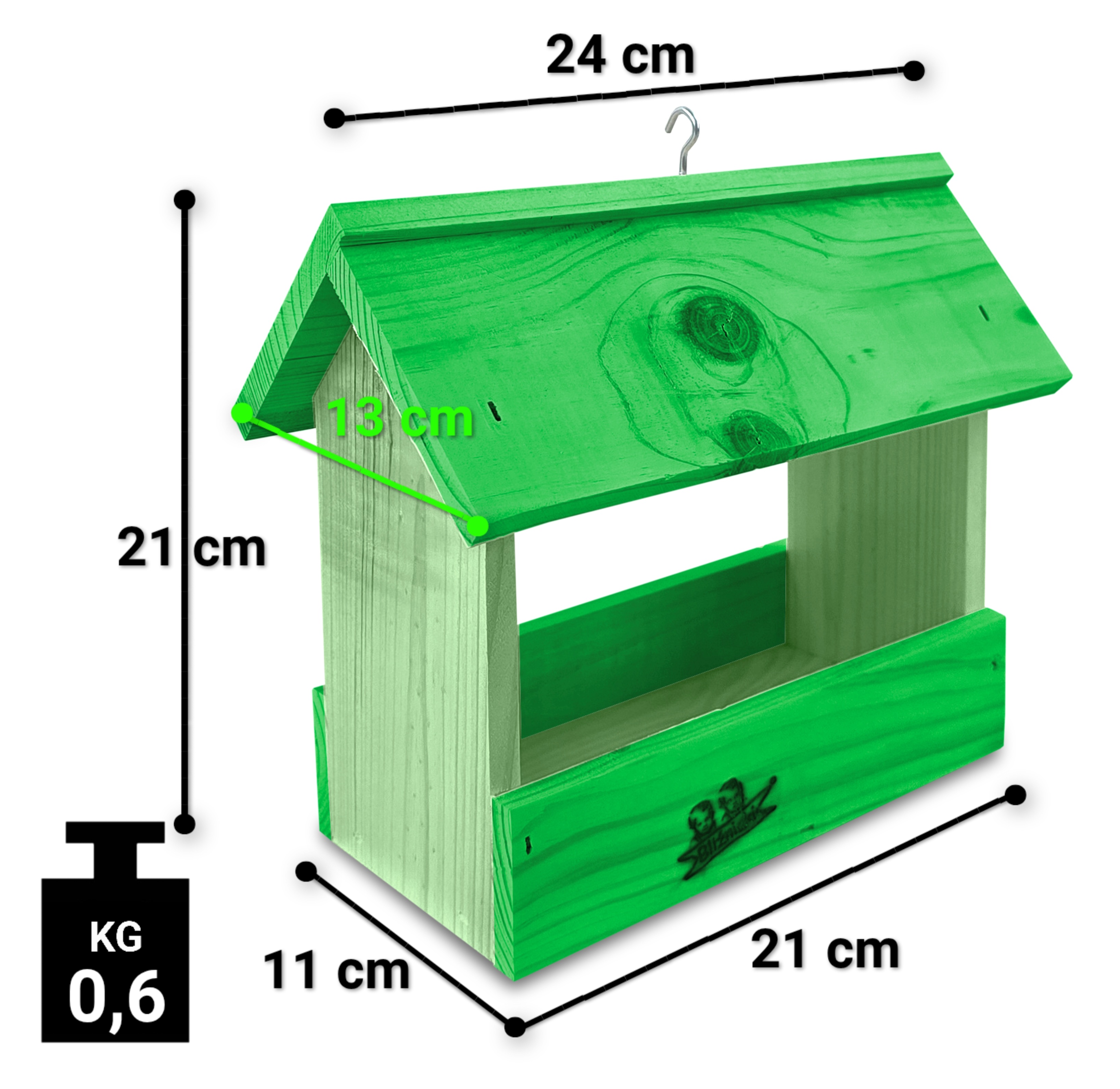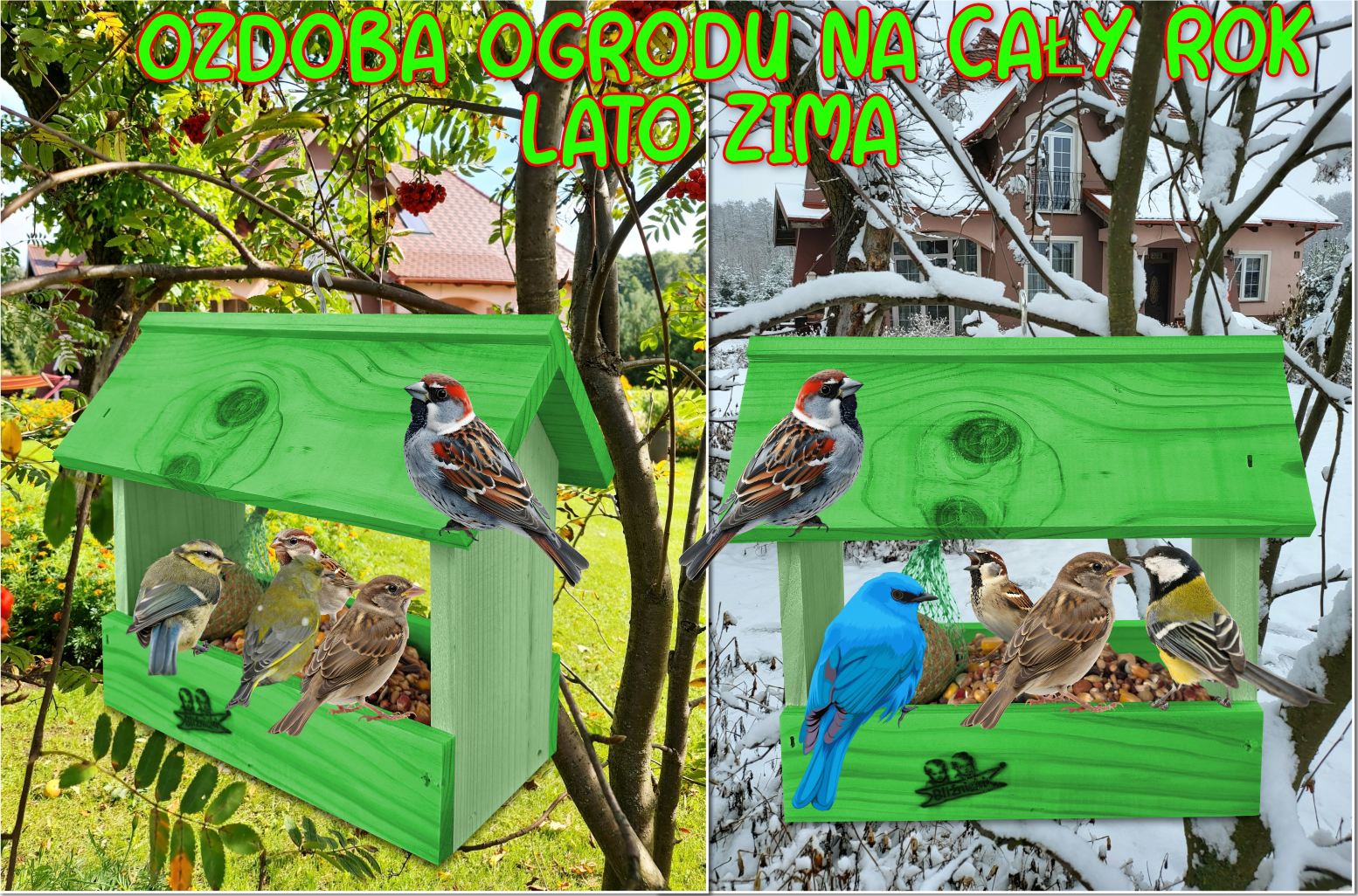 - Karmnik wykonany jest w całości z drewna iglastego, KOLOR DWA ODCIENIE ZIELENI
