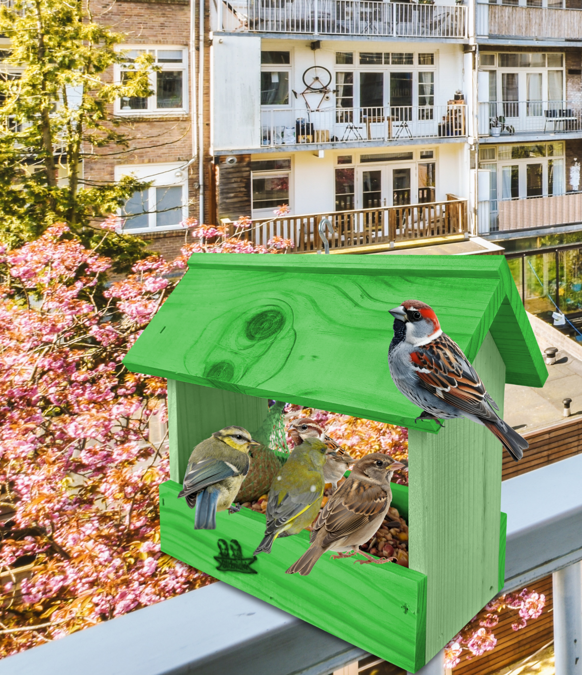 Przedmiotem sprzedaży jest ozdobny drewniany karmnik dla ptaków budka domek na balkon K204a ZZP ZZ w dwóch odcieniach zieleni