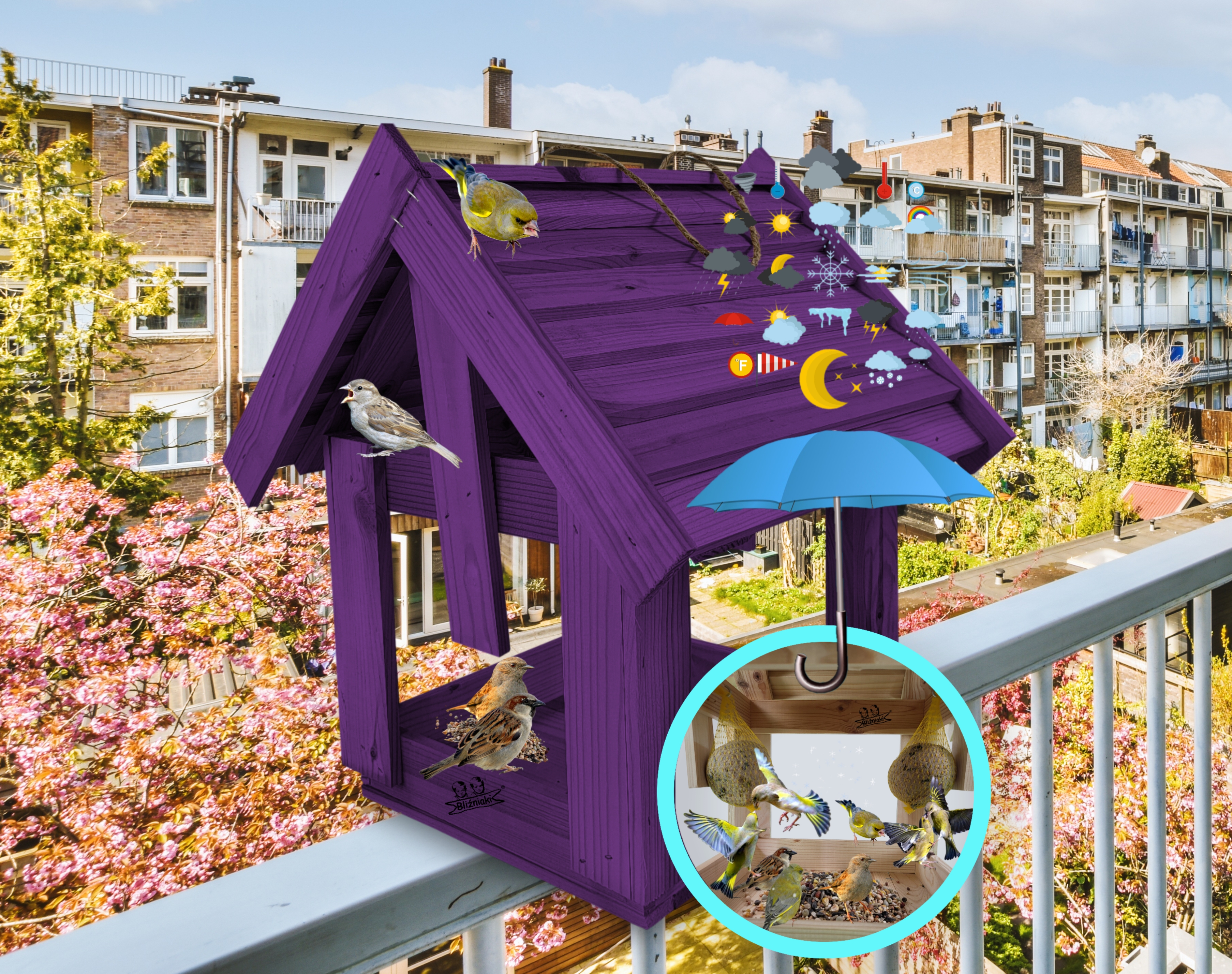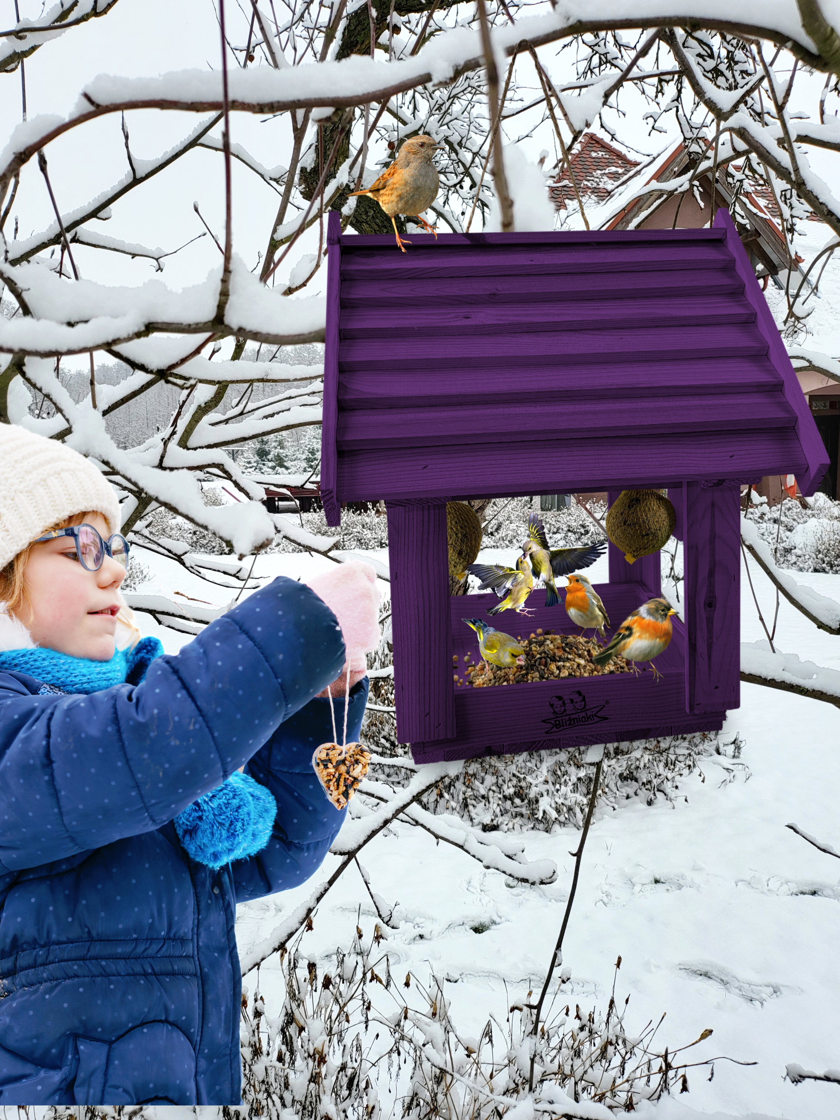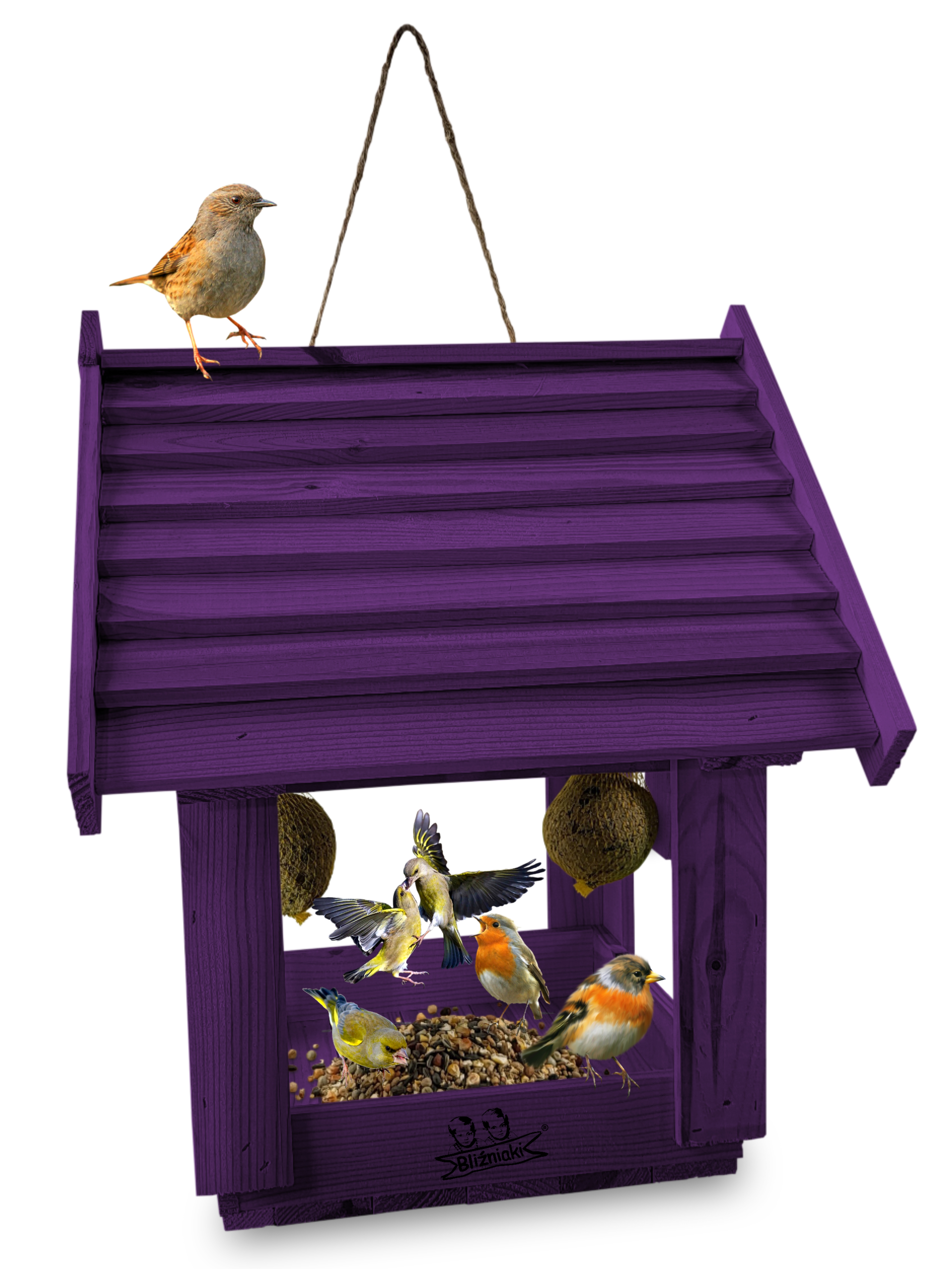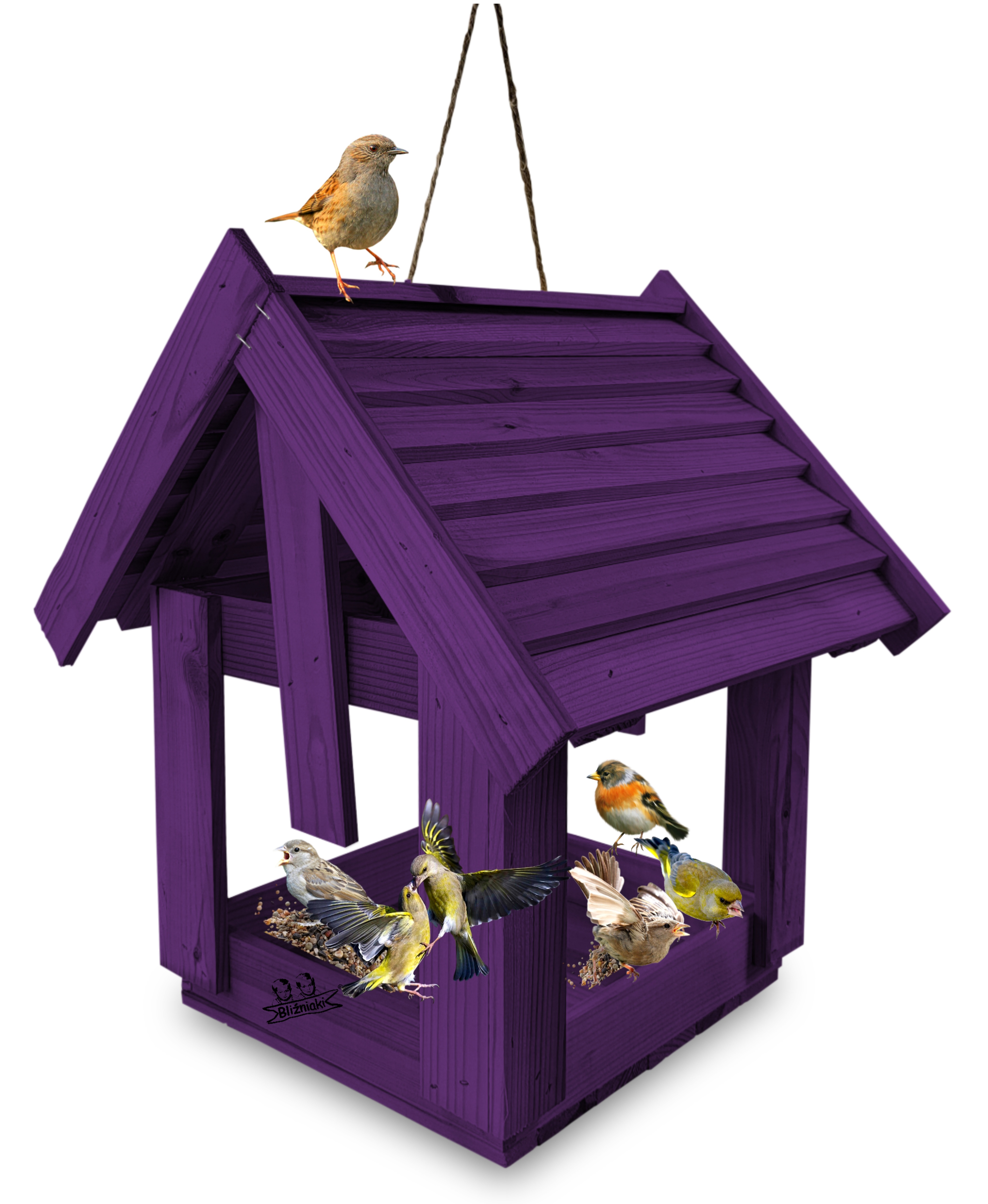 Karmnik w kolorze FIOLETOWYM jest zabezpieczony metodą impregnowania. Środek na bazie wody użyty do impregnacji jest w pełni ekologiczny i bezpieczny dla ludzi i zwierząt. Zabezpieczone w taki sposób drewno sprawia, że karmnik jest odporny na szkodliwe działanie wody oraz wilgoci, promieni UV, a także grzybów i pleśni, może być więc przechowywany przez cały rok na zewnątrz.