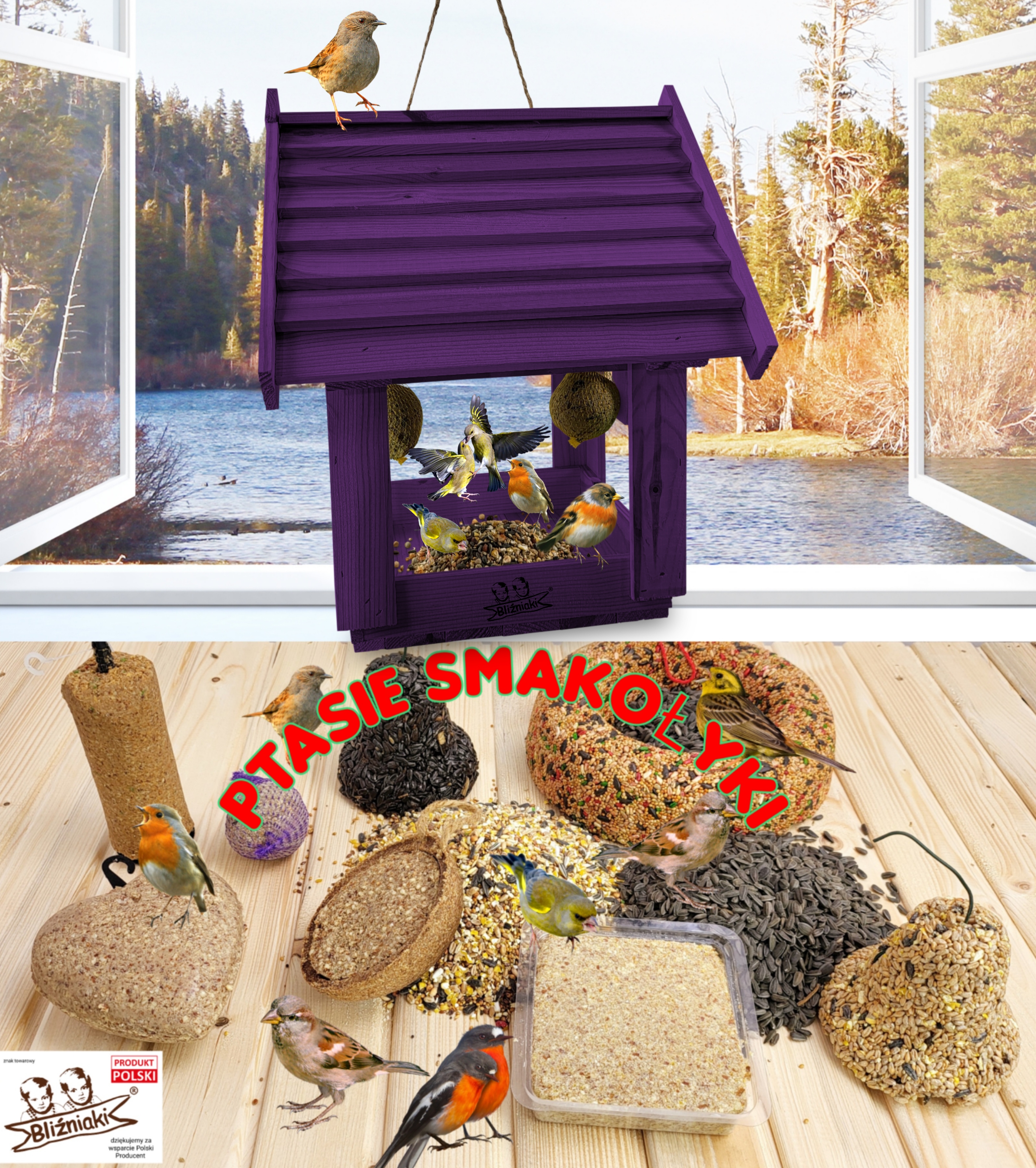 DUŻY KARMNIK Z HACZYKIEM NA KARMĘ ZAWIESZANY DOMEK DLA PTAKÓW