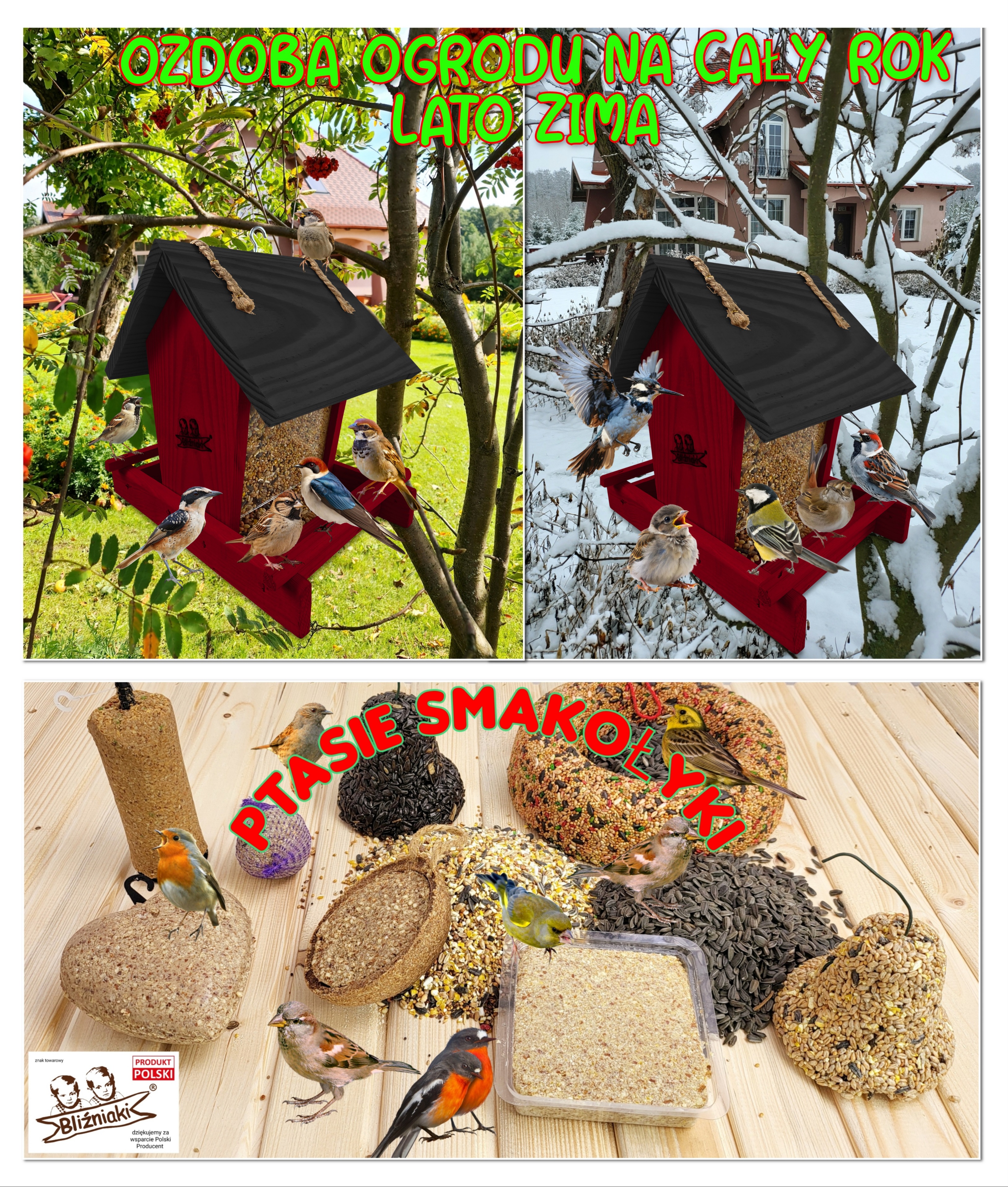 Wraz ze zbliżającym się okresem jesienno-zimowym nadchodzi trudny czas dla wszystkich gatunków ptaków, które w tym czasie nie migrują. Główny ich problem wiąże się z niedostatkiem pożywienia łatwego do zdobycia. Wszyscy powinniśmy myśleć pro-ekologicznie, dbać o bezpieczeństwo tych małych, ale bardzo pożytecznych zwierząt i zwiększyć ich szanse na przetrwanie śniegu i mrozu. Kupując karmnik z naszej aukcji i umieszczając w nim ptasi pokarm masz pewność, że przyczynisz się do utrzymania życia w Twojej okolicy.