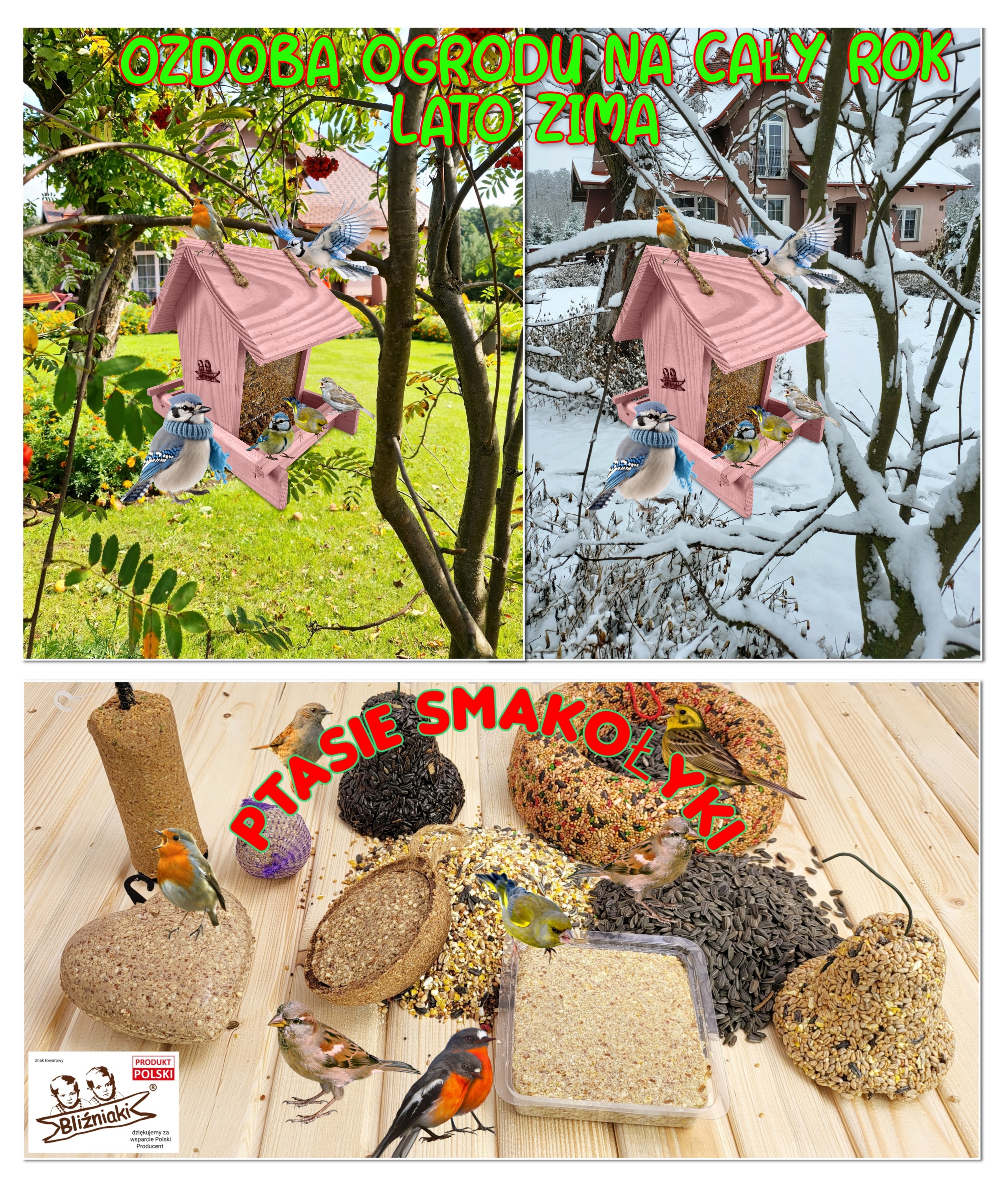 Wraz ze zbliżającym się okresem jesienno-zimowym nadchodzi trudny czas dla wszystkich gatunków ptaków, które w tym czasie nie migrują. Główny ich problem wiąże się z niedostatkiem pożywienia łatwego do zdobycia. Wszyscy powinniśmy myśleć pro-ekologicznie, dbać o bezpieczeństwo tych małych, ale bardzo pożytecznych zwierząt i zwiększyć ich szanse na przetrwanie śniegu i mrozu. Kupując karmnik z naszej aukcji i umieszczając w nim ptasi pokarm masz pewność, że przyczynisz się do utrzymania życia w Twojej okolicy.