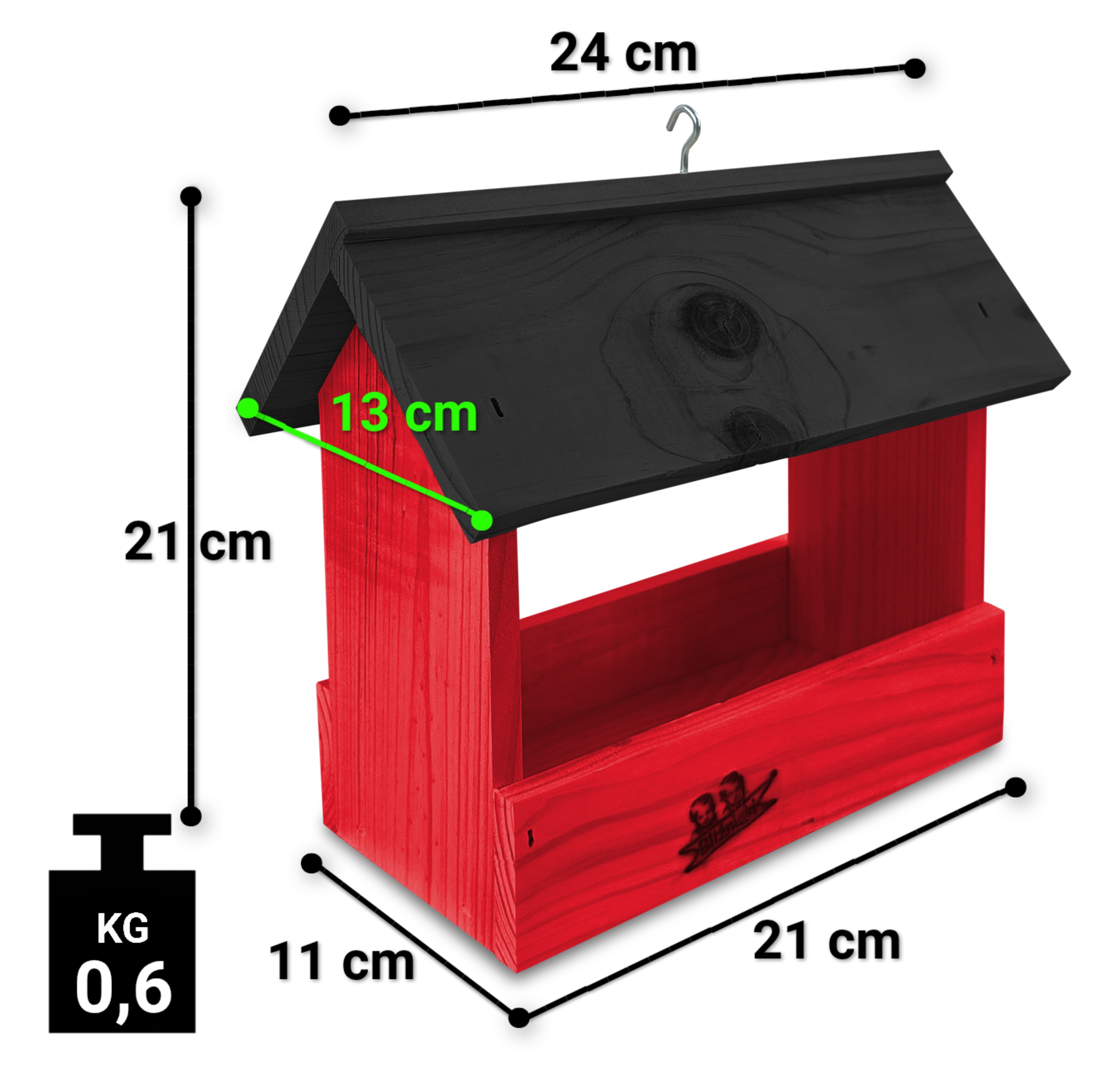- Karmnik wykonany jest w całości z drewna iglastego, KOLOR CZERWONY Z CZARNYM DACHEM