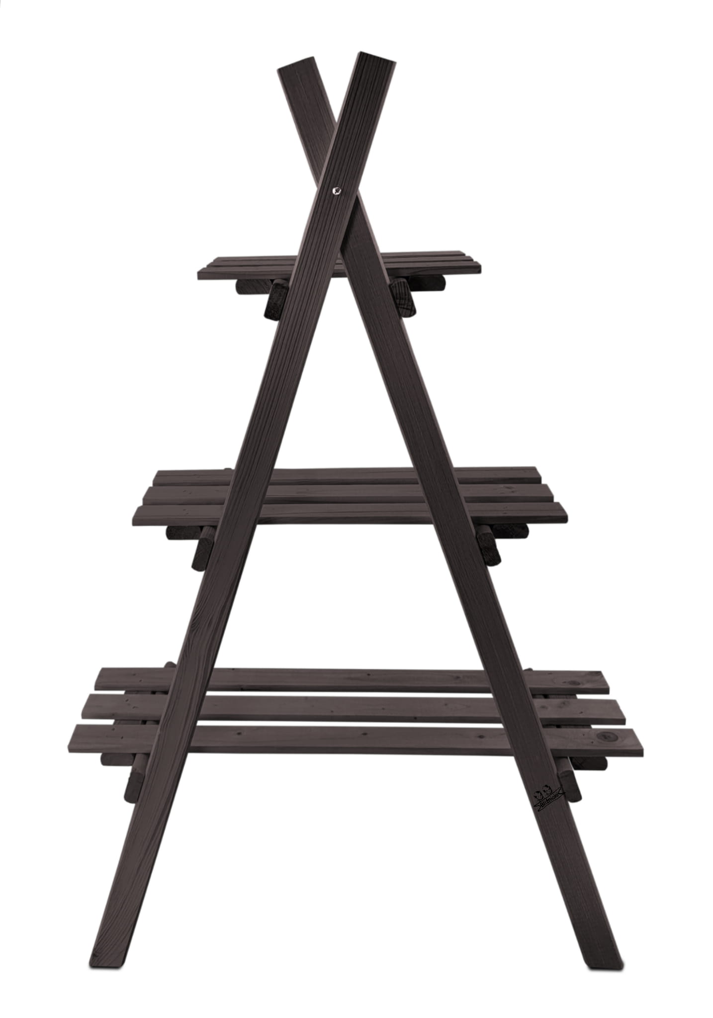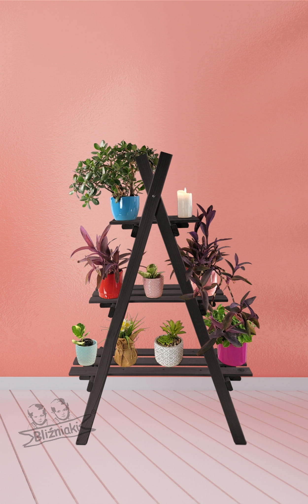 Regał został wykonany z solidnego drewna sosnowego, w kolorze CZARNYM. To bardzo praktyczny i stylowy element wyposażenia nowoczesnego domu pozwalający zadbać o należny porządek w pomieszczeniach jak i na zewnątrz. Nasz stojak może również pełnić rolę ozdobnego kwietnika do ustawienia na nim doniczek z Twoimi ulubionymi kwiatami na tarasie lub balkonie.