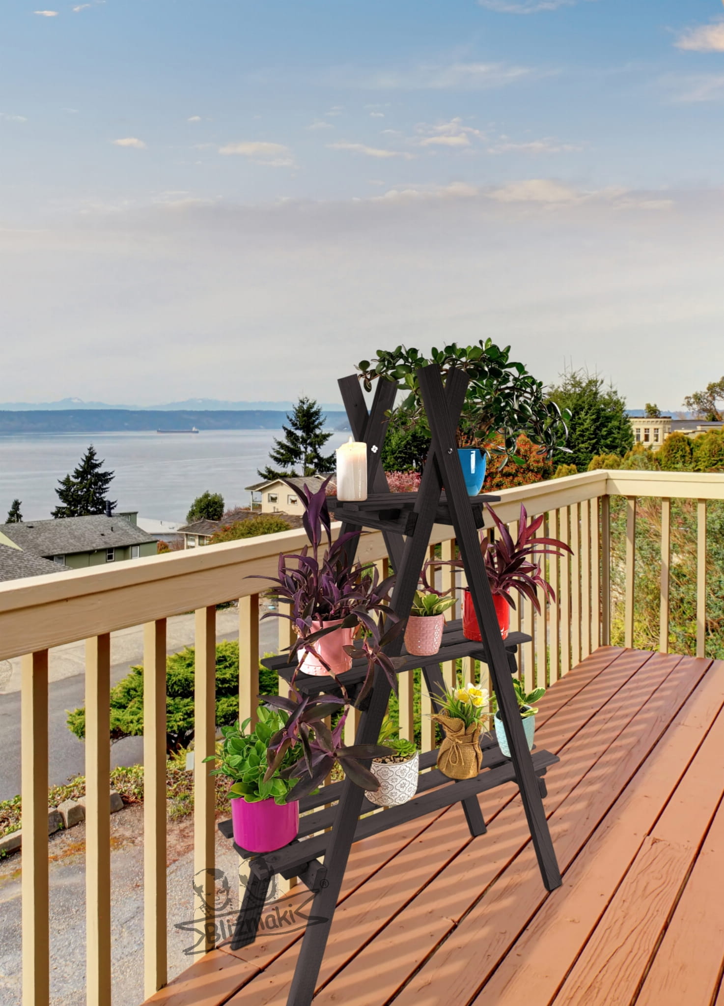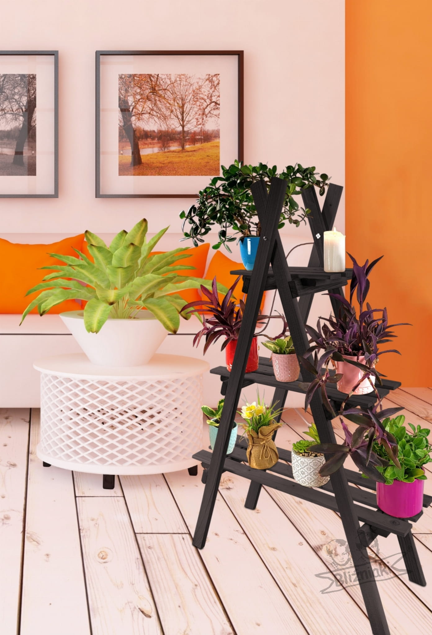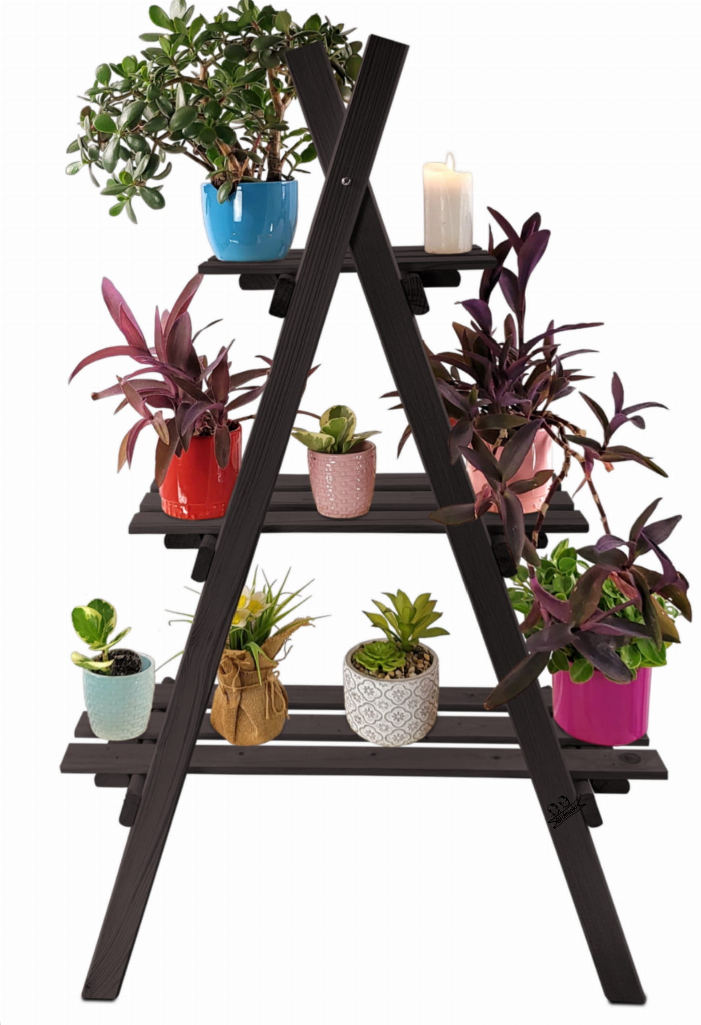 Kwietnik Regał Czarny Impregnowany z Trzema Półkami na Kwiaty w Doniczkach KWDR2 CZ