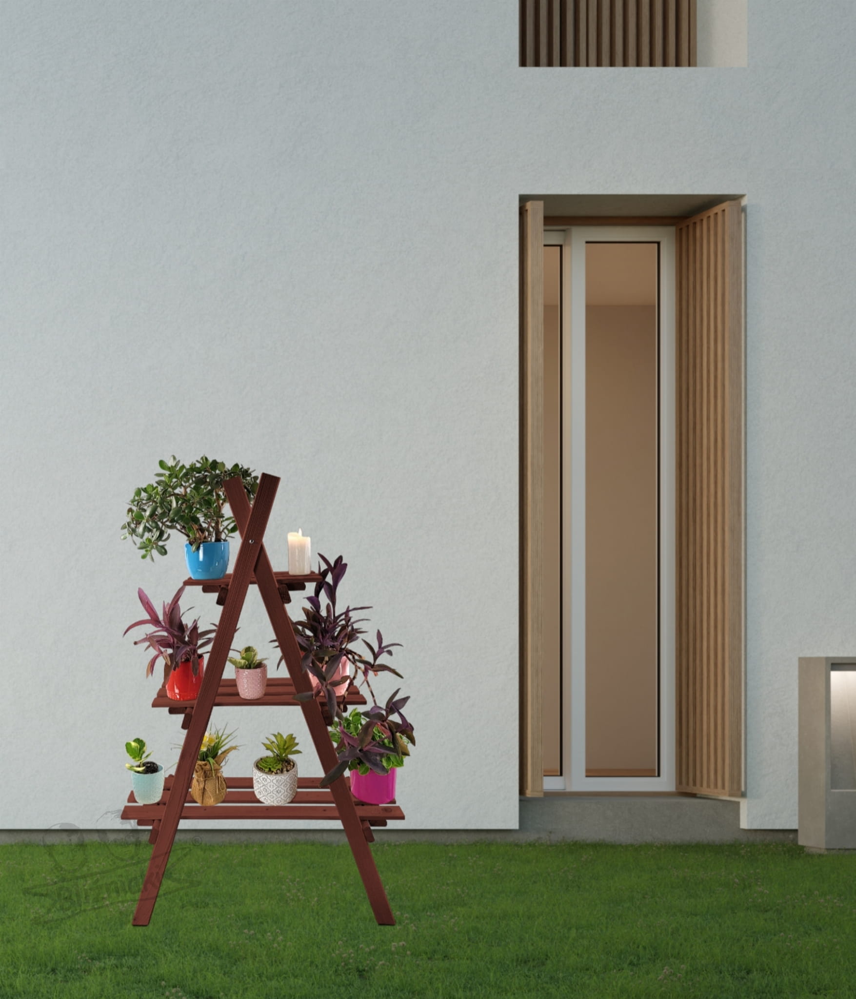 - Składa się z trzech półek. Znajduje szerokie zastosowanie m.in: na tarasie, jako stojak na doniczki lub w domu, łazience jako ozdobny mebel do umieszczania na nim przyborów domowych.