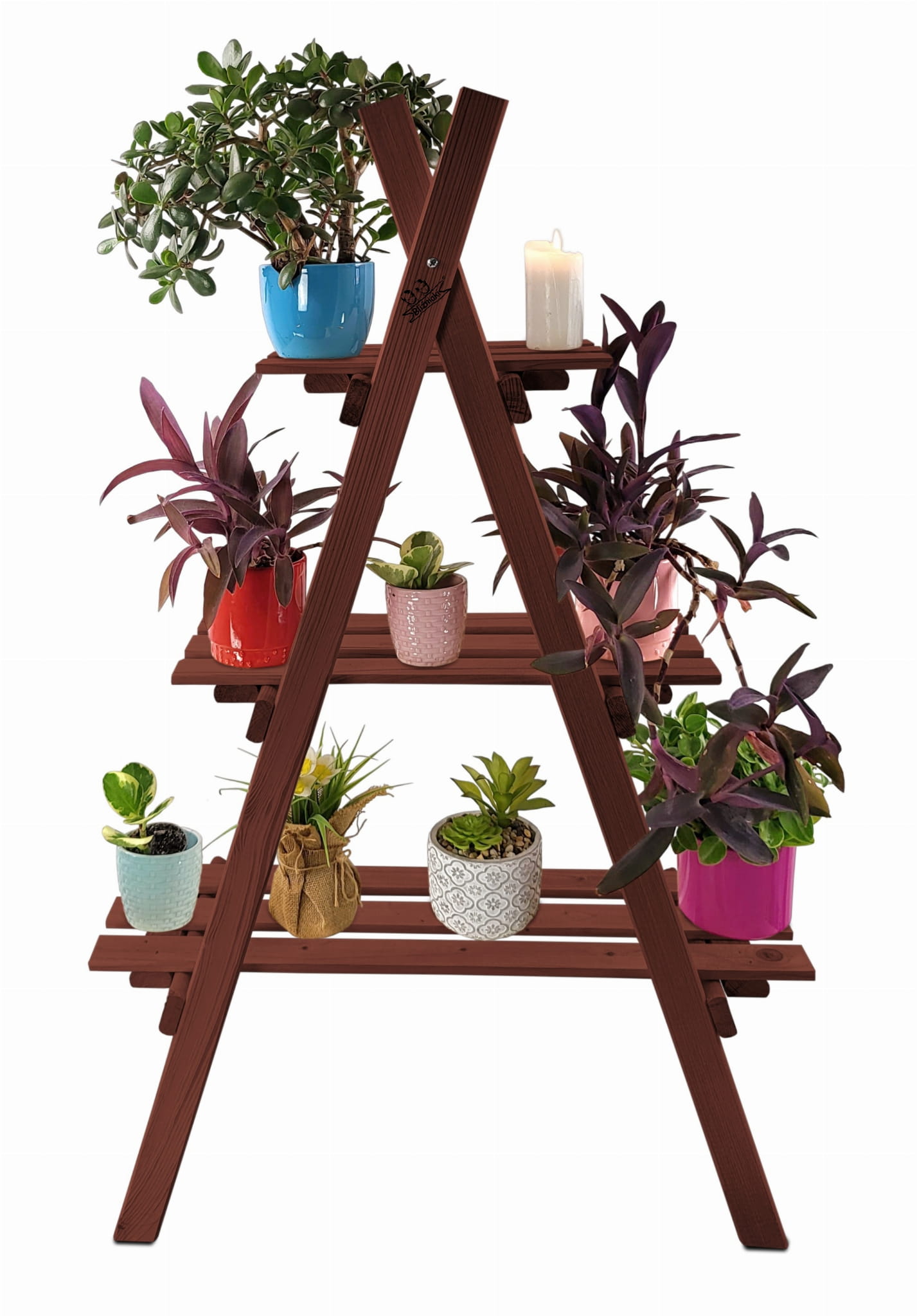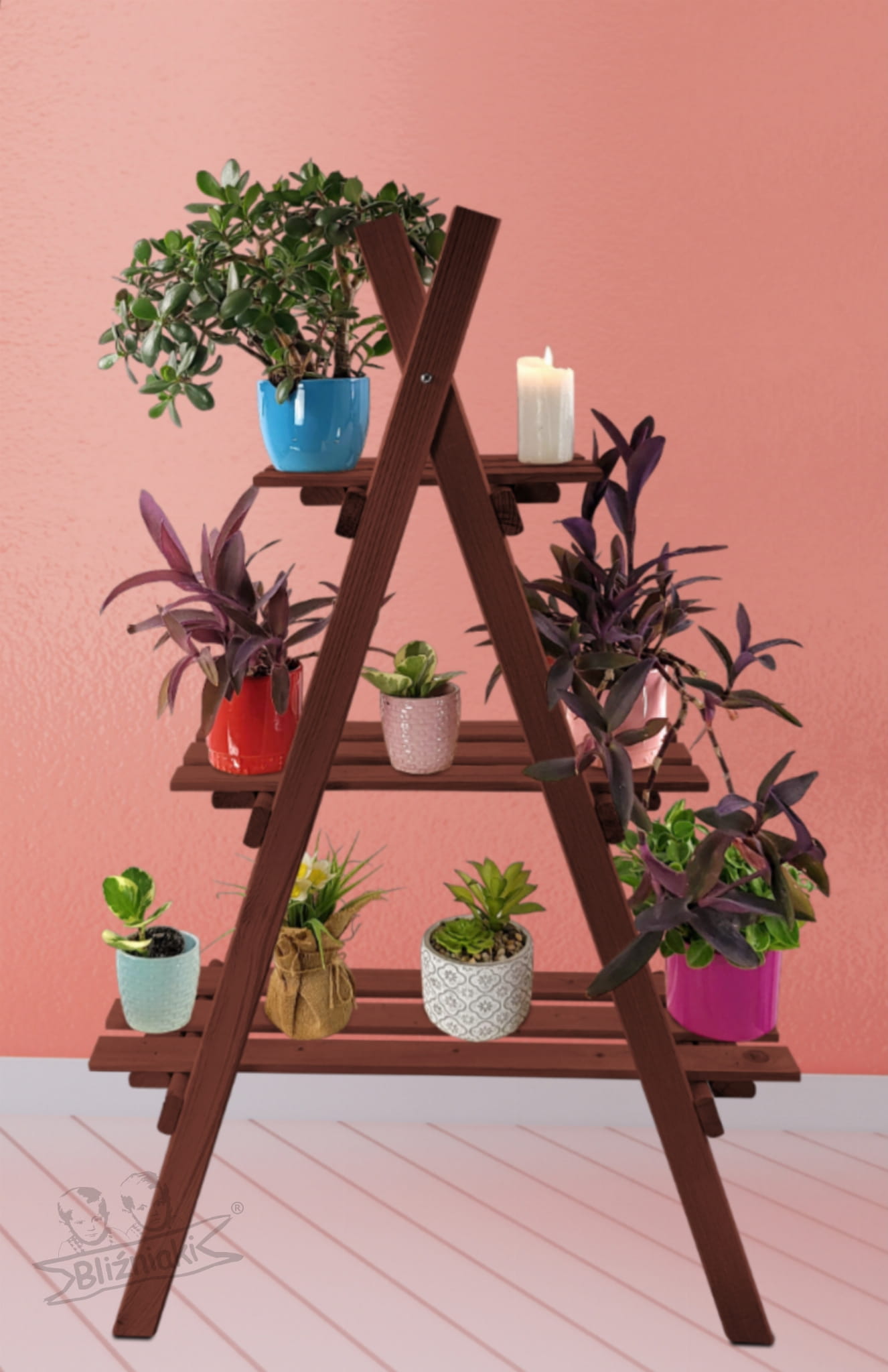 Kwietnik Regał z Trzema Półkami Drewniany Impregnowany Brązowy Na Doniczki z Roślinami KWDR2 O