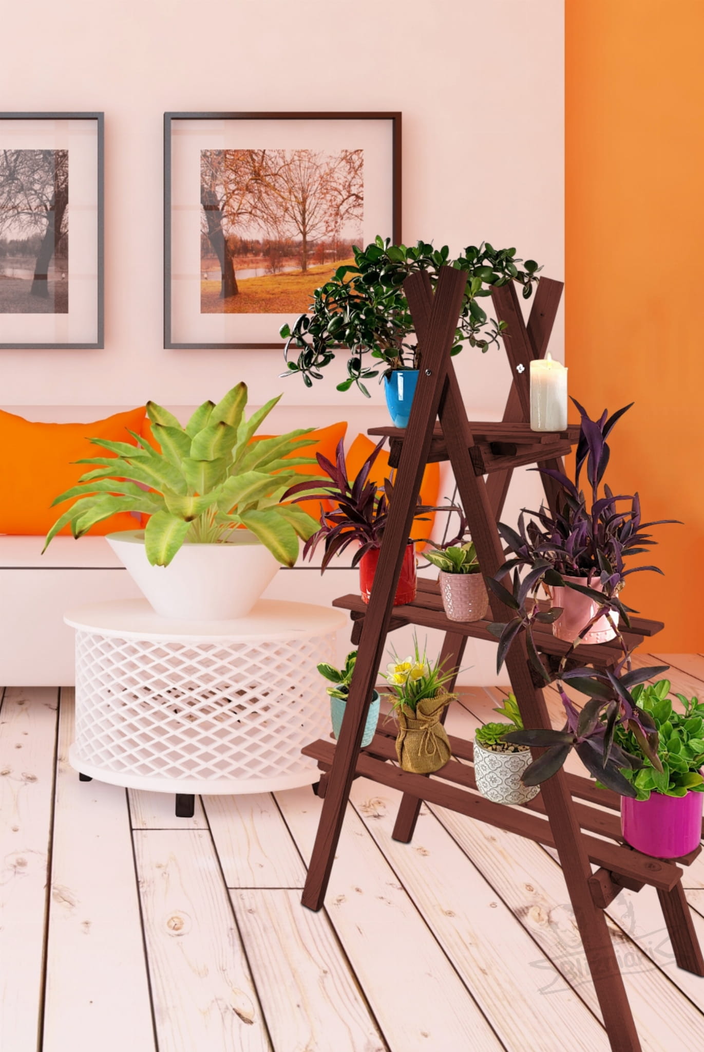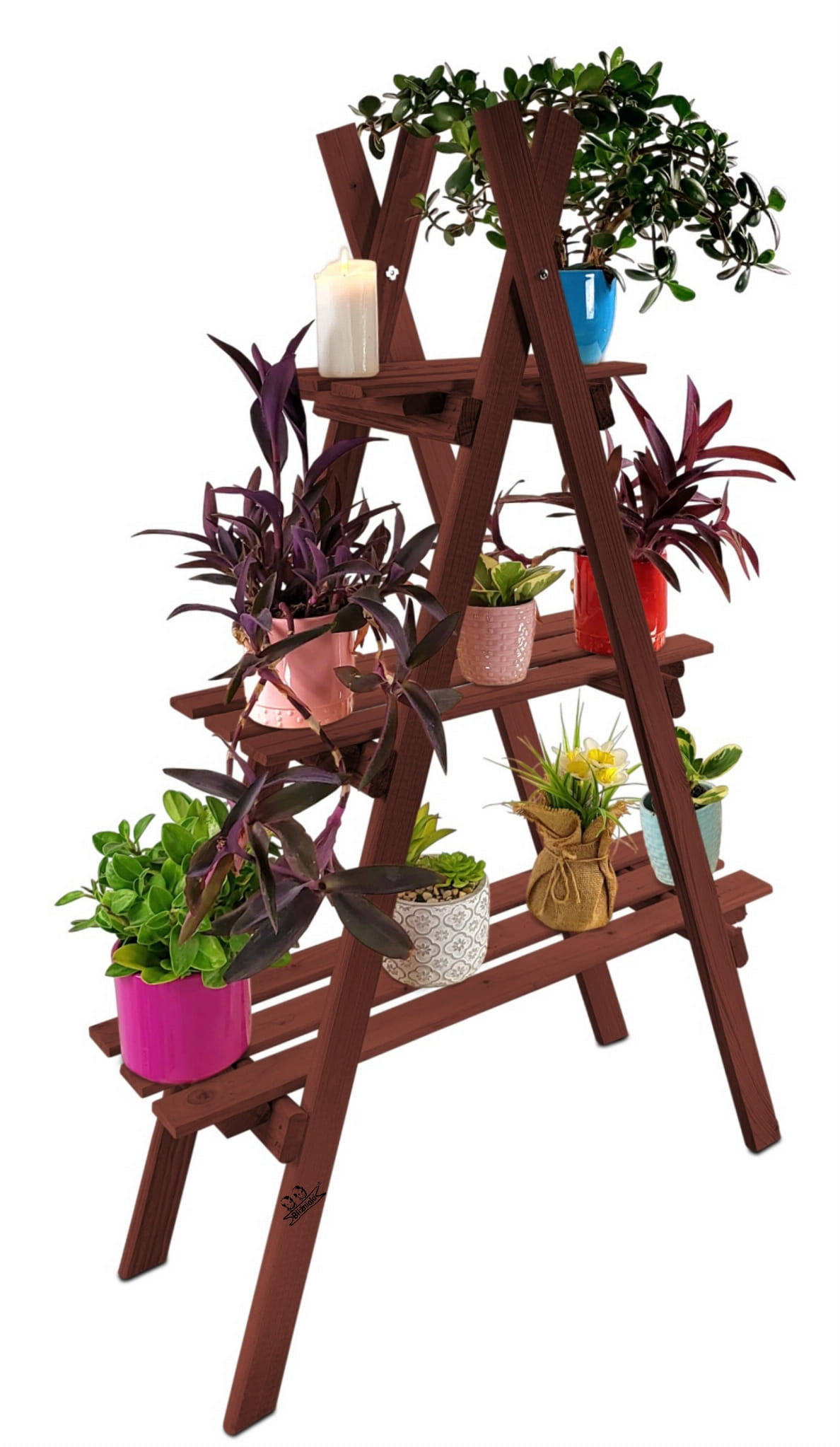 Regał został wykonany z solidnego drewna sosnowego, w kolorze ORZECHOWYM To bardzo praktyczny i stylowy element wyposażenia nowoczesnego domu pozwalający zadbać o należny porządek w pomieszczeniach jak i na zewnątrz. Nasz stojak może również pełnić rolę ozdobnego kwietnika do ustawienia na nim doniczek z Twoimi ulubionymi kwiatami na tarasie lub balkonie.