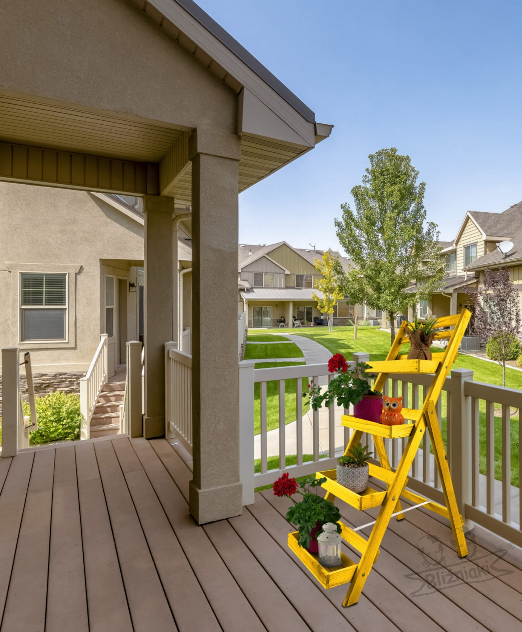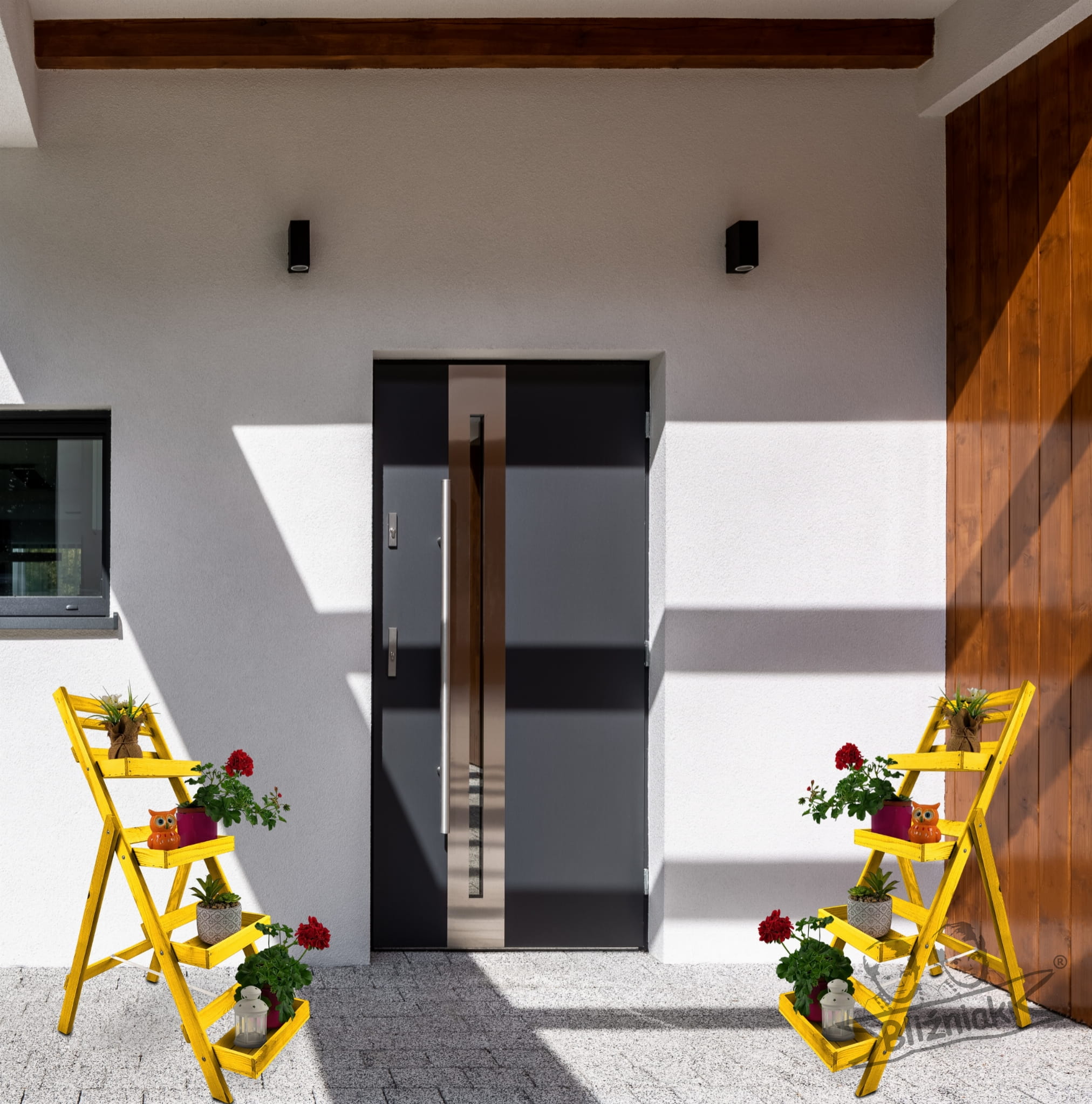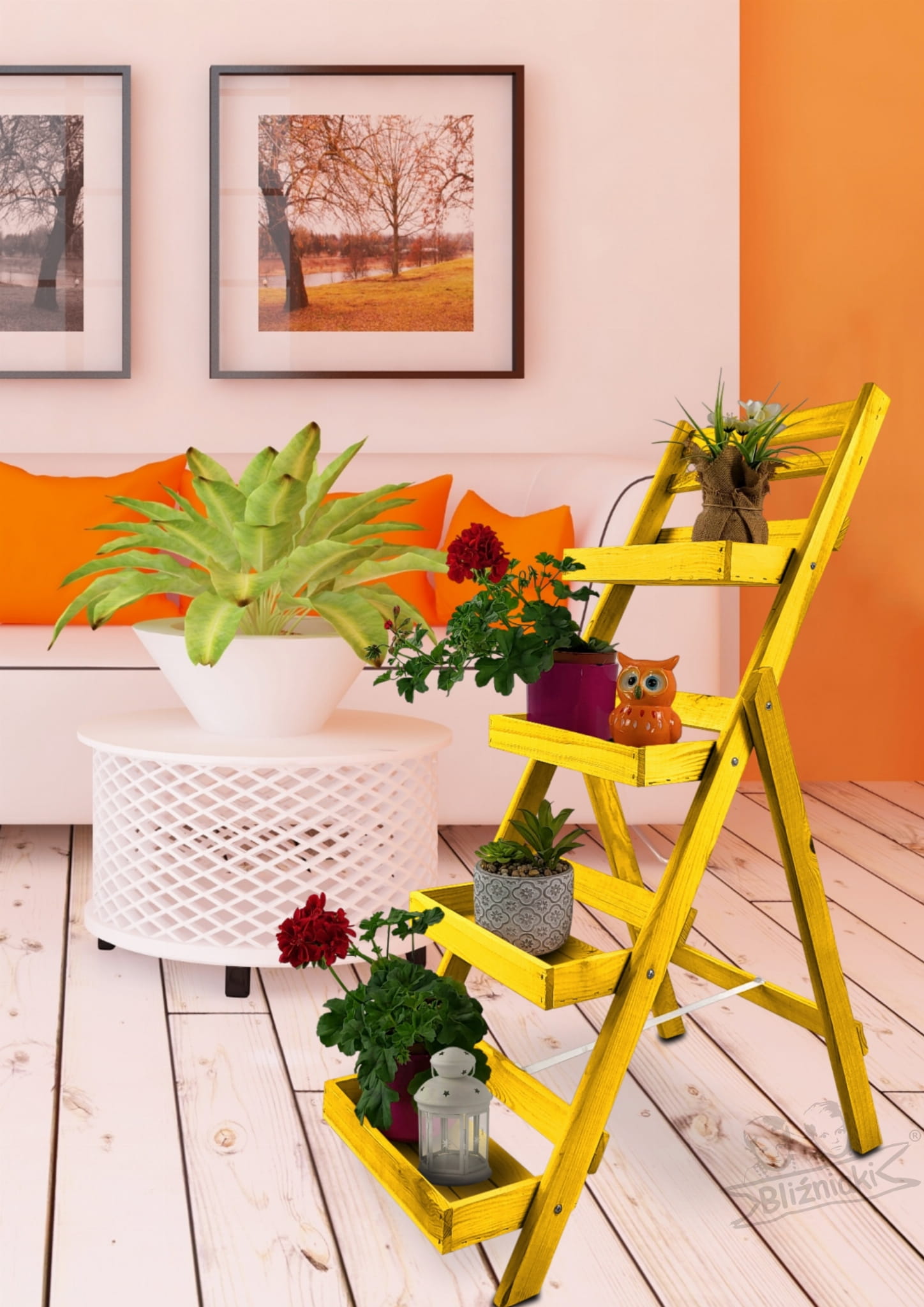 - Drabinka znajduje szerokie zastosowanie m.in: na tarasach, balkonach, we wnętrzach domów, czy jako wyposażenie sklepików oraz kwiaciarni