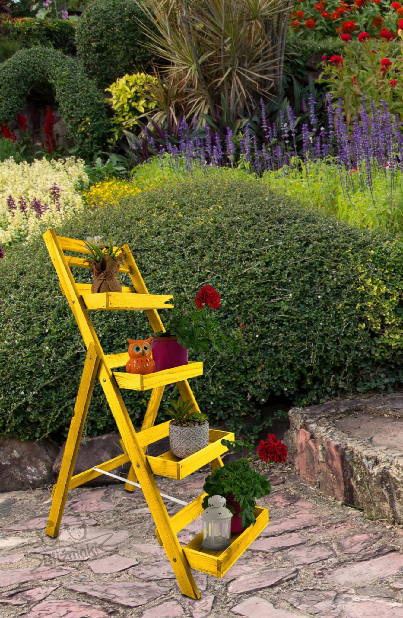 Kwietnik Stojak Piętrowy Drewniany Impregnowany Żółty Na Roślinki W Doniczkach i Inne Drobiazgi DKW22 ZB