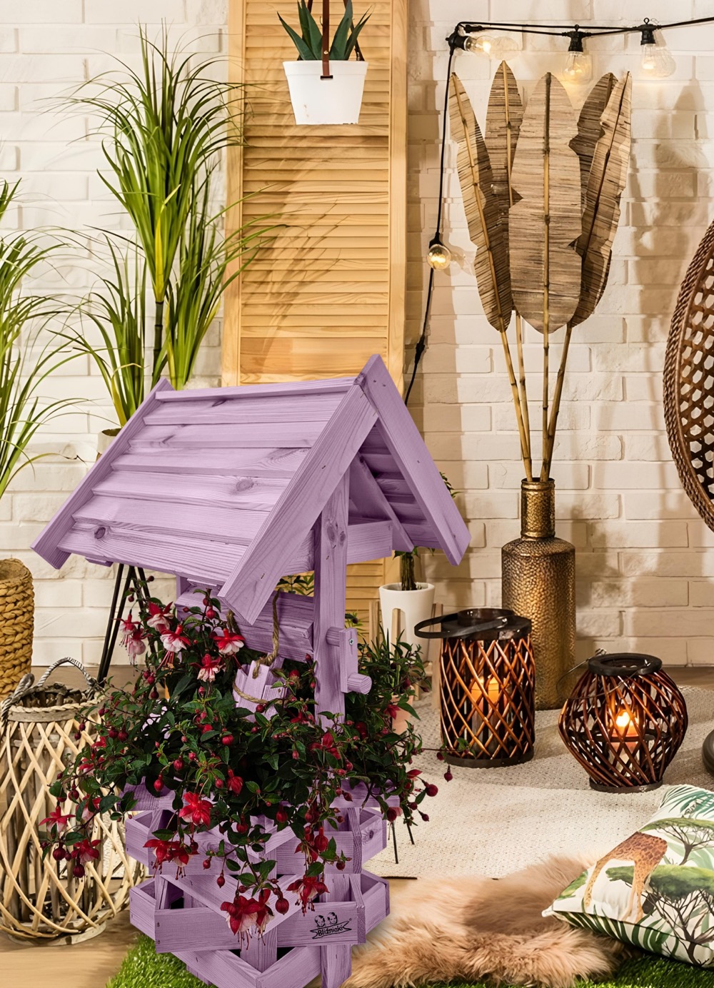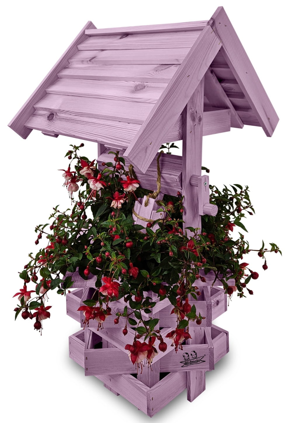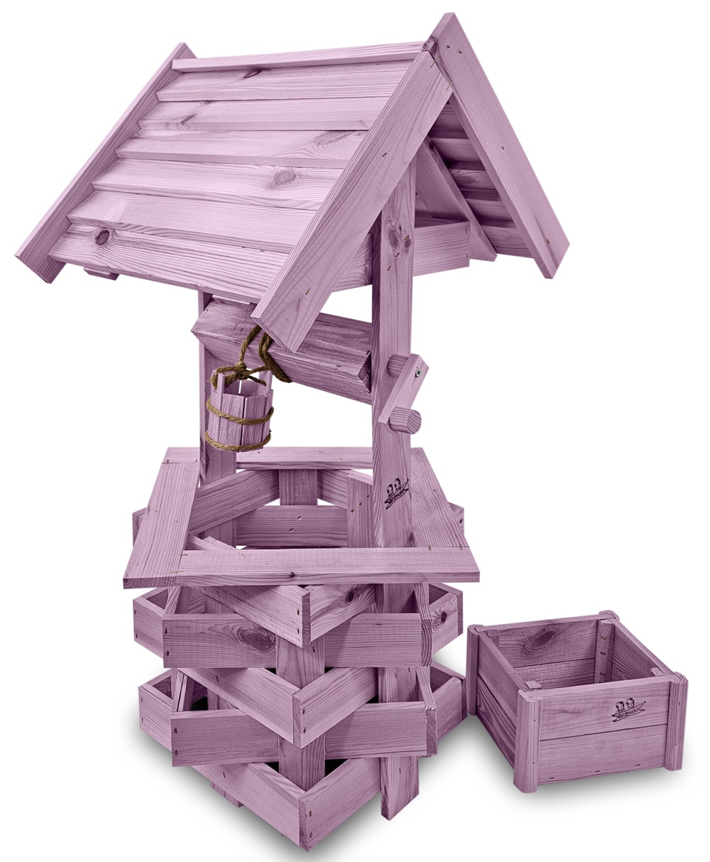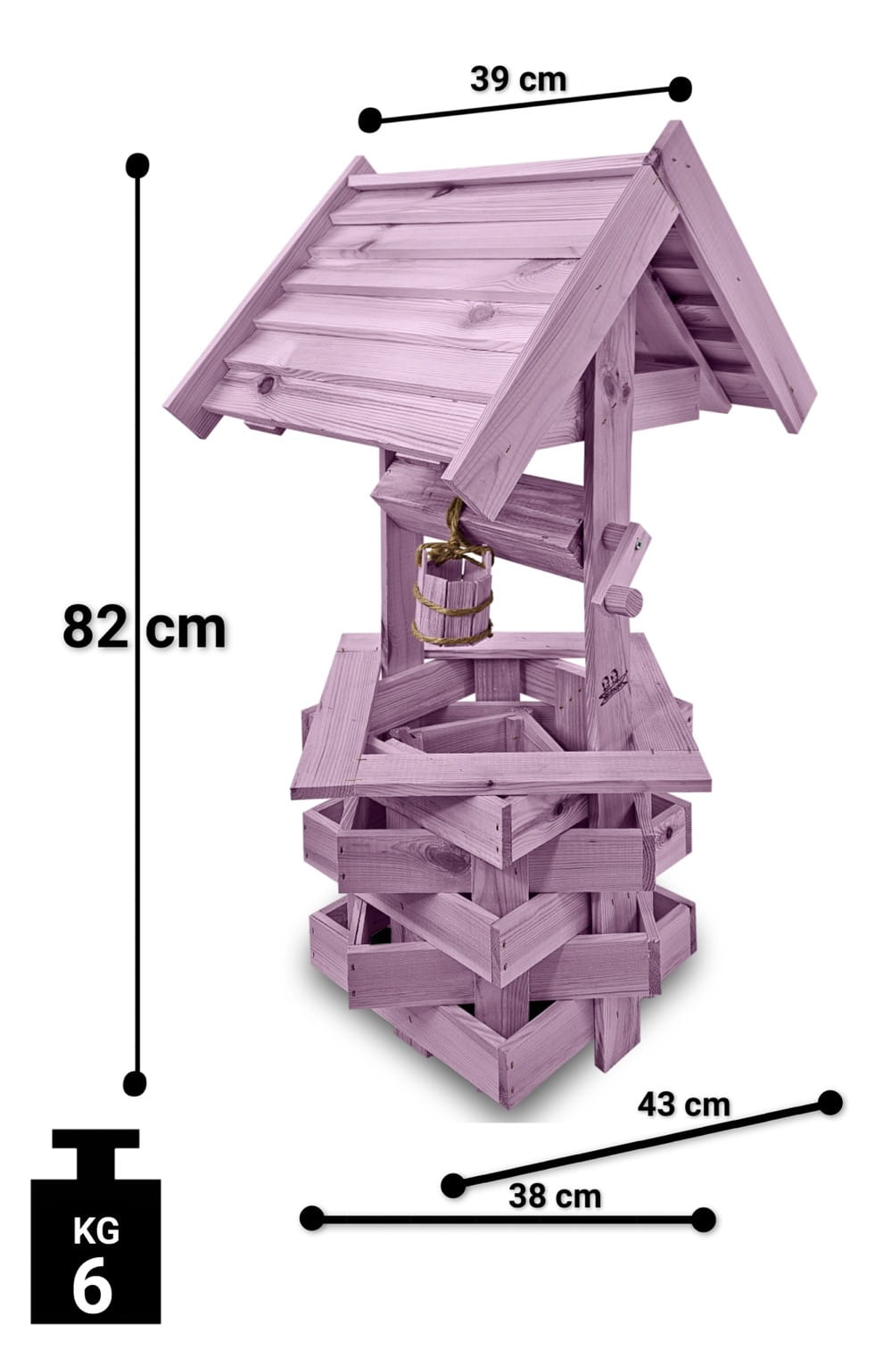 Nasza dekoracyjna studnia w pastelowym fiolecie wykonana z suszonego drewna sosnowego to nie tylko piękny element dekoracyjny, ale również wyraz ekologicznego podejścia do projektowania ogrodów.