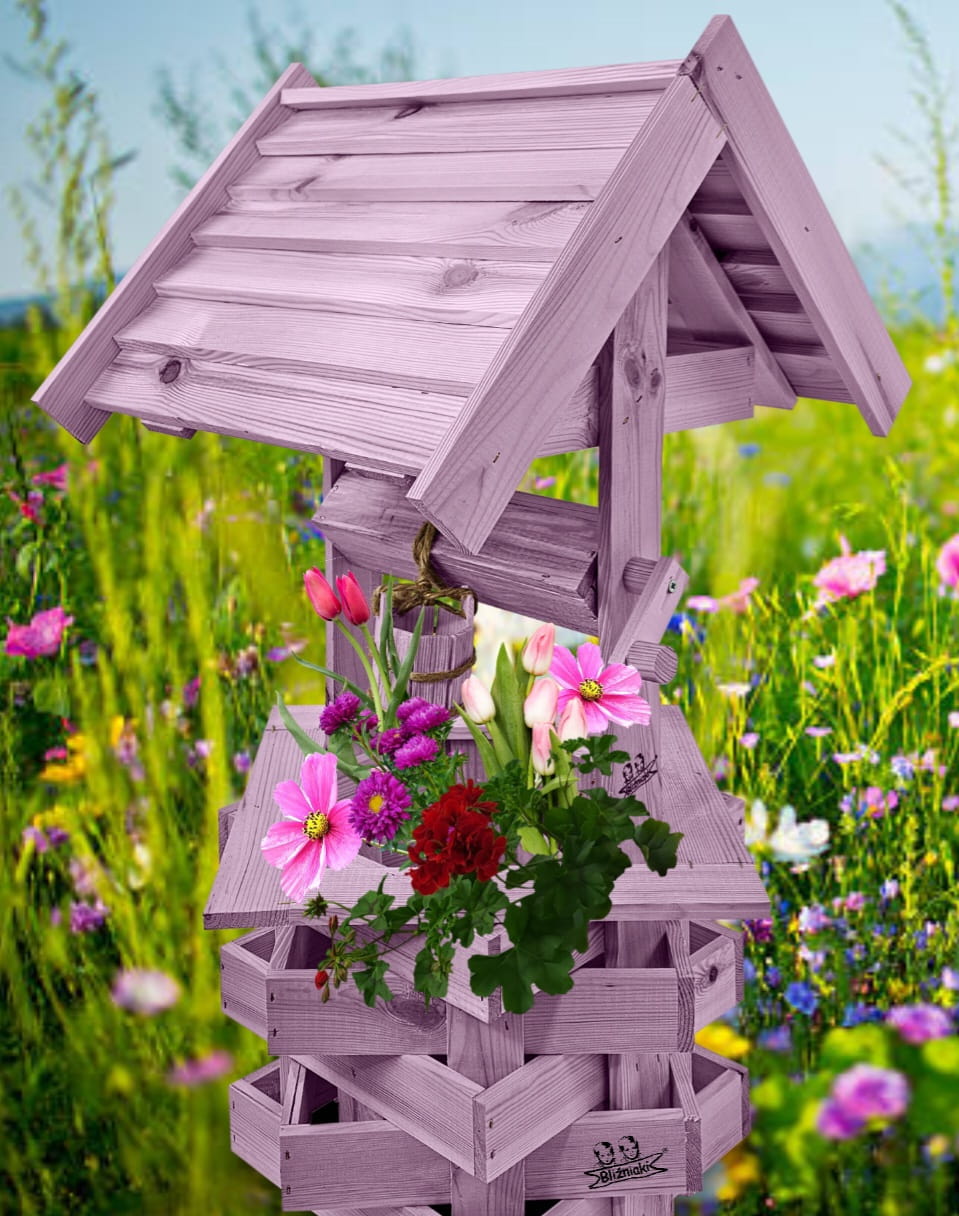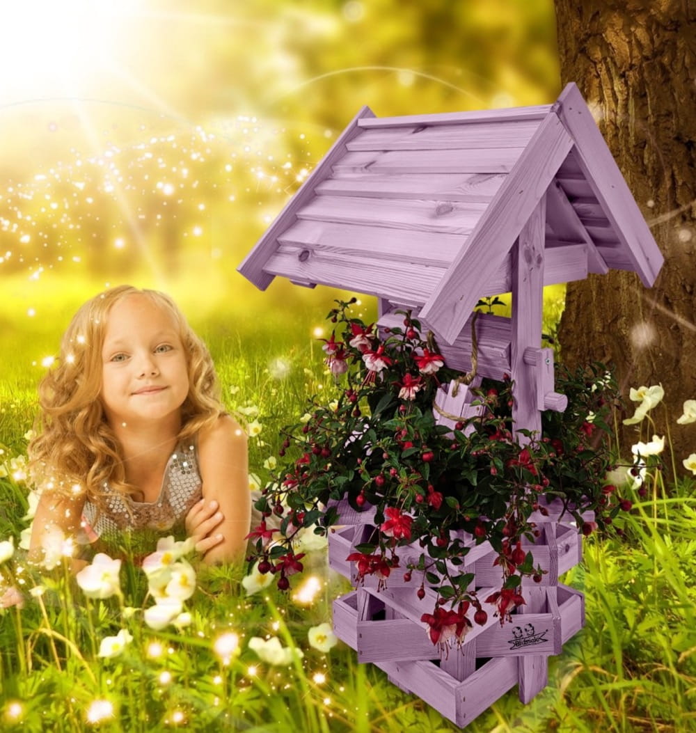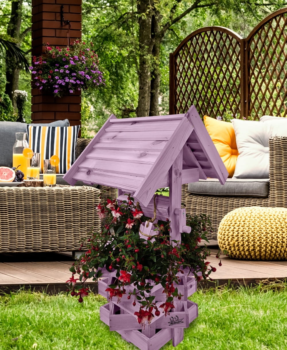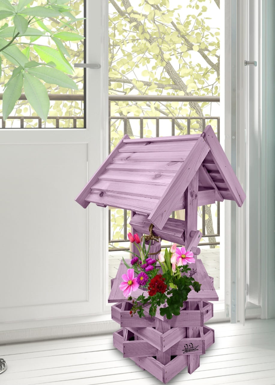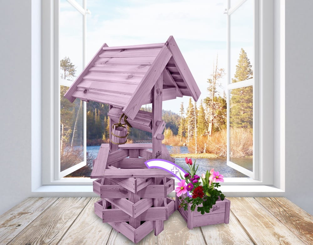 Nasza dekoracyjna studnia w pastelowym fiolecie wykonana z suszonego drewna sosnowego to nie tylko piękny element dekoracyjny, ale również wyraz ekologicznego podejścia do projektowania ogrodów.