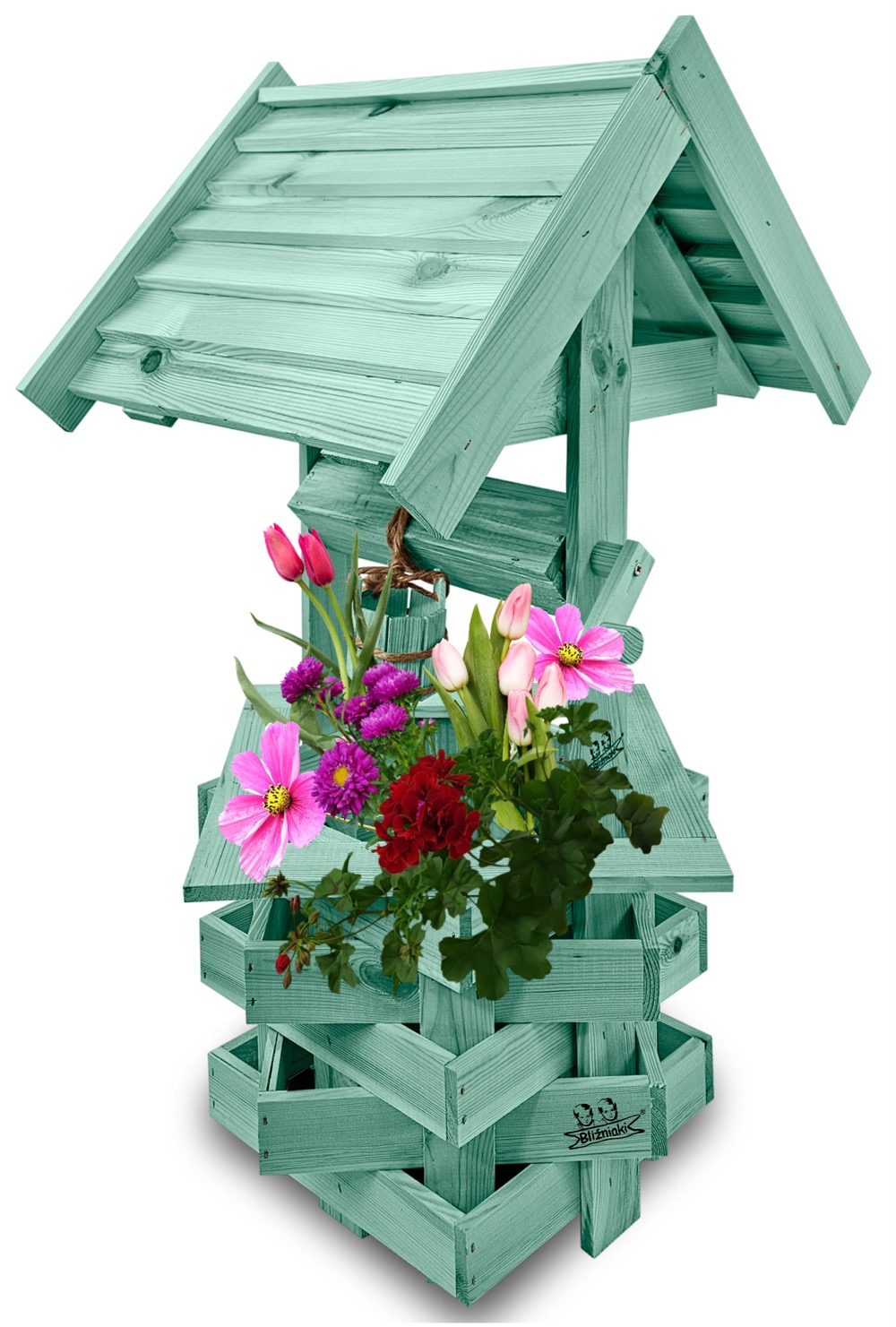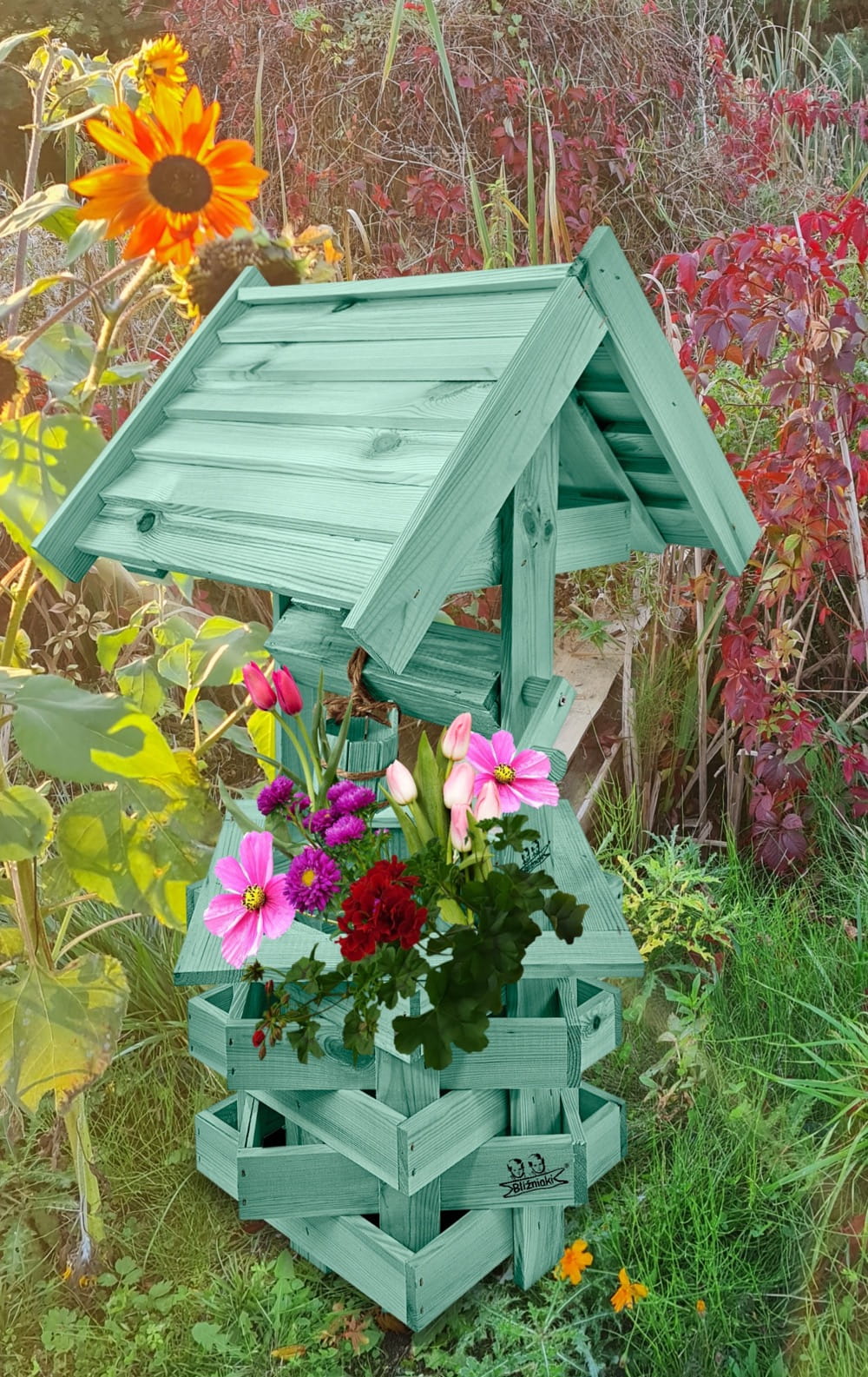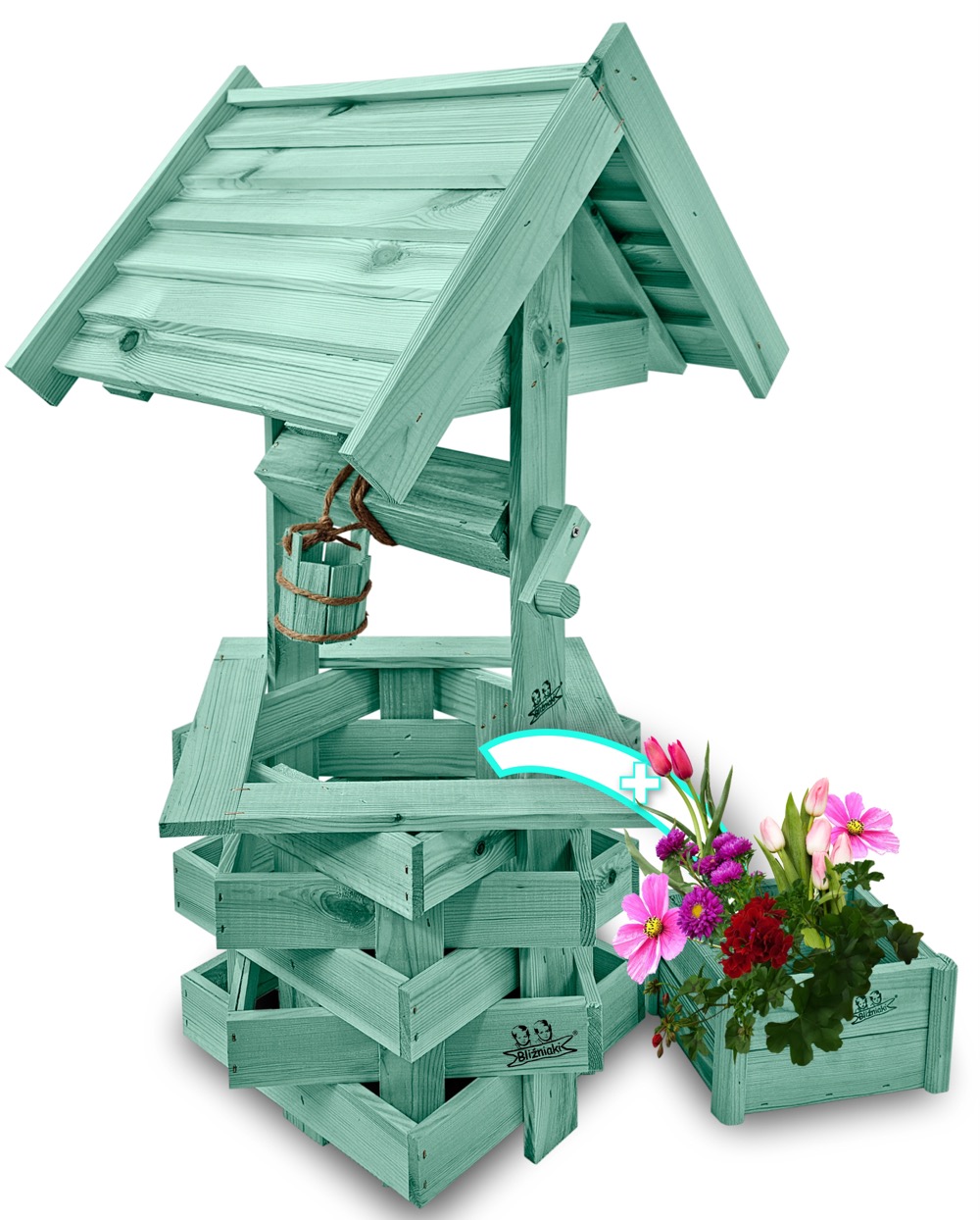 - Studnia została wzbogacona o drewnianą donicę, w której można dodatkowo stworzyć miniogródek