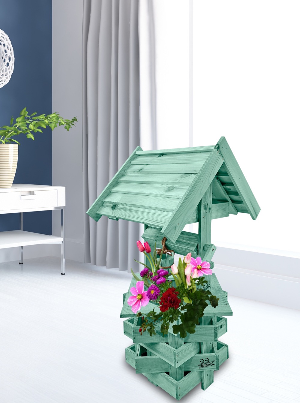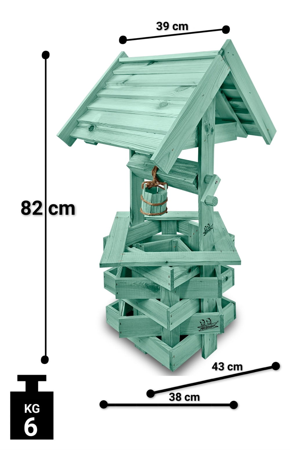 Nasza dekoracyjna studnia w kolorze jasnozielonym wykonana z suszonego drewna sosnowego to nie tylko piękny element dekoracyjny, ale również wyraz ekologicznego podejścia do projektowania ogrodów.