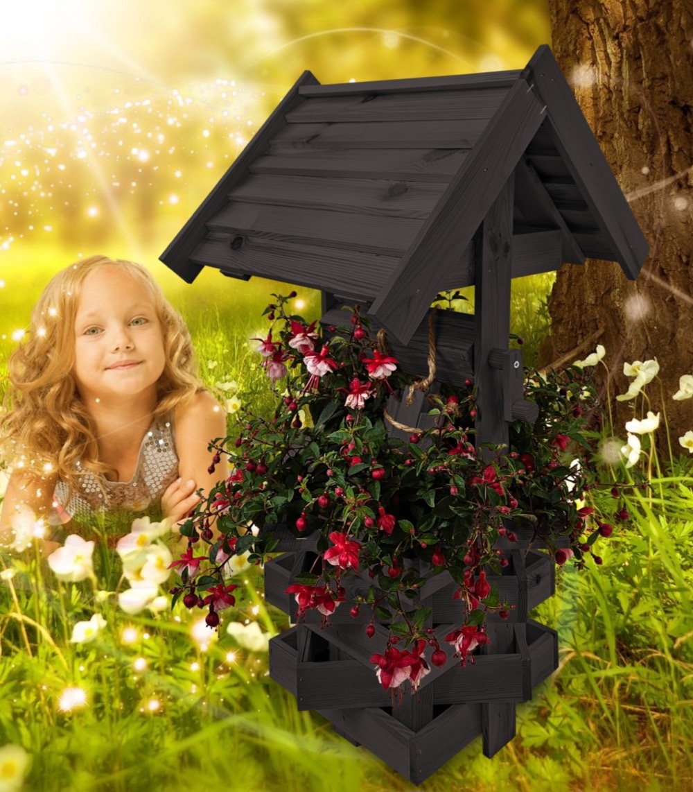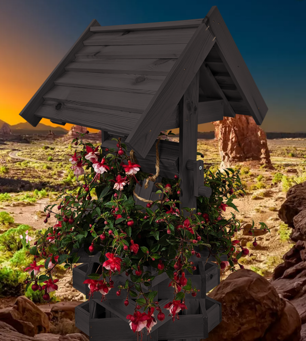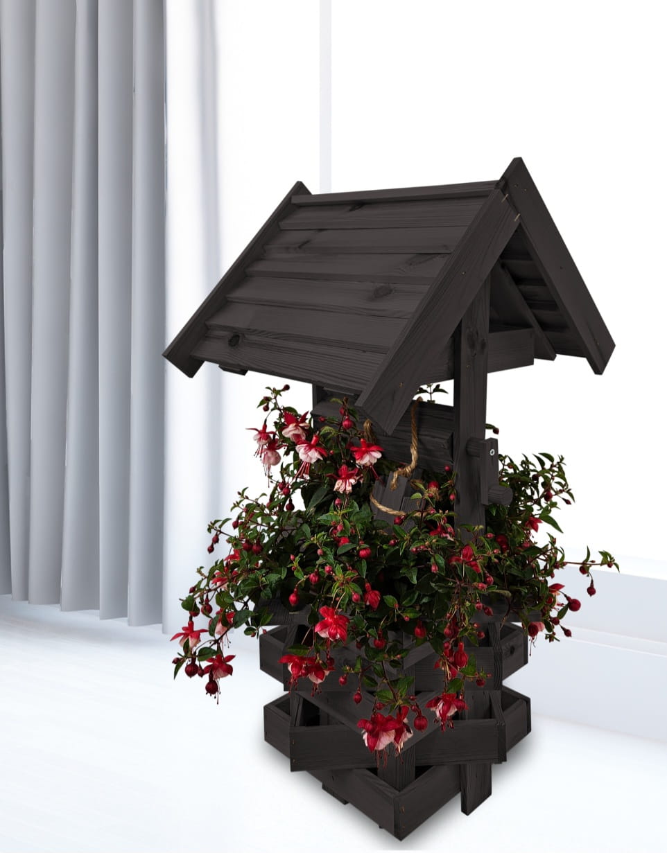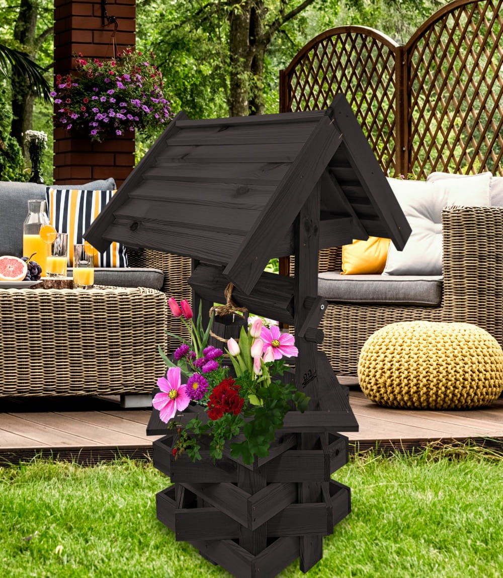 Nasza dekoracyjna studnia w kolorze czarnym wykonana z suszonego drewna sosnowego to nie tylko piękny element dekoracyjny, ale również wyraz ekologicznego podejścia do projektowania ogrodów.