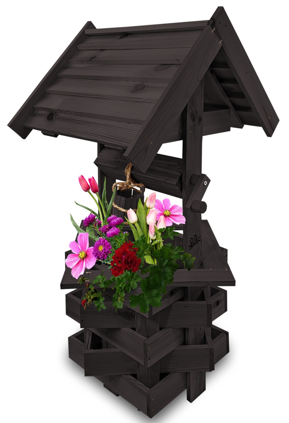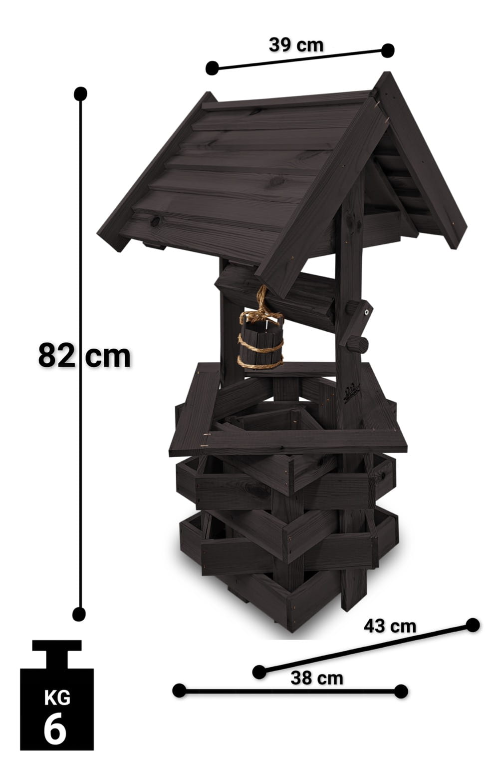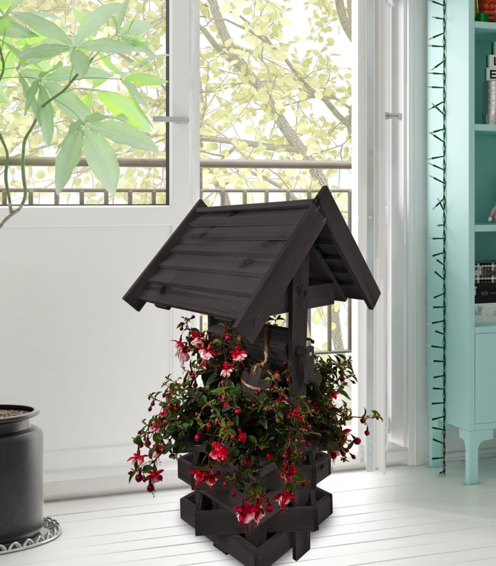 Nasza dekoracyjna studnia w kolorze czarnym wykonana z suszonego drewna sosnowego to nie tylko piękny element dekoracyjny, ale również wyraz ekologicznego podejścia do projektowania ogrodów.