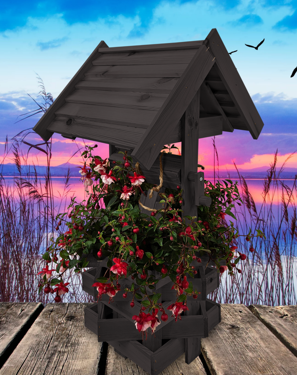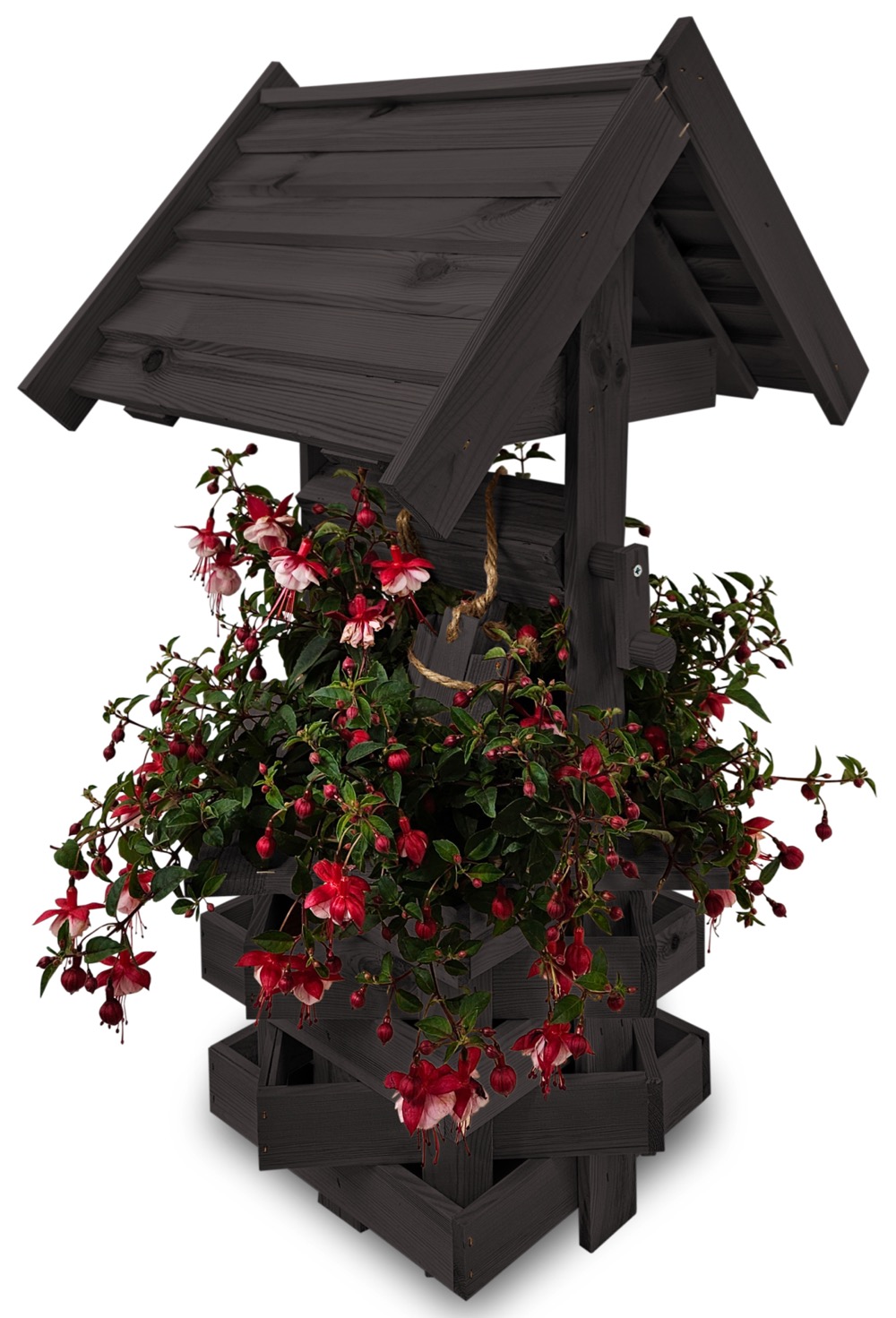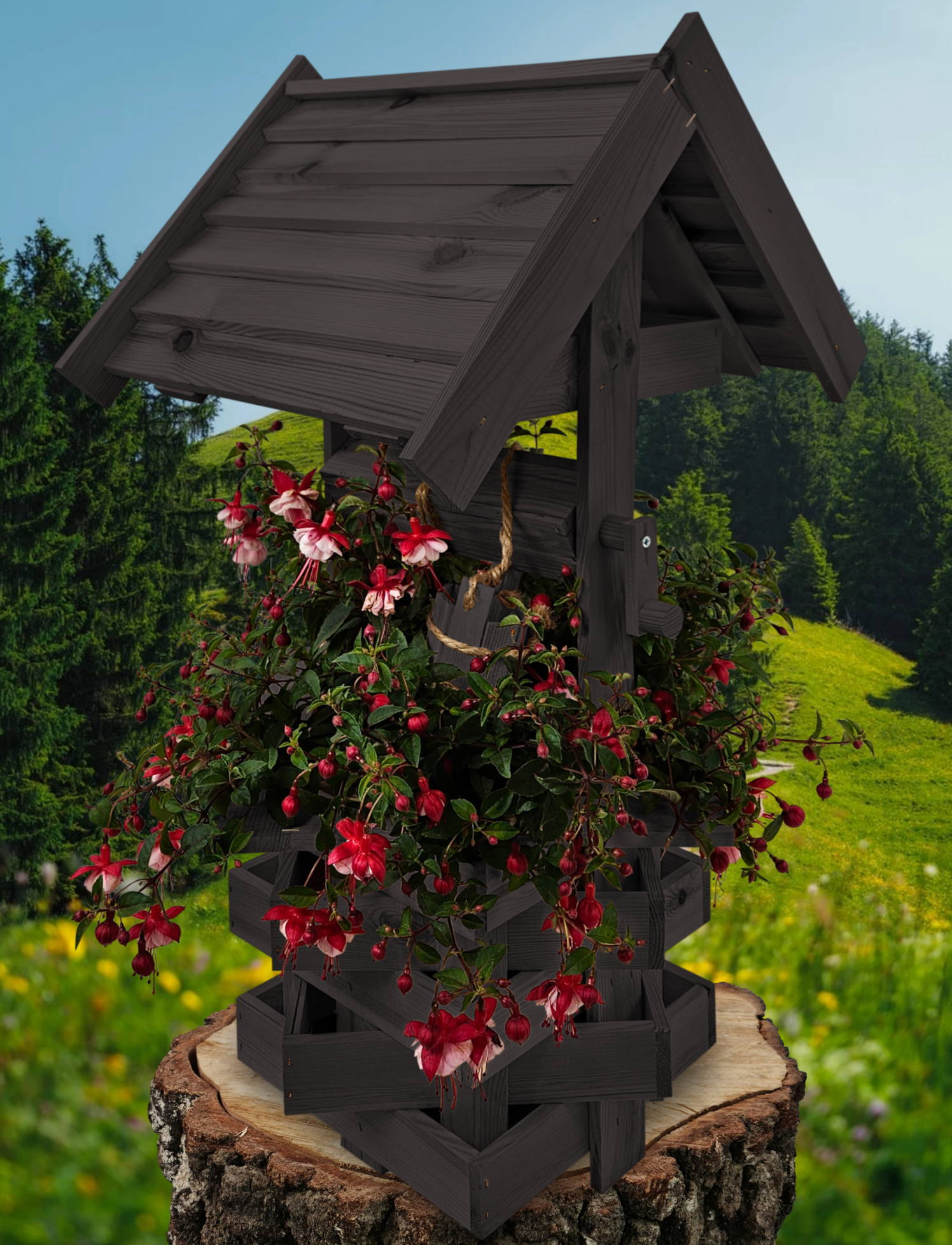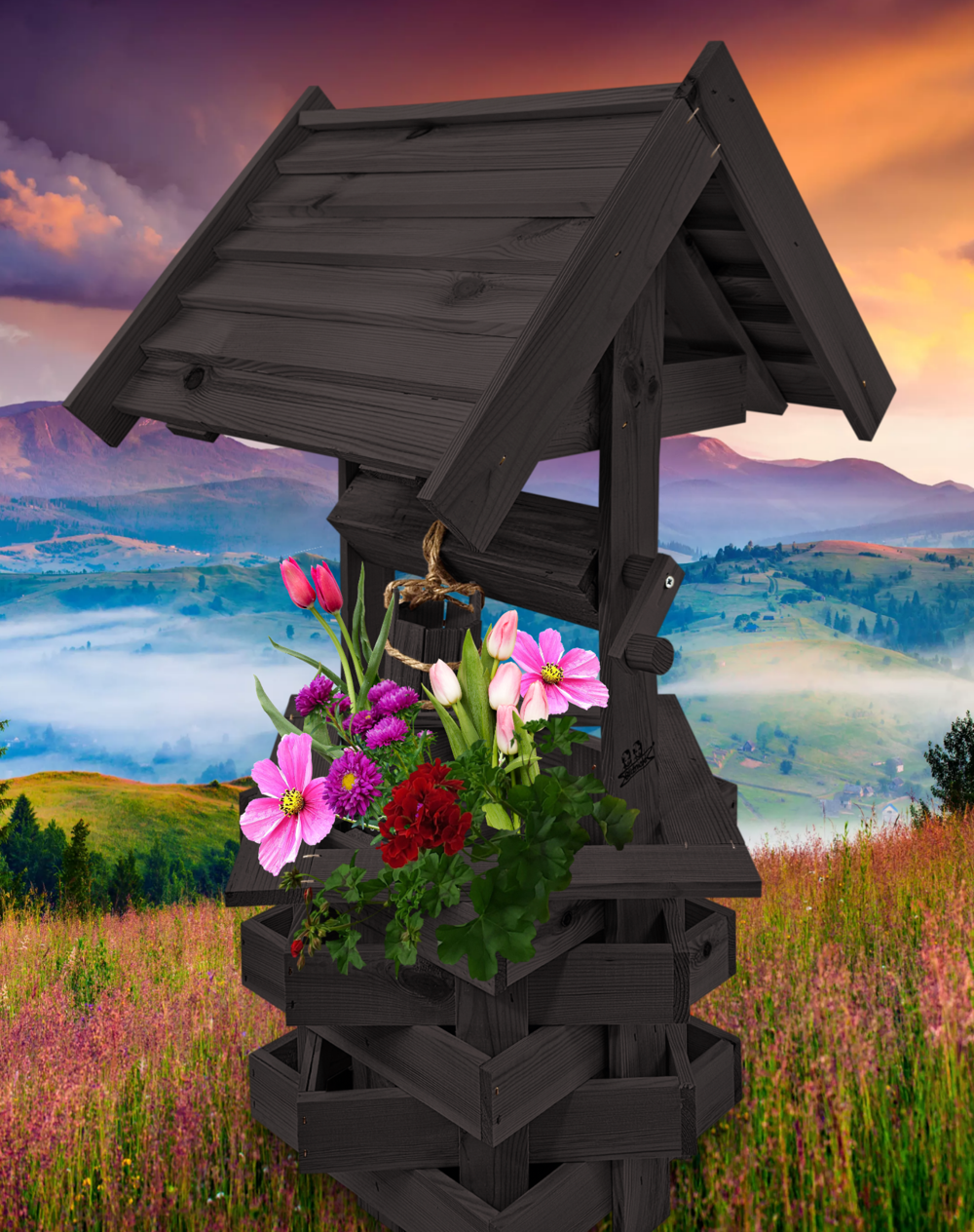 Nasza dekoracyjna studnia w kolorze czarnym wykonana z suszonego drewna sosnowego to nie tylko piękny element dekoracyjny, ale również wyraz ekologicznego podejścia do projektowania ogrodów.