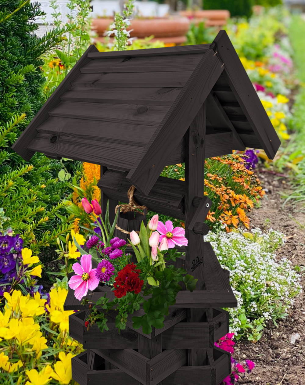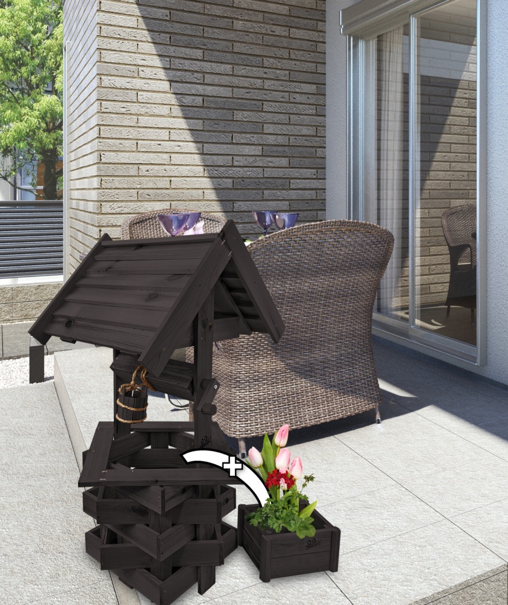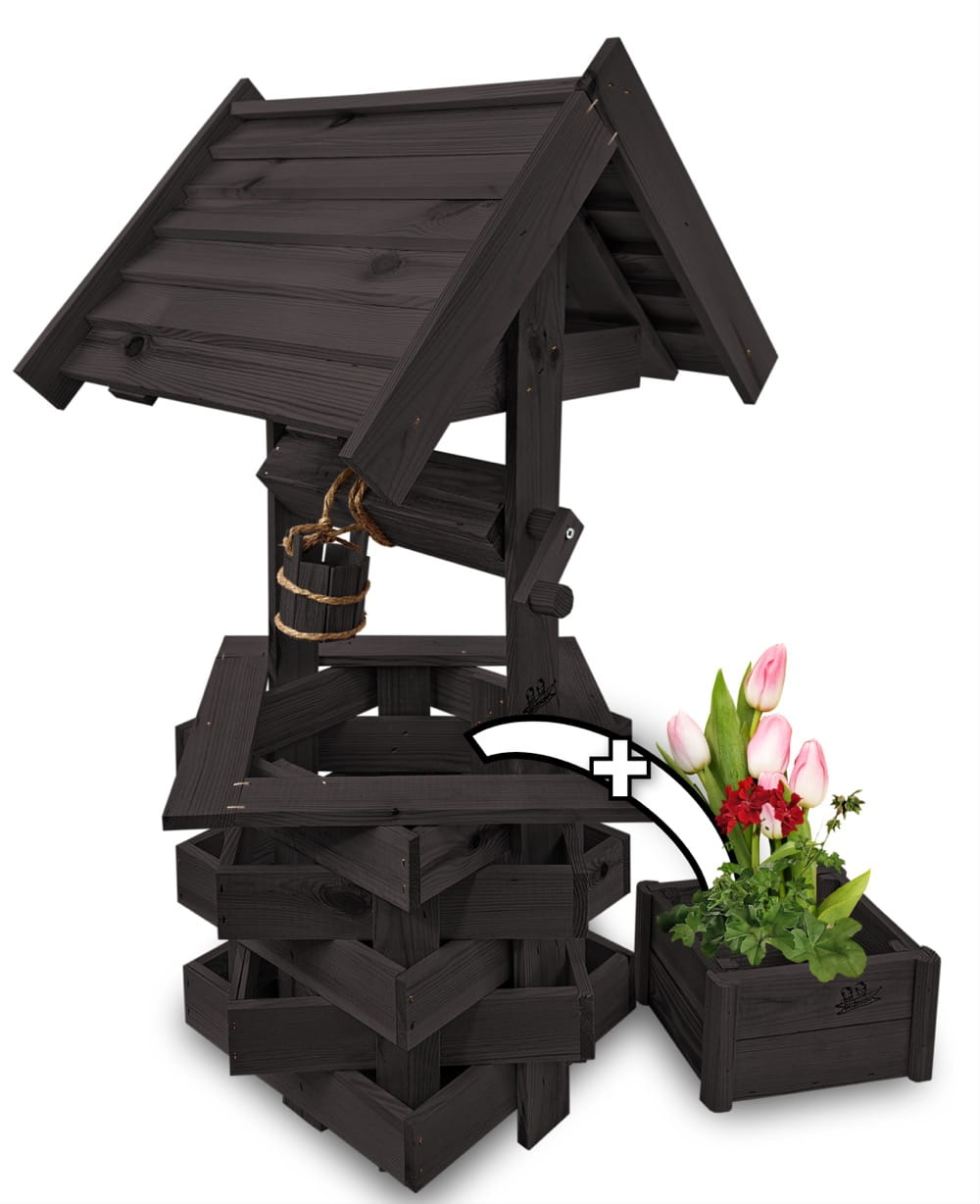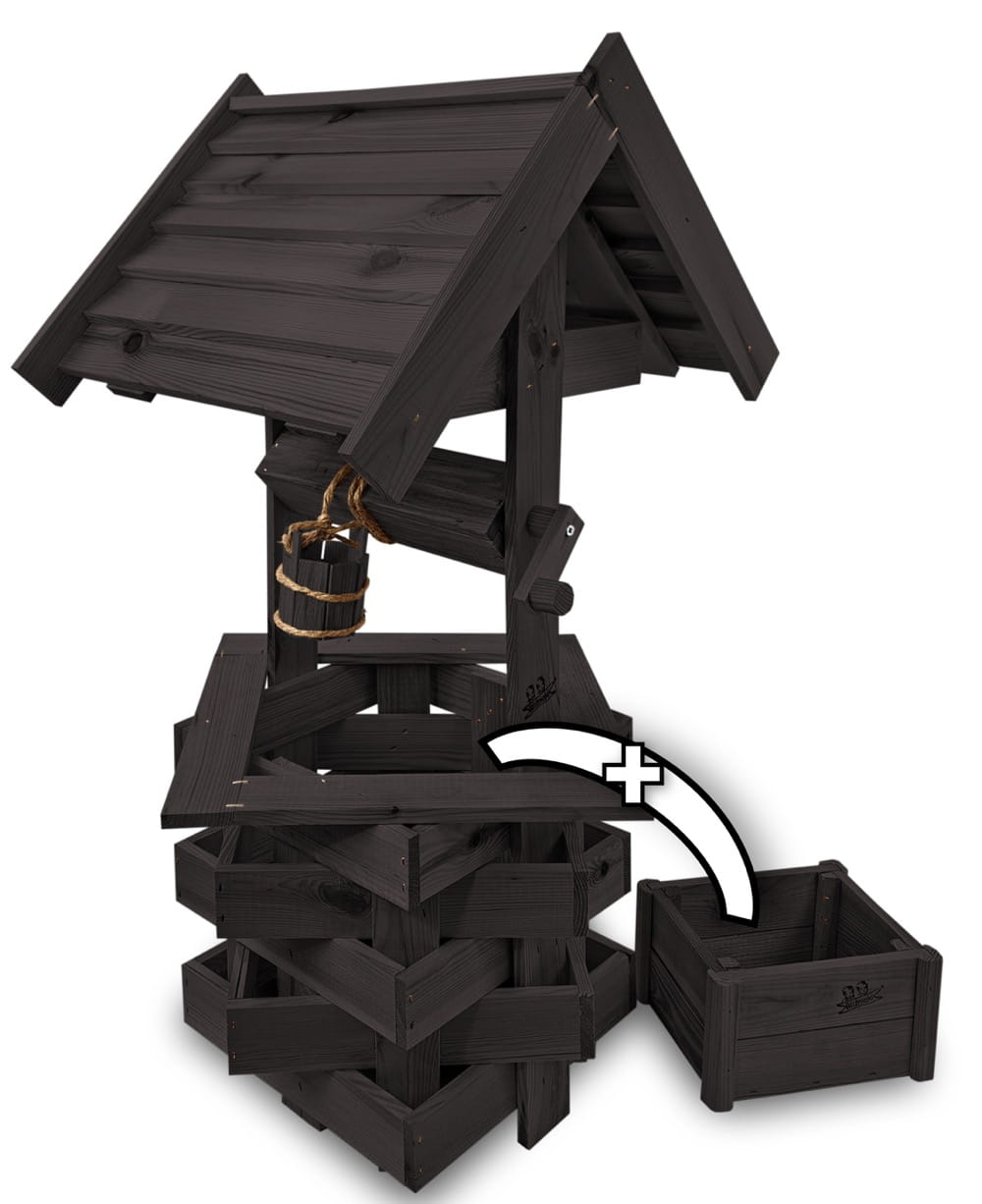 - Studnia została wzbogacona o drewnianą donicę, w której można dodatkowo stworzyć miniogródek