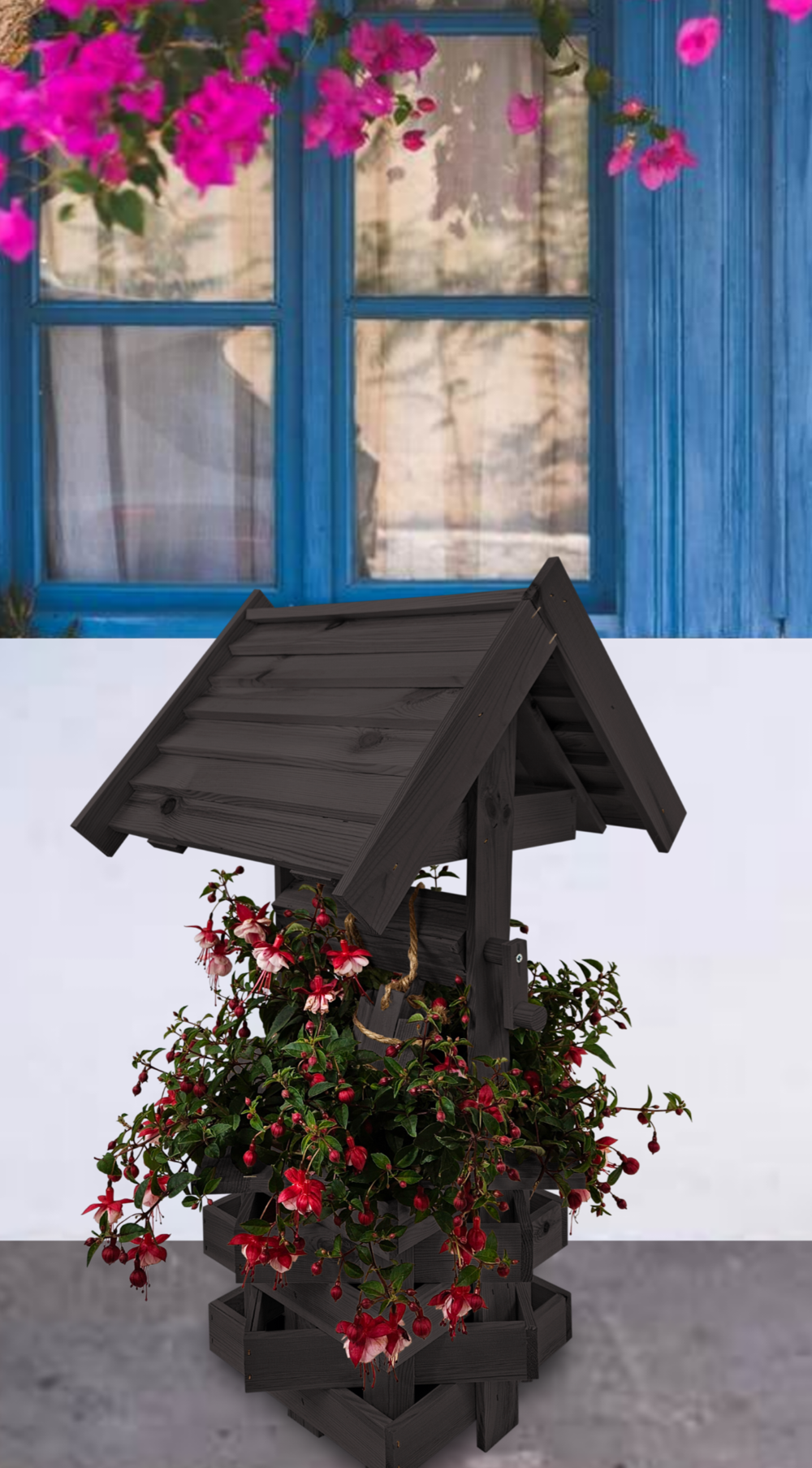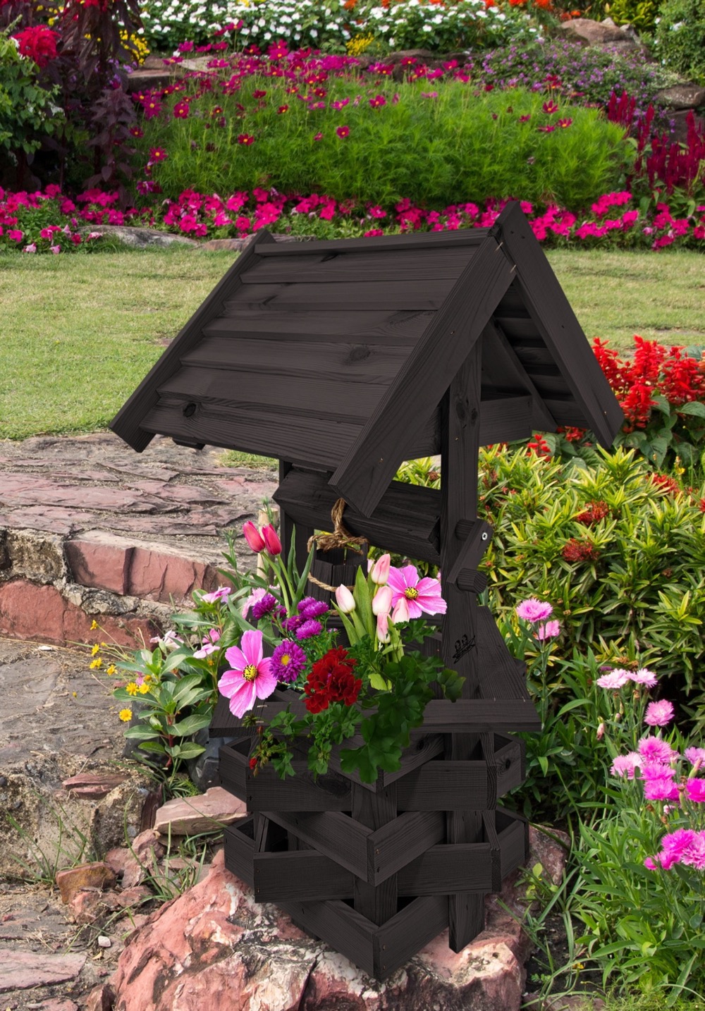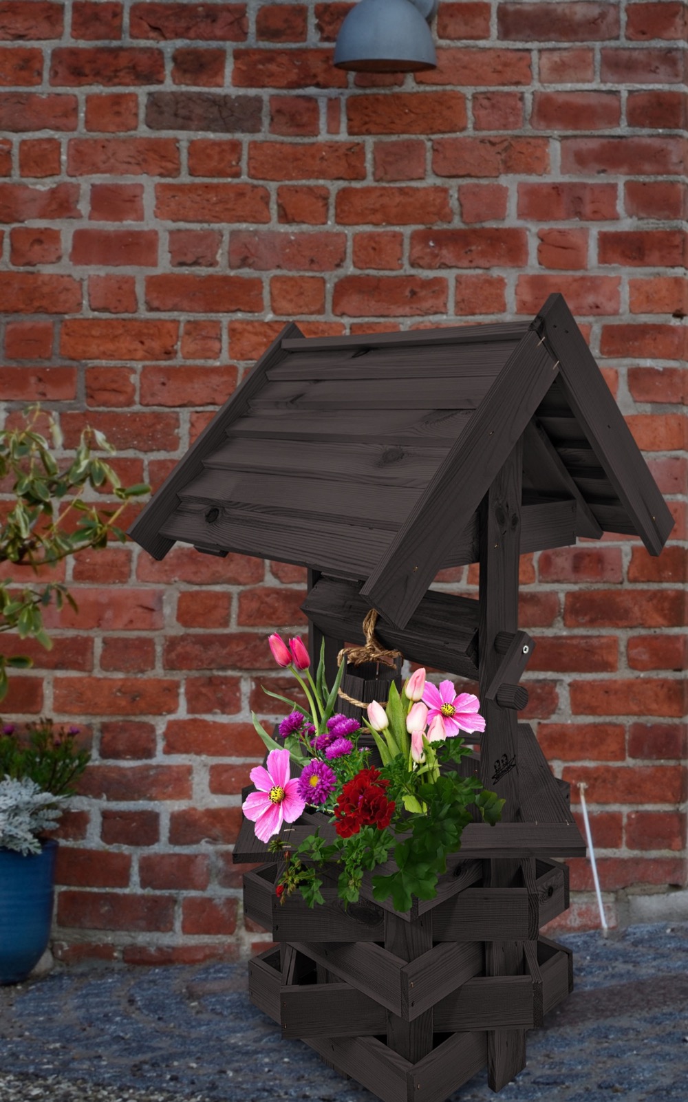- Studnia została wzbogacona o drewnianą donicę, w której można dodatkowo stworzyć miniogródek