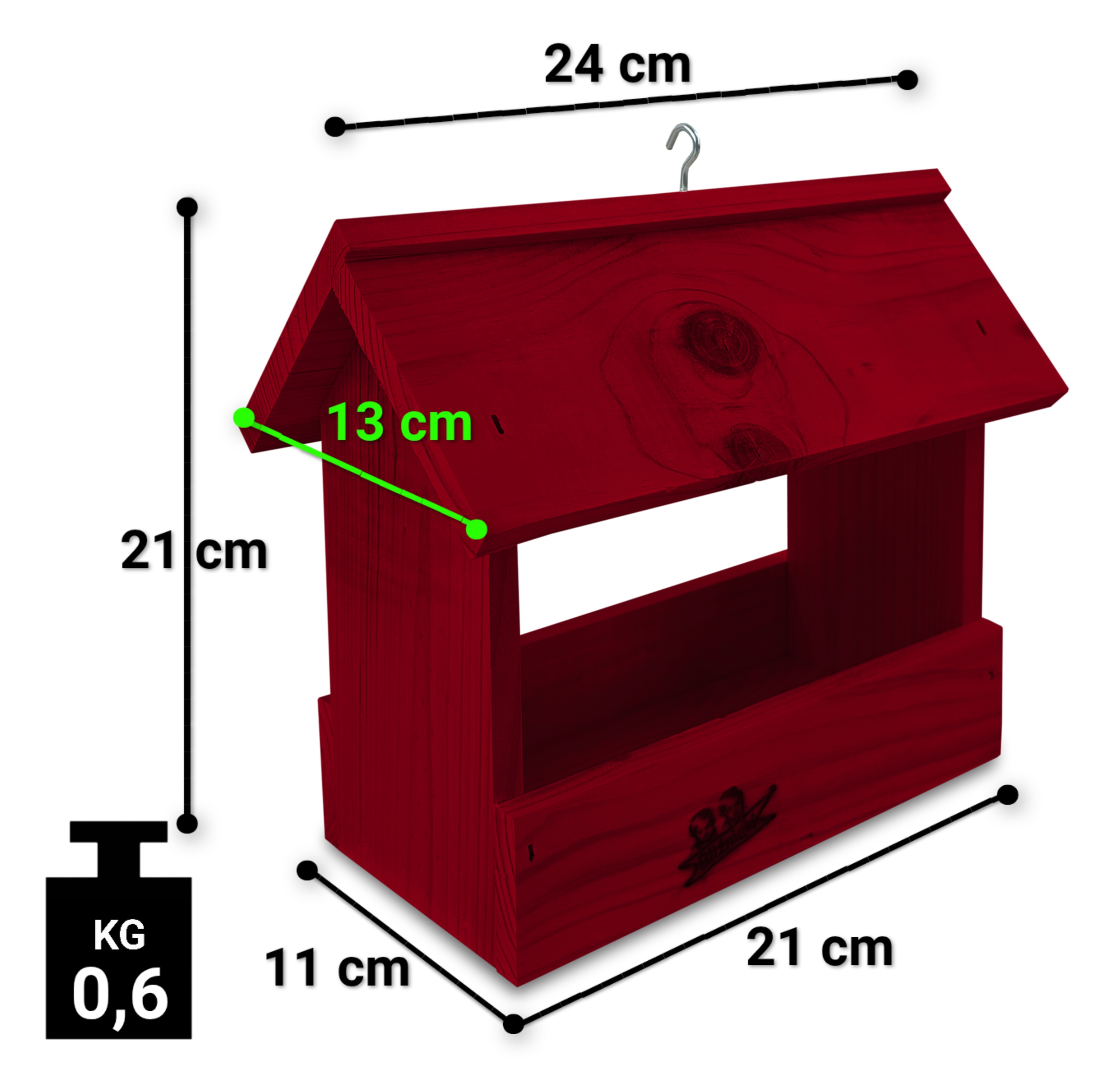 Kolorystyka karmnika może nieznacznie odbiegać od rzeczywistości, ze względu na indywidualne parametry monitorów i unikalną strukturę drewna.