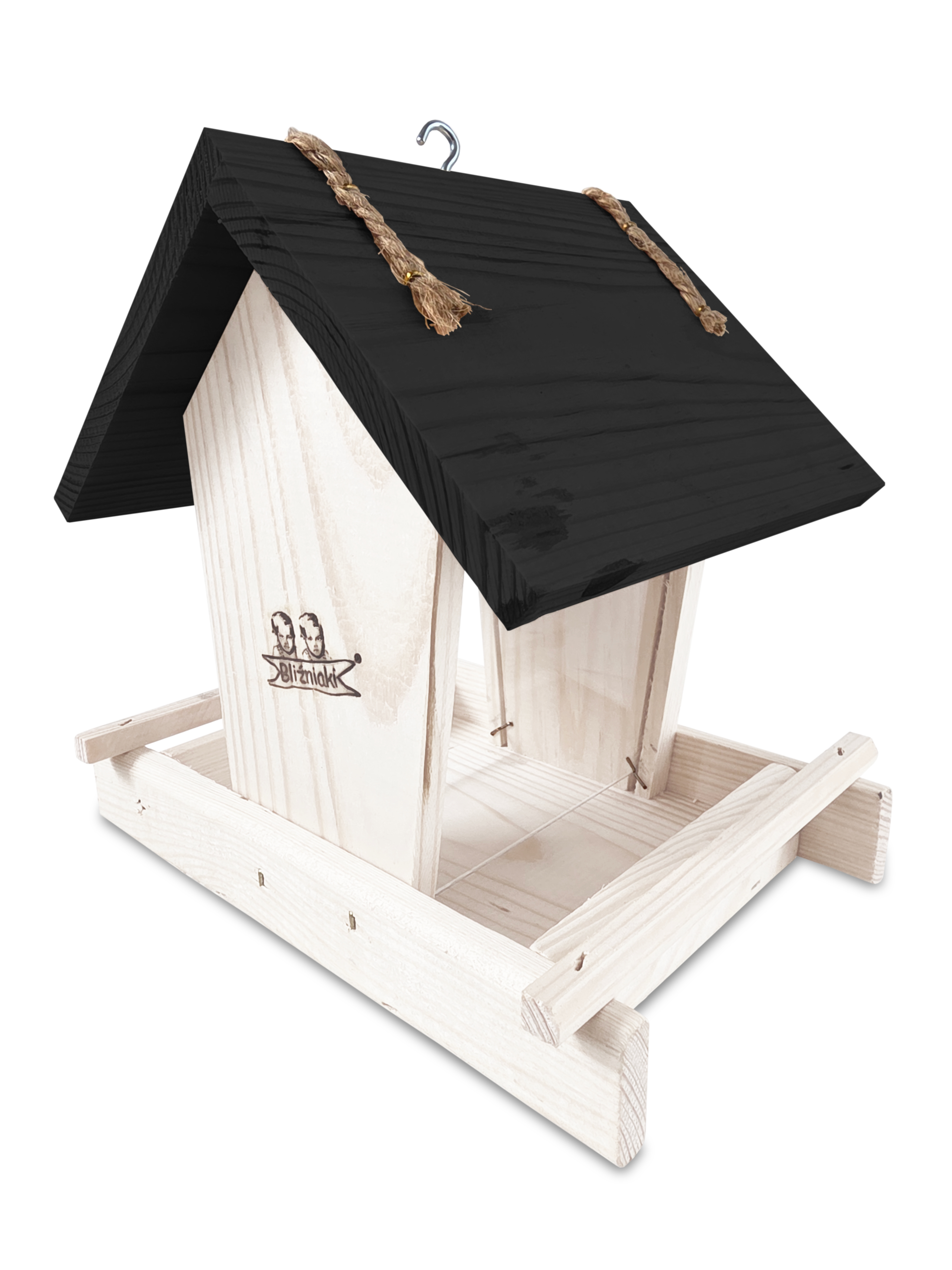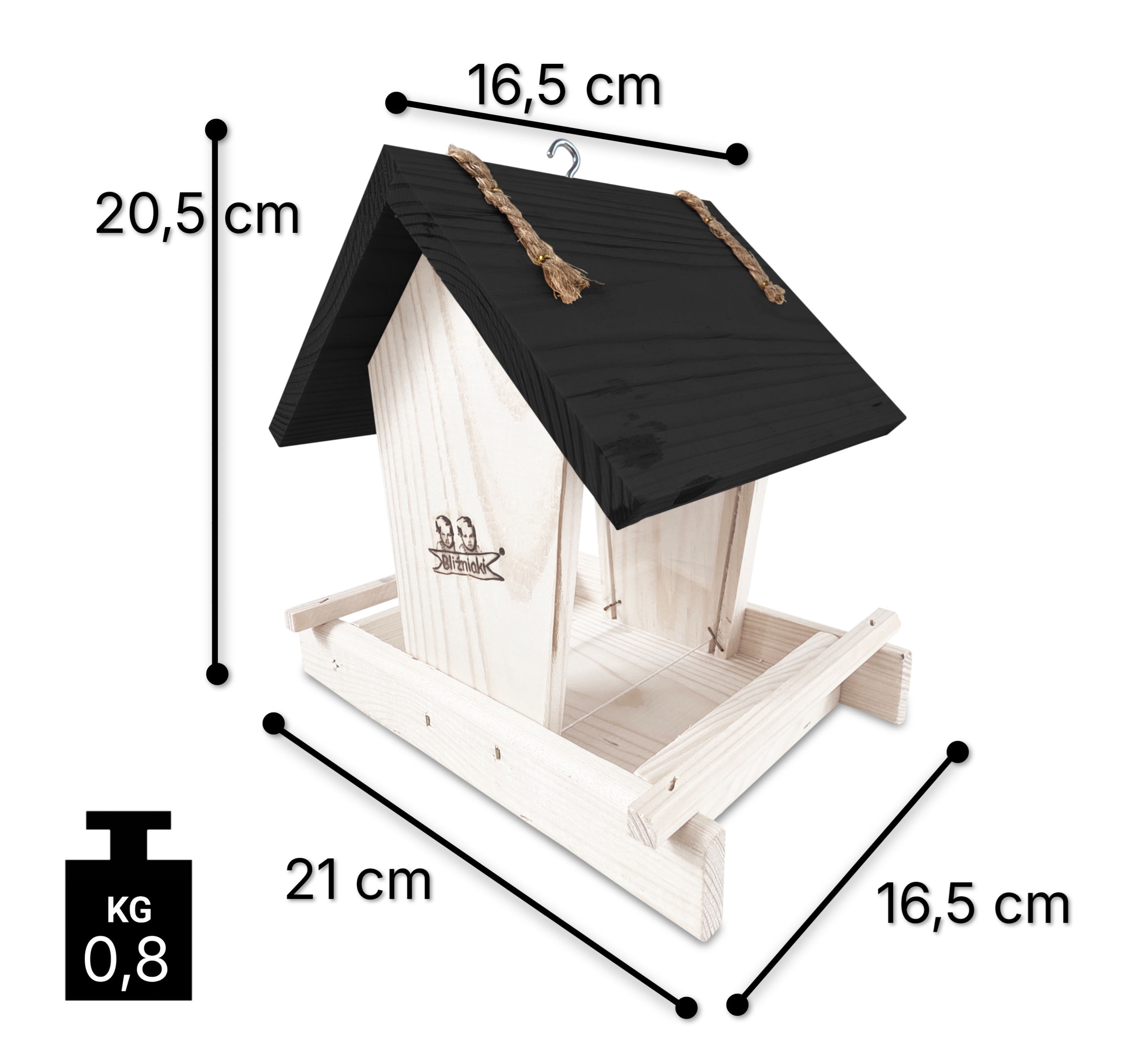 - Karmnik wykonany jest w całości z drewna iglastego, KOLOR BIAŁY Z CZARNYM DACHEM