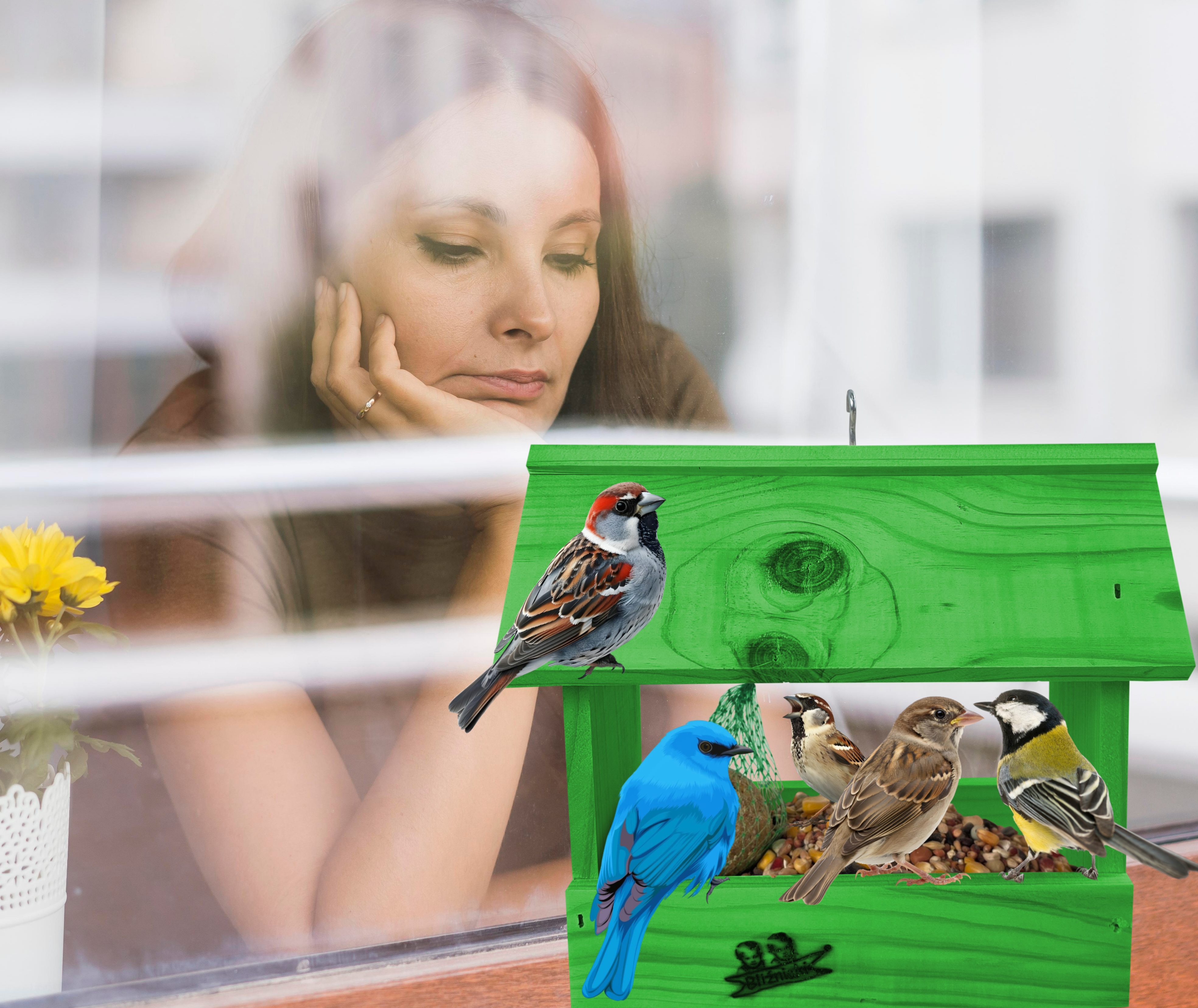 Przedmiotem sprzedaży jest ozdobny drewniany karmnik dla ptaków budka domek na balkon K204 ZZ w kolorze zielonym