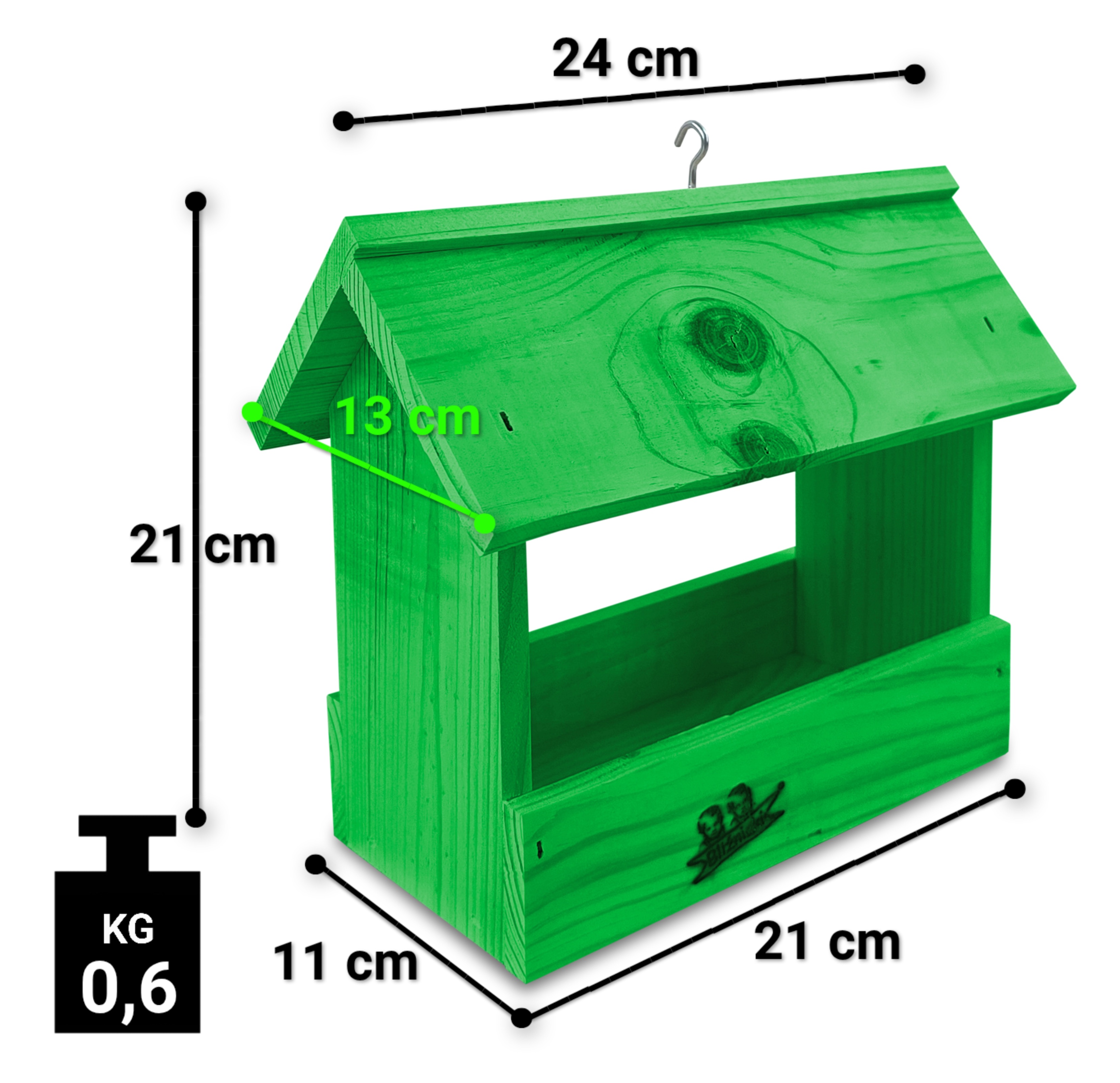- Karmnik wykonany jest w całości z drewna iglastego, KOLOR ZIELONY