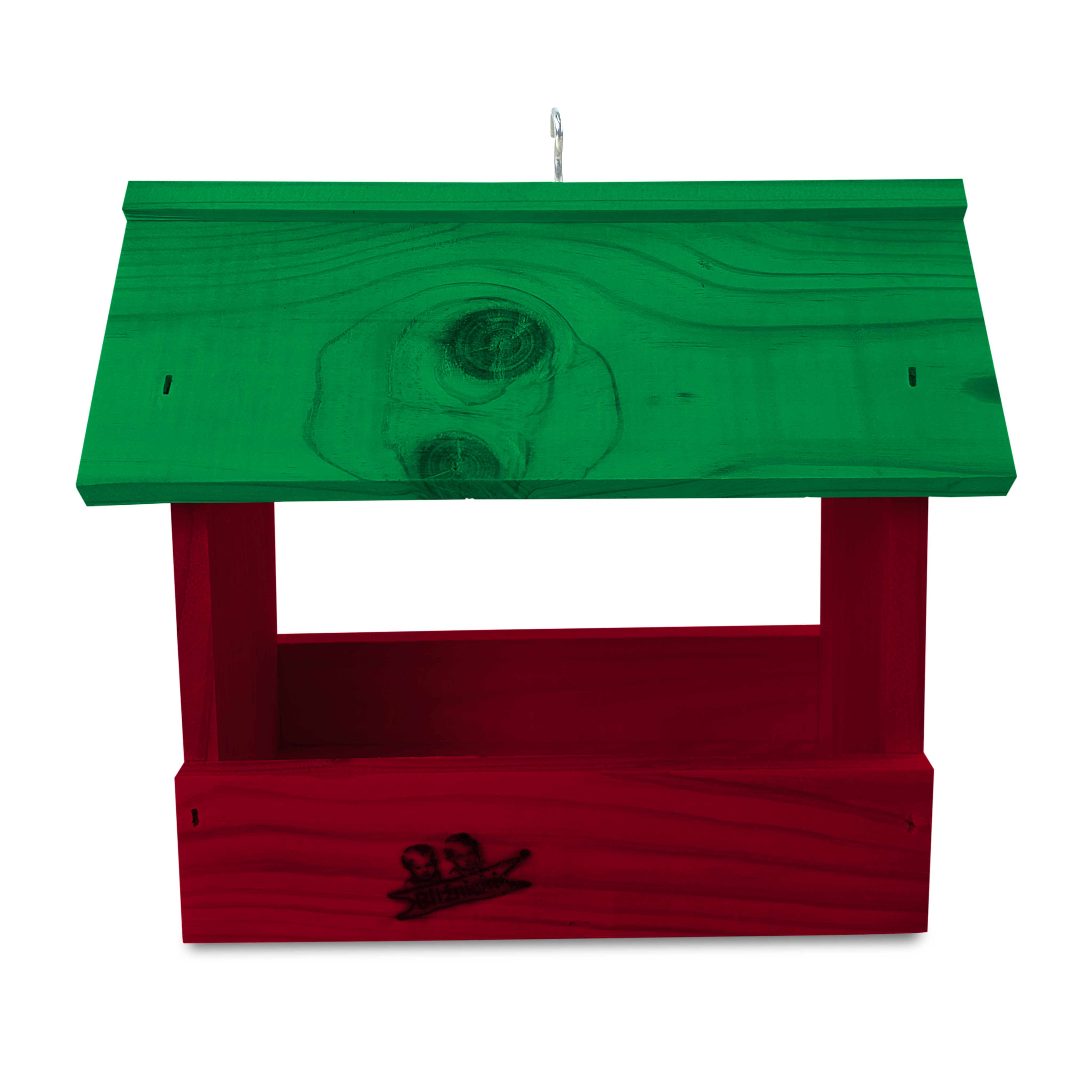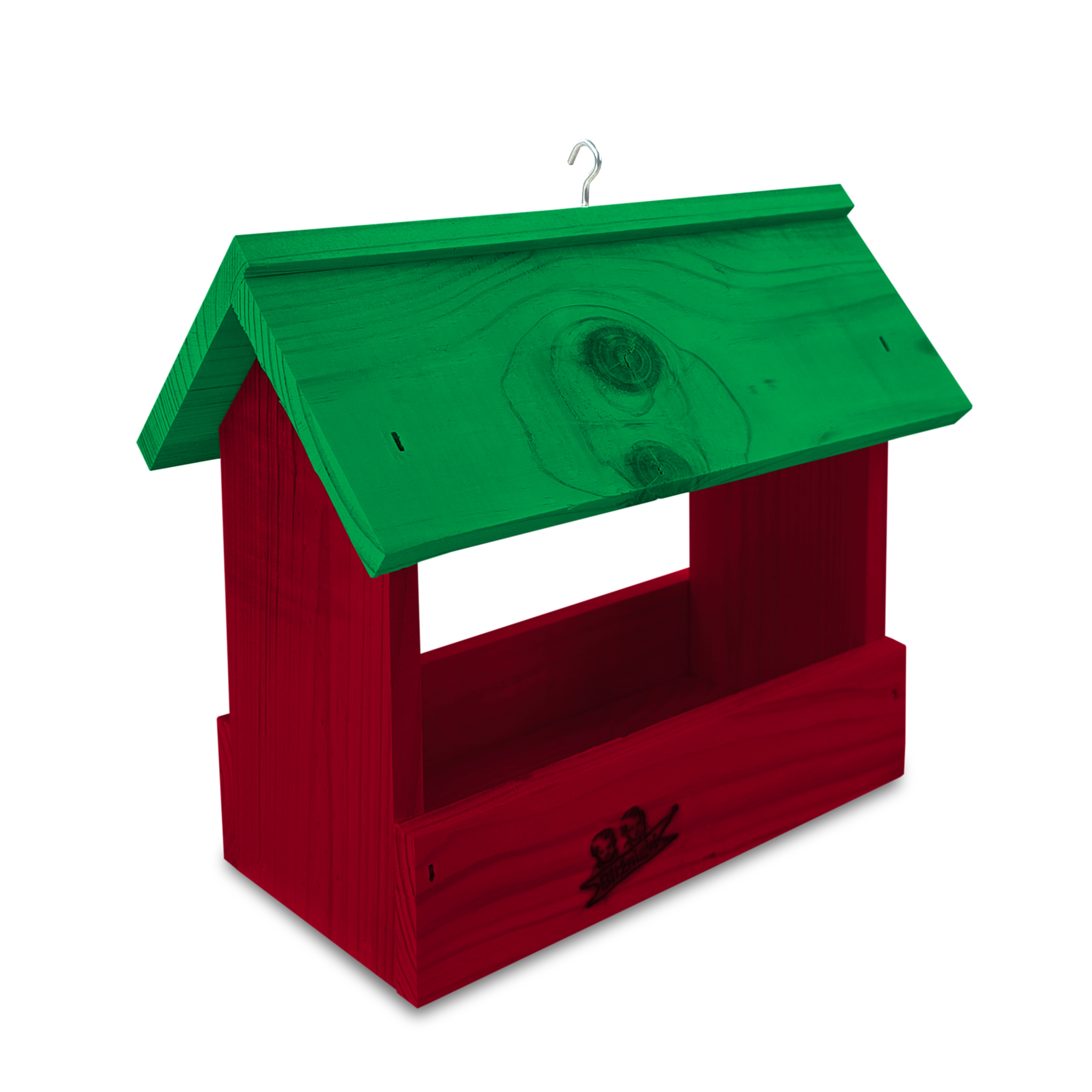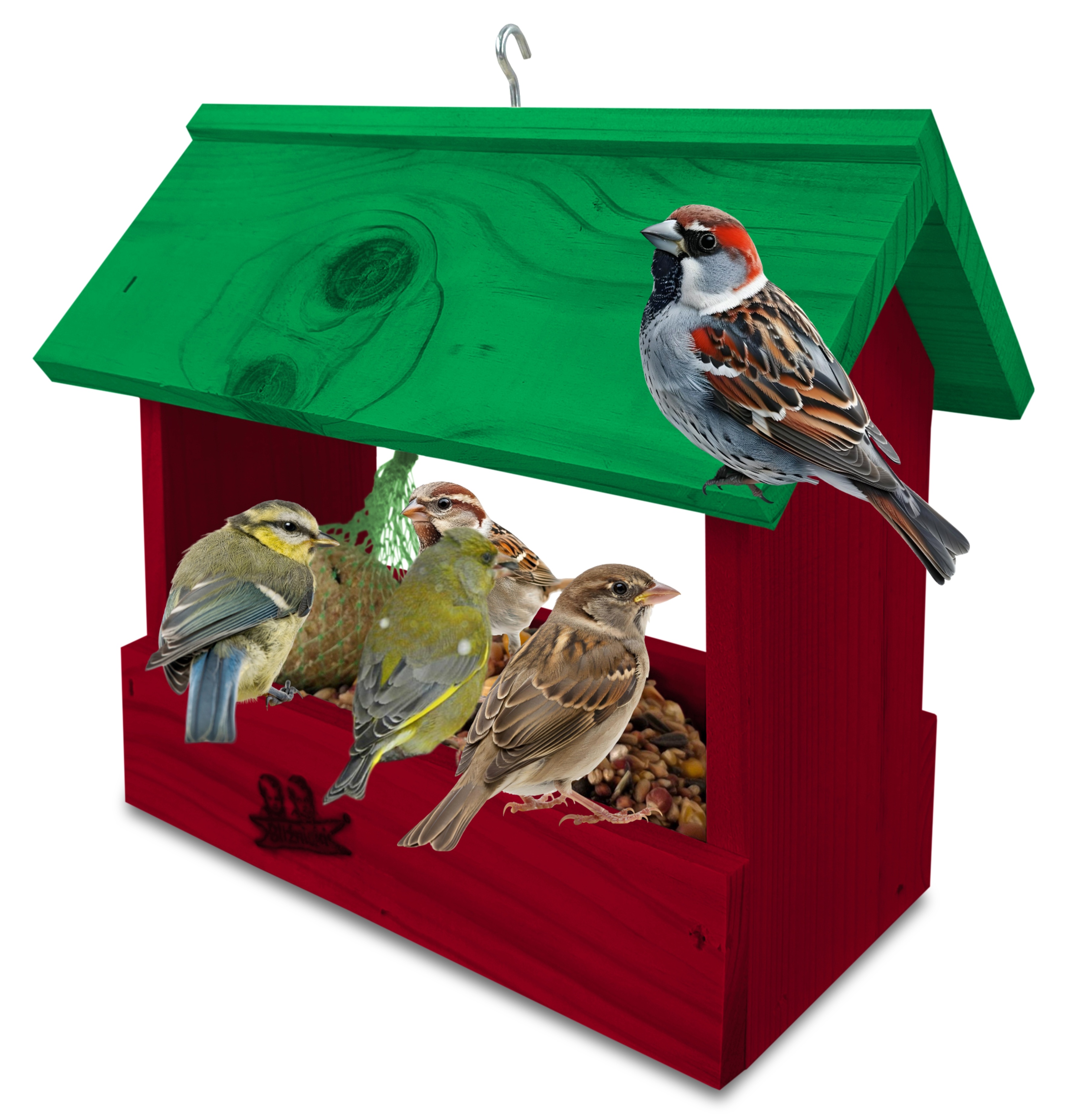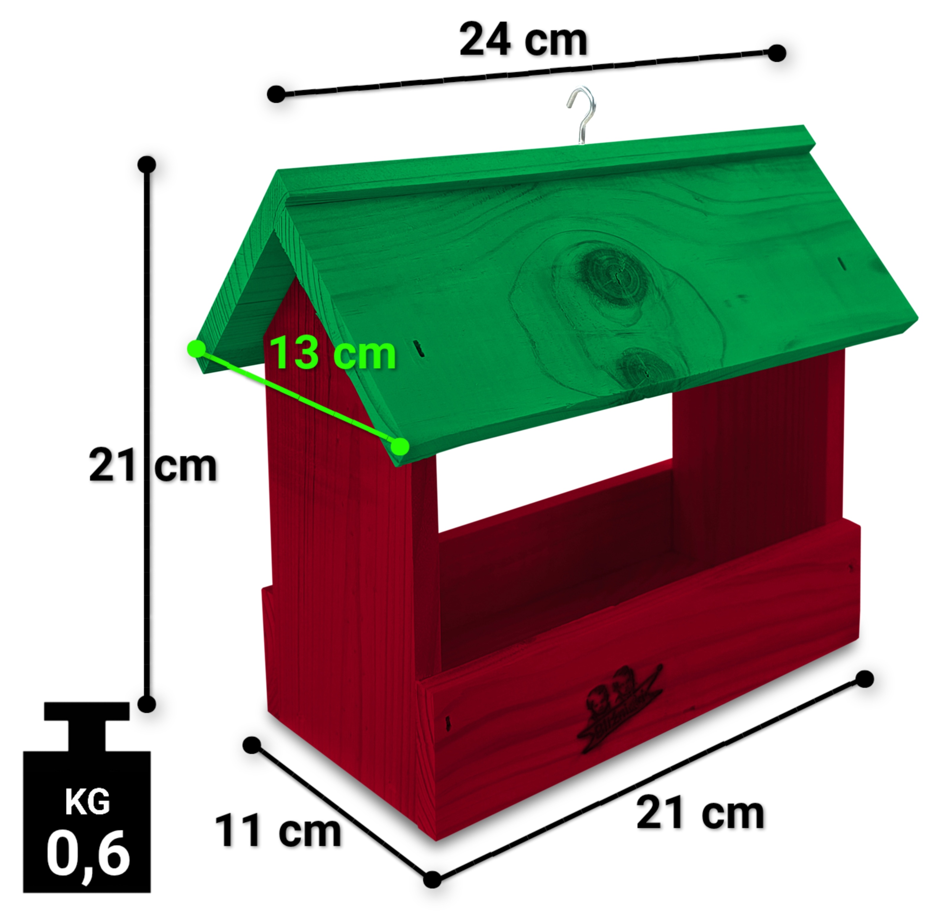- Karmnik wykonany jest w całości z drewna iglastego, KOLOR MAHONIOWY Z ZIELONYM DACHEM
