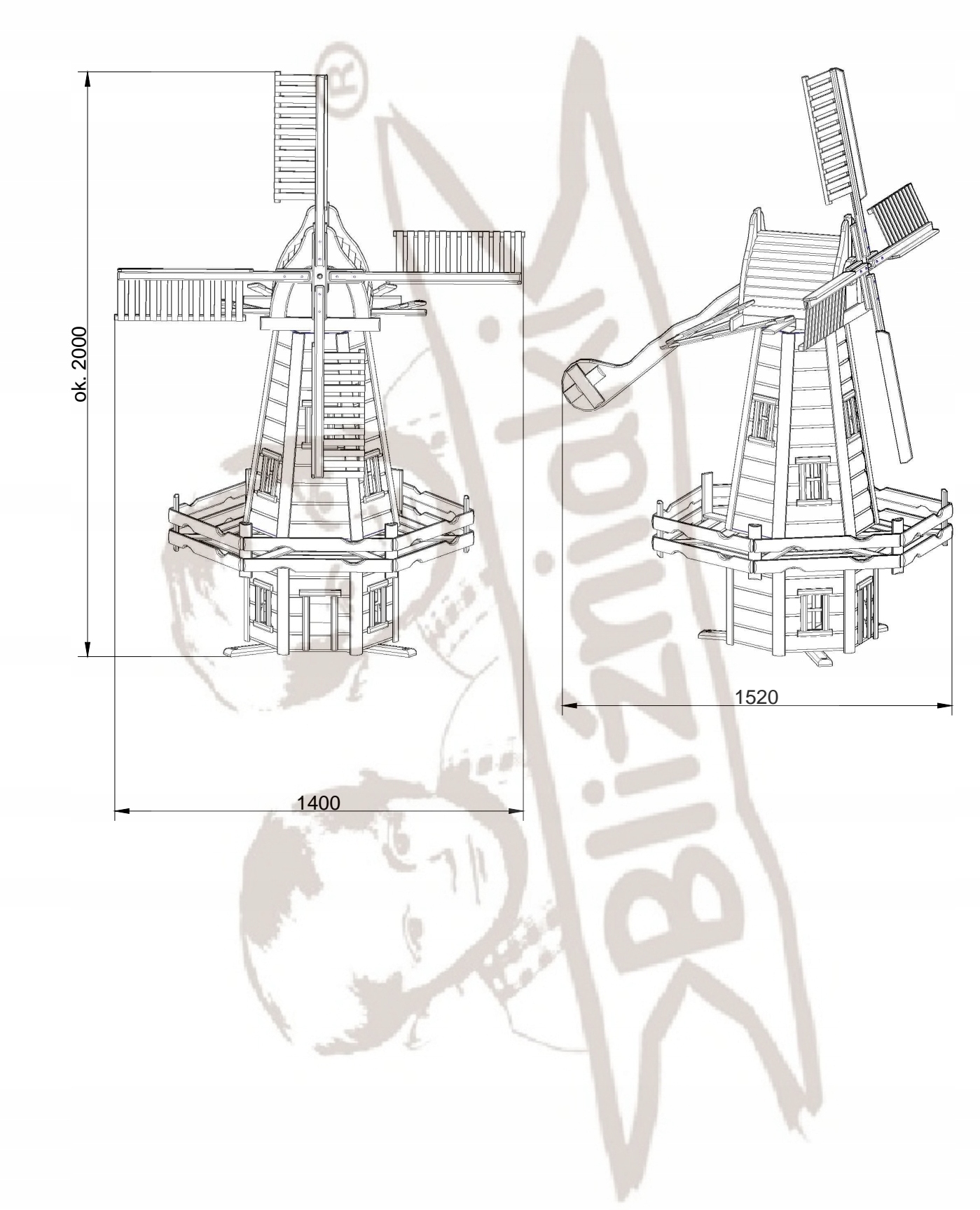 Największy Wiatrak Holenderski Z Drewna 200cm Młyn (H3)