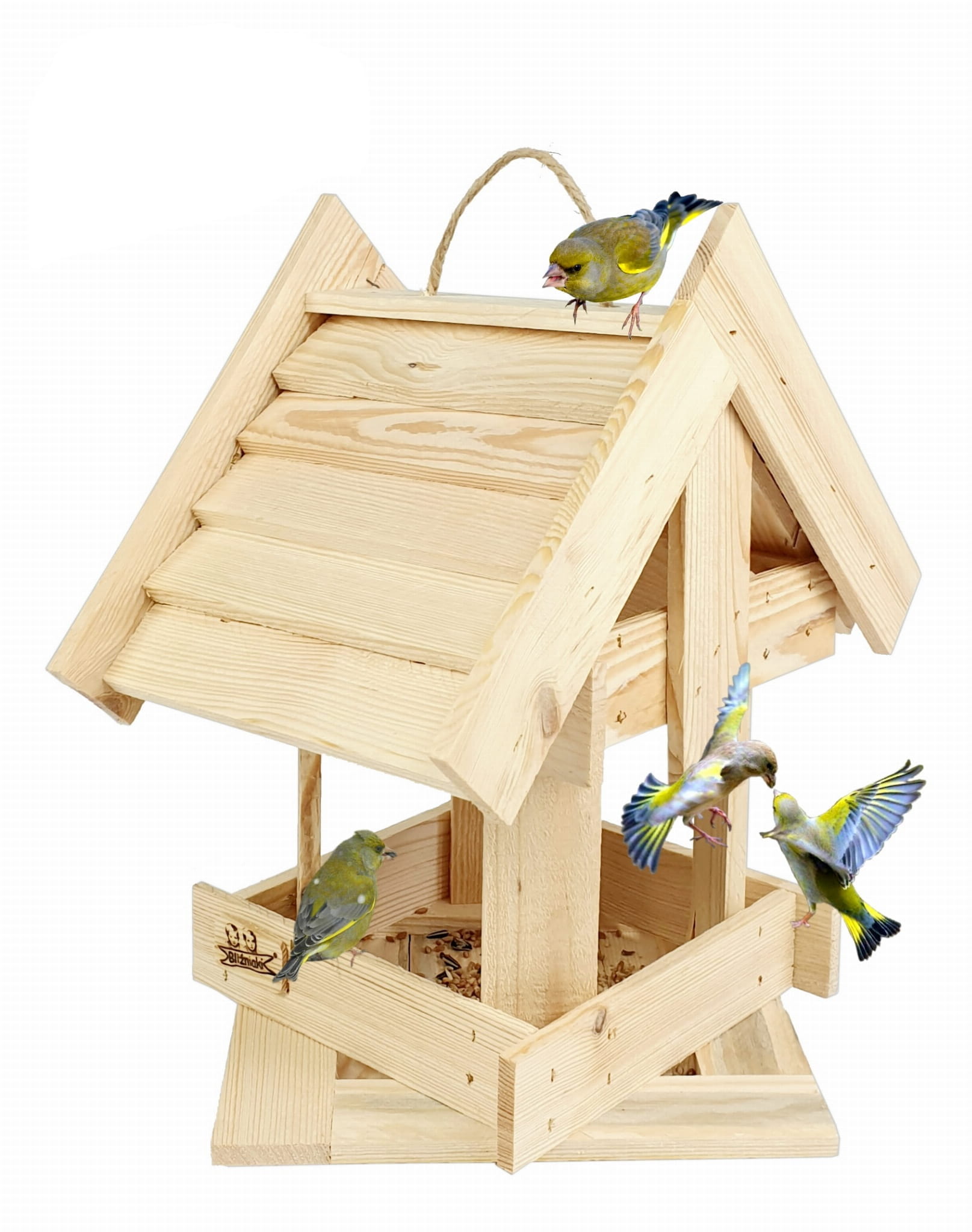 Naturalny Karmnik dla Ptaków Ekologiczna Budka z Drewna na Karmę Ptasia Stołówka Wisząca do Ogrodu na Działkę (K201 N)