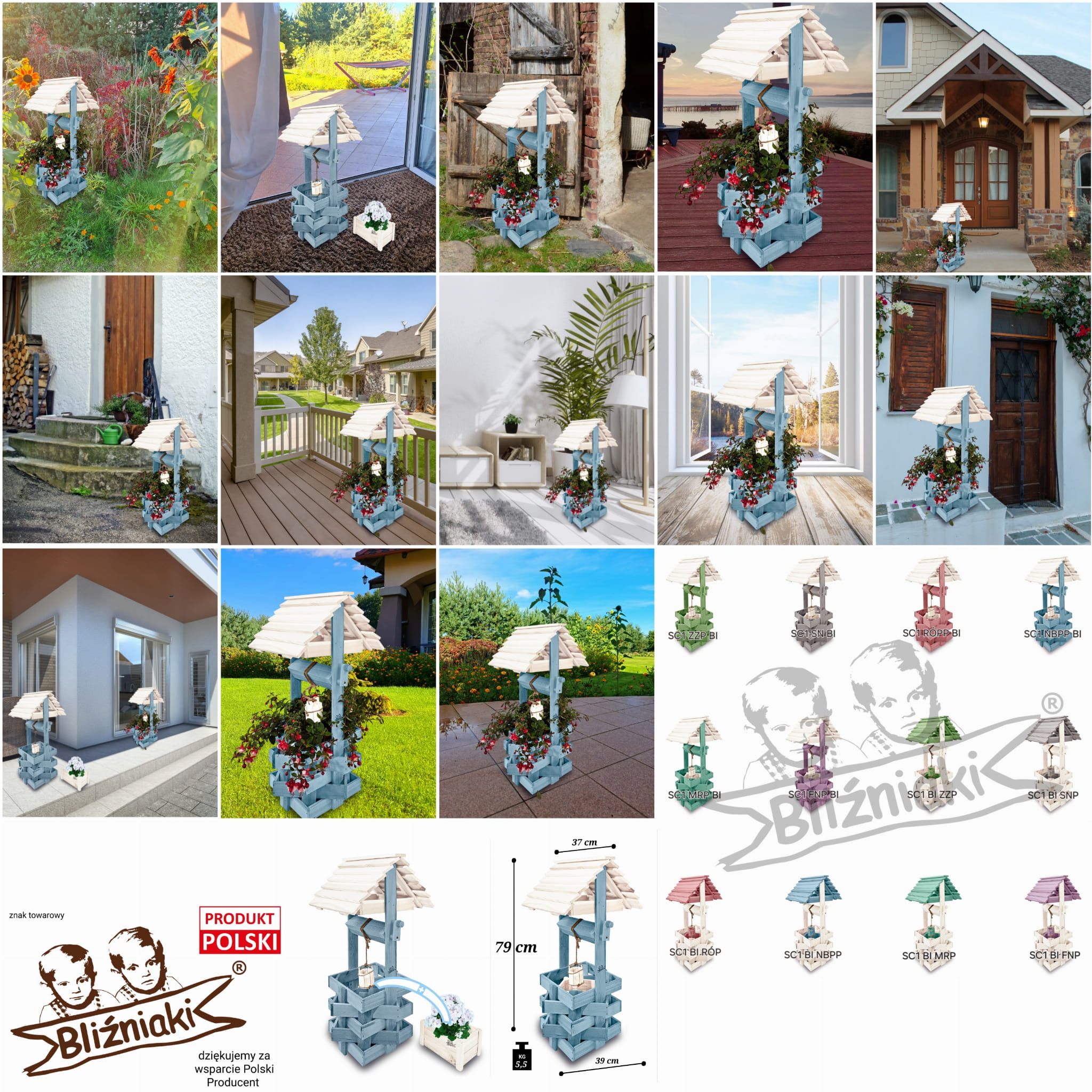 Ogrodowa donica na kwiay do domu i ogrodu Studnia drewniana dekoracyjna Ozdoba wnętrz i ogrodu Rękodzieło Studzienka na pelargonie Kwietnik doniczki ozdobne Figura ogrodowa Studnie balkonowe tarasowe Studzienki ozdobne Prezent SC1 NBPP BI