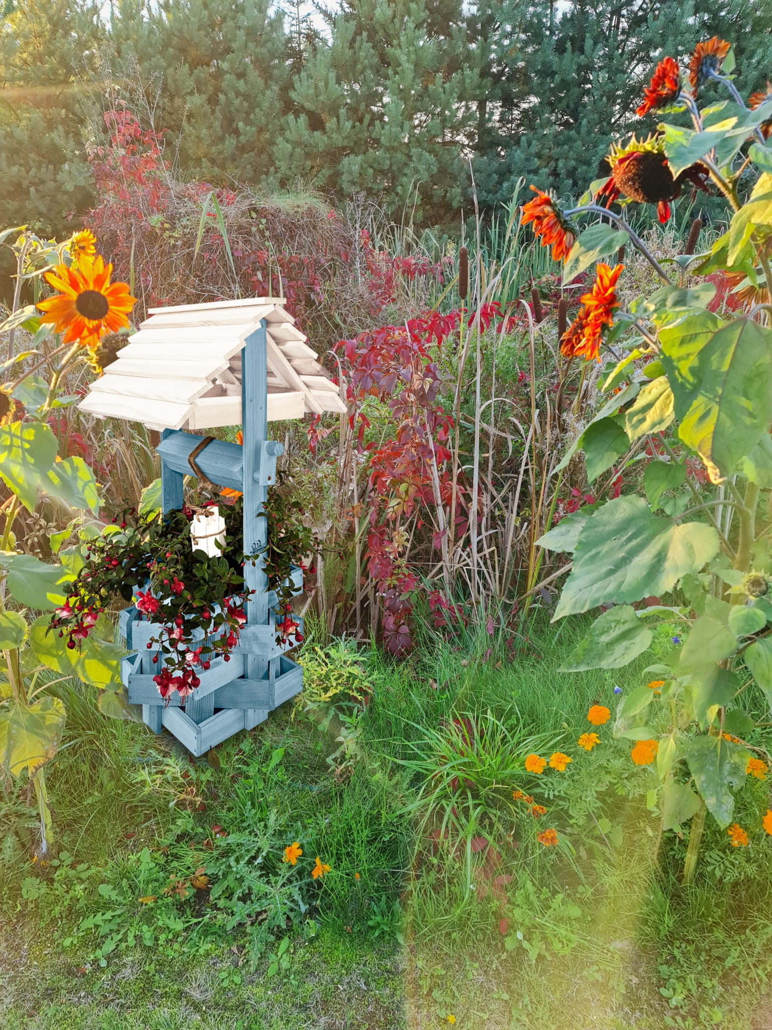 - Studnia została wzbogacona o drewnianą donicę, w której można dodatkowo storzyć miniogródek
