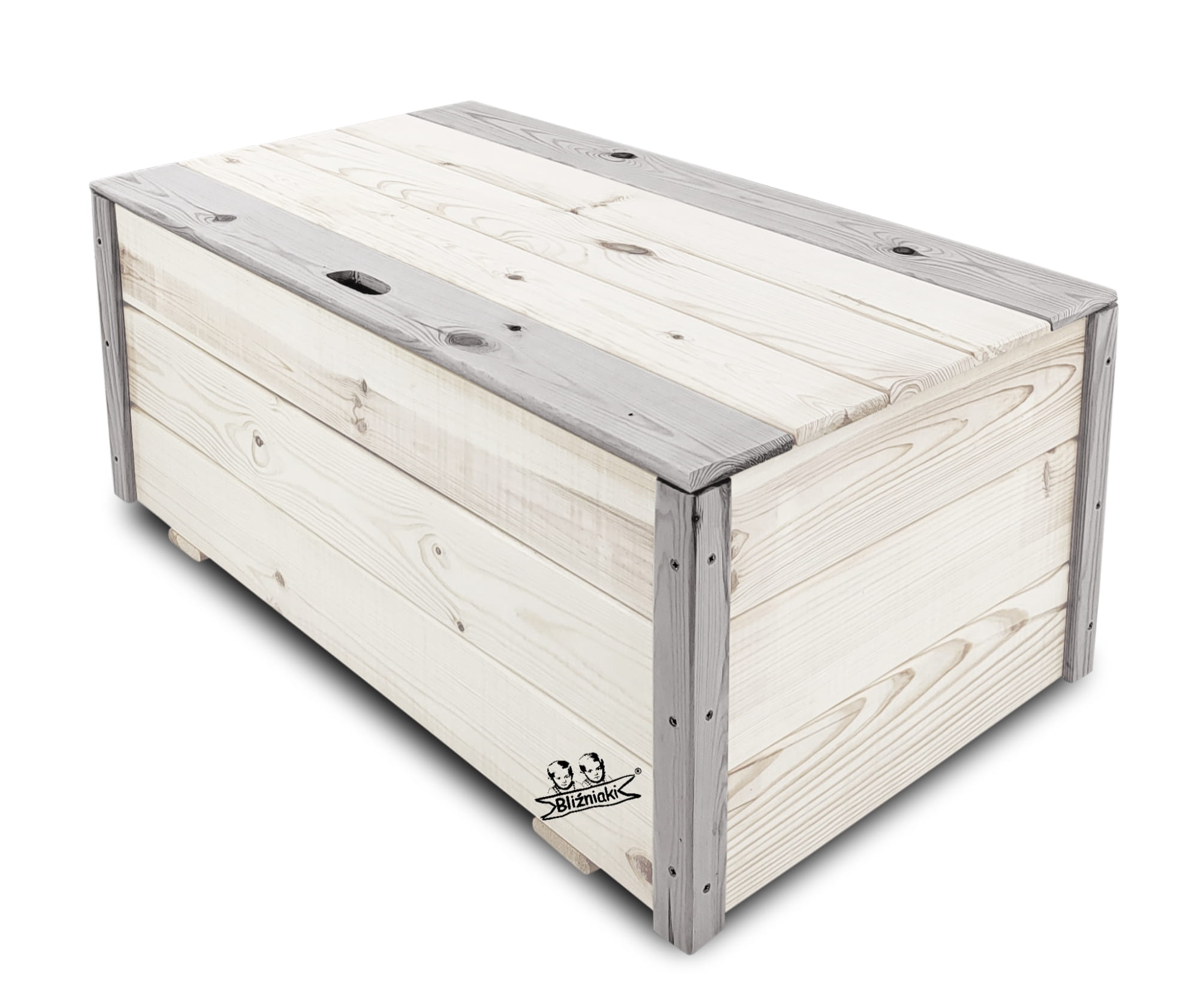 Wykonany z drewna litego, dzięki temu będzie odporny na warunki atmosferyczne i zachowuje estetyczny wygląd na dłużej. Produkt solidnie skonstruowany i wytrzymały na obciążenia, dwukolorowy, w podstawowej przeważającej części produkt jest koloru BIAŁEGO, został wykończony w kątownikach i listwach kolorem PASTELOWYM SZARYM. Dzięki temu zabiegowi produktowi został nadany styl i elegancki design.