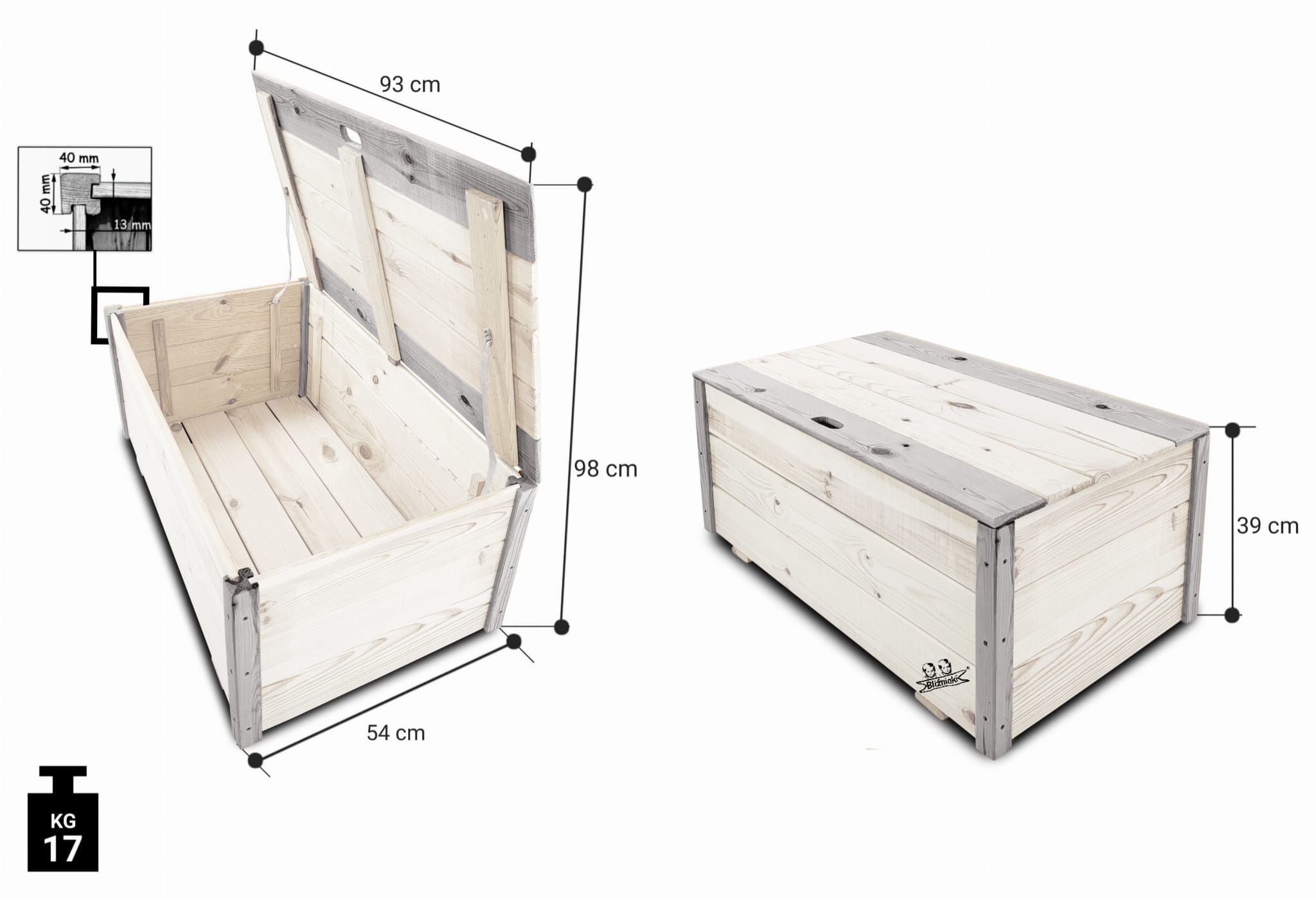 Poddane impregnacji drewno sprawia, że skrzynia HADE2 BI SNP jest odporna na szkodliwe działanie wody oraz wilgoci, promieni UV, a także grzybami i pleśnią, może być więc przechowywana przez cały rok na zewnątrz, na tarasie, w ogrodzie, czy na balkonach .