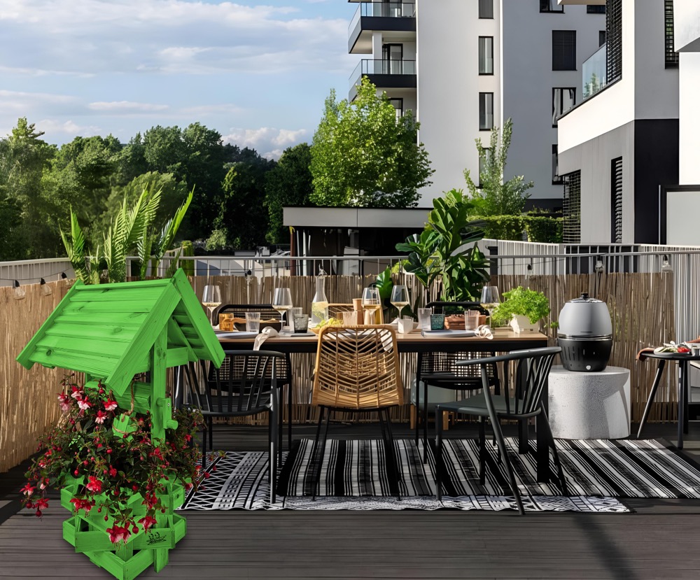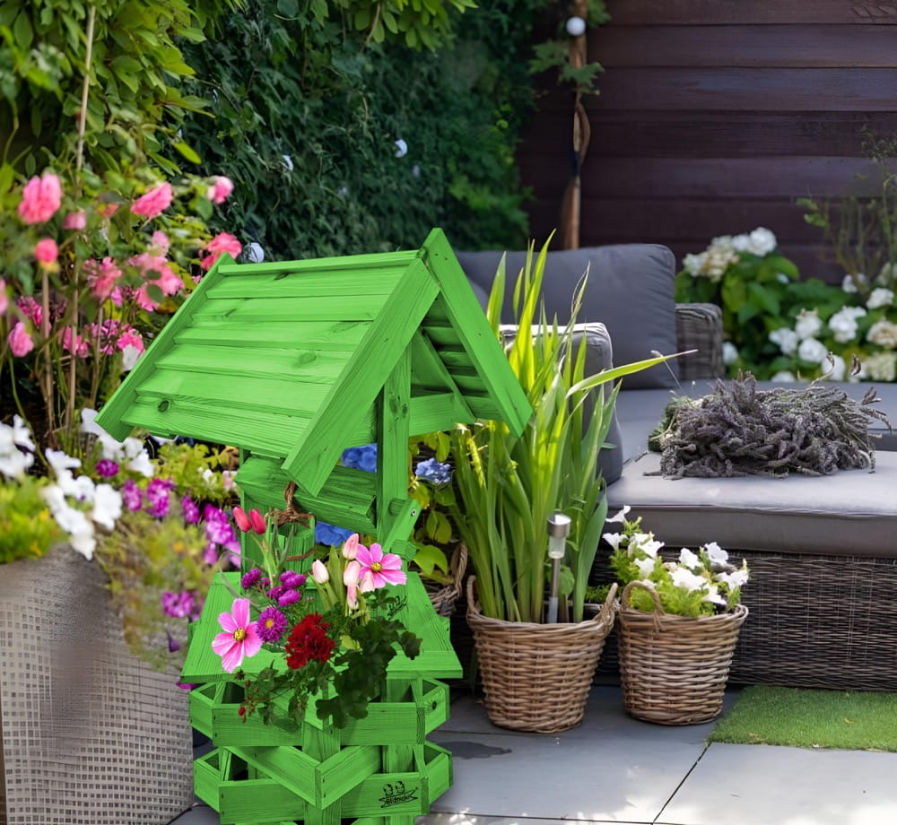 Nasza dekoracyjna studnia w kolorze zielonym wykonana z suszonego drewna sosnowego to nie tylko piękny element dekoracyjny, ale również wyraz ekologicznego podejścia do projektowania ogrodów.