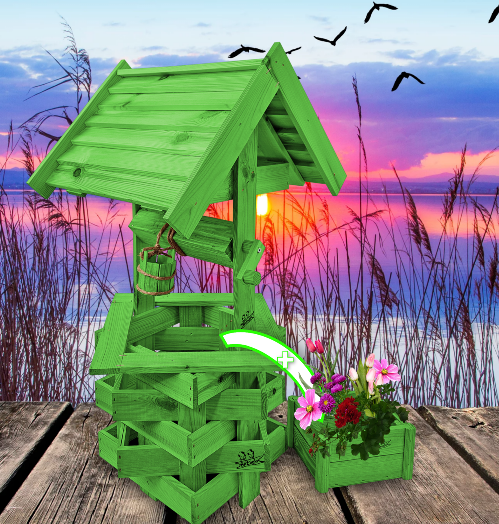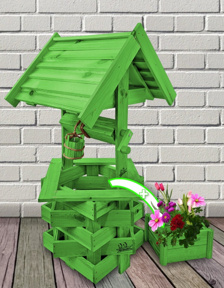 - Studnia została wzbogacona o drewnianą donicę, w której można dodatkowo stworzyć miniogródek