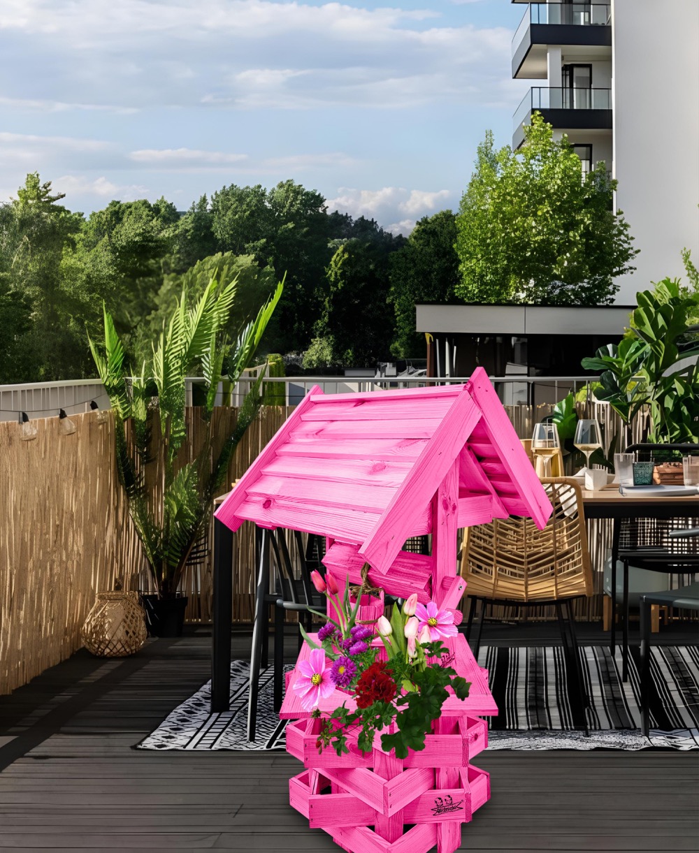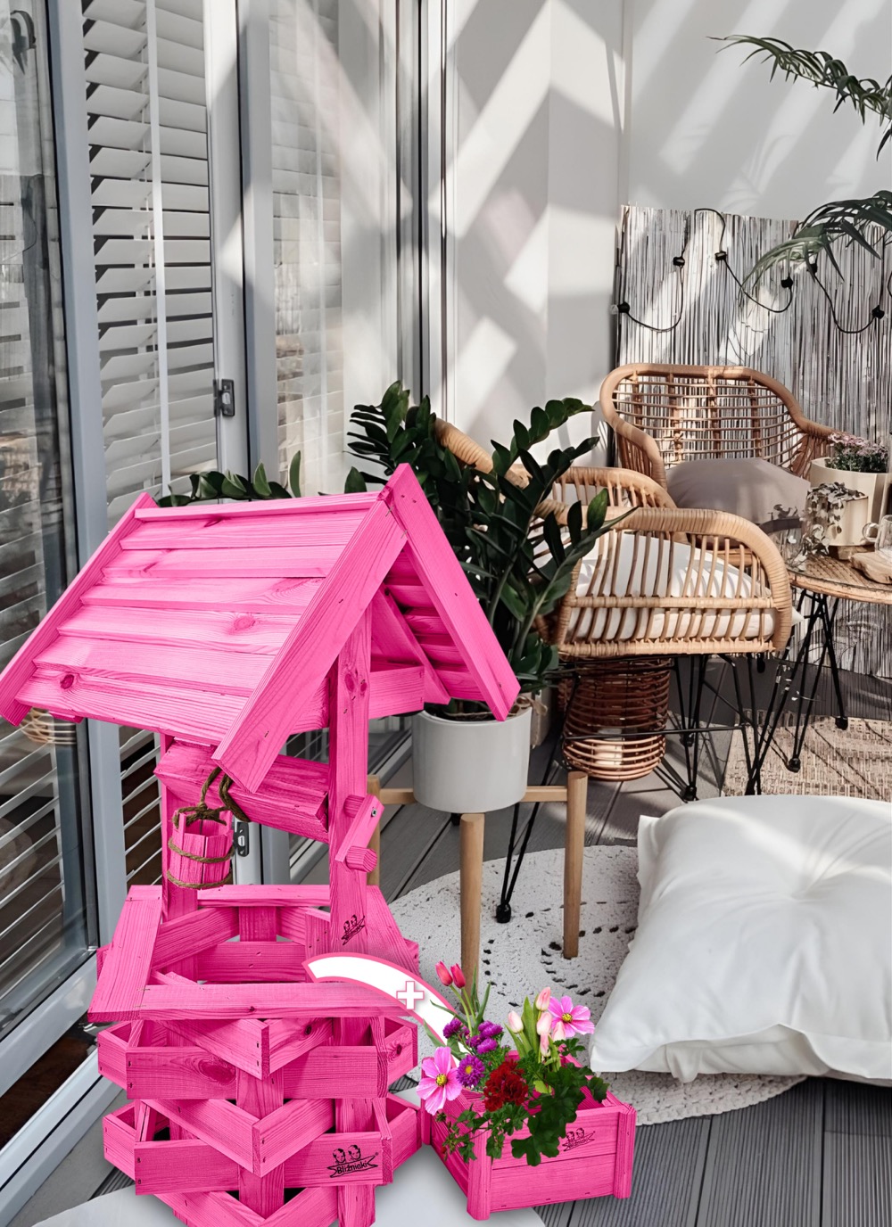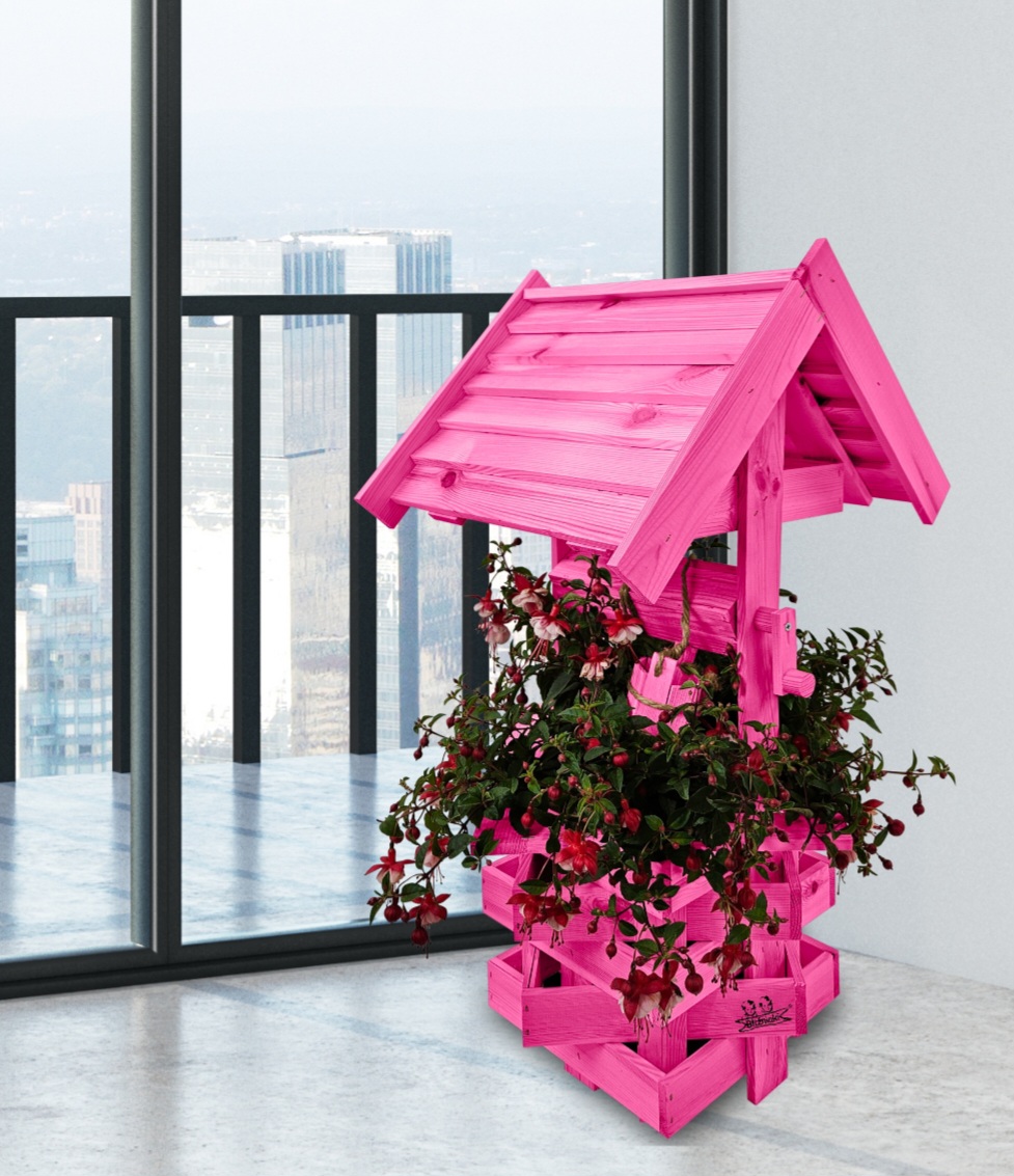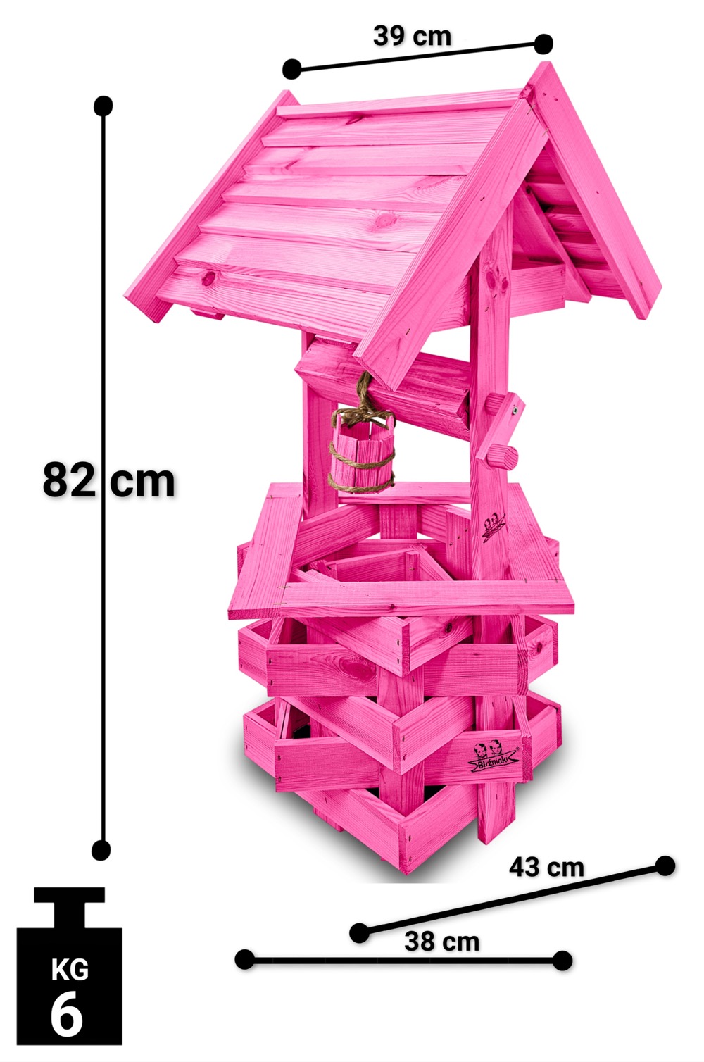Nasza dekoracyjna studnia w kolorze różowym wykonana z suszonego drewna sosnowego to nie tylko piękny element dekoracyjny, ale również wyraz ekologicznego podejścia do projektowania ogrodów.