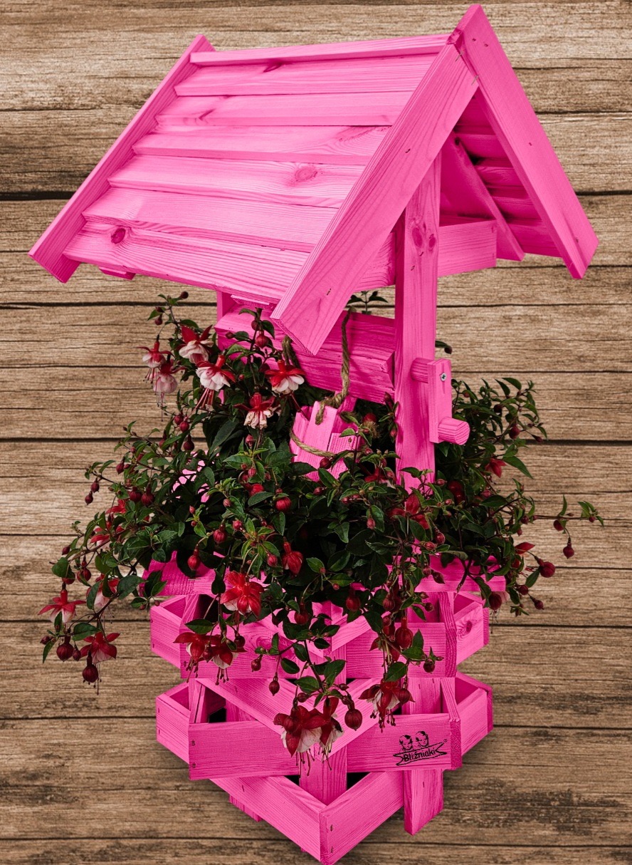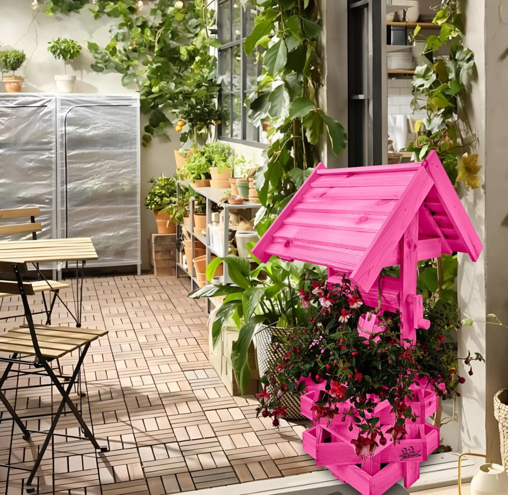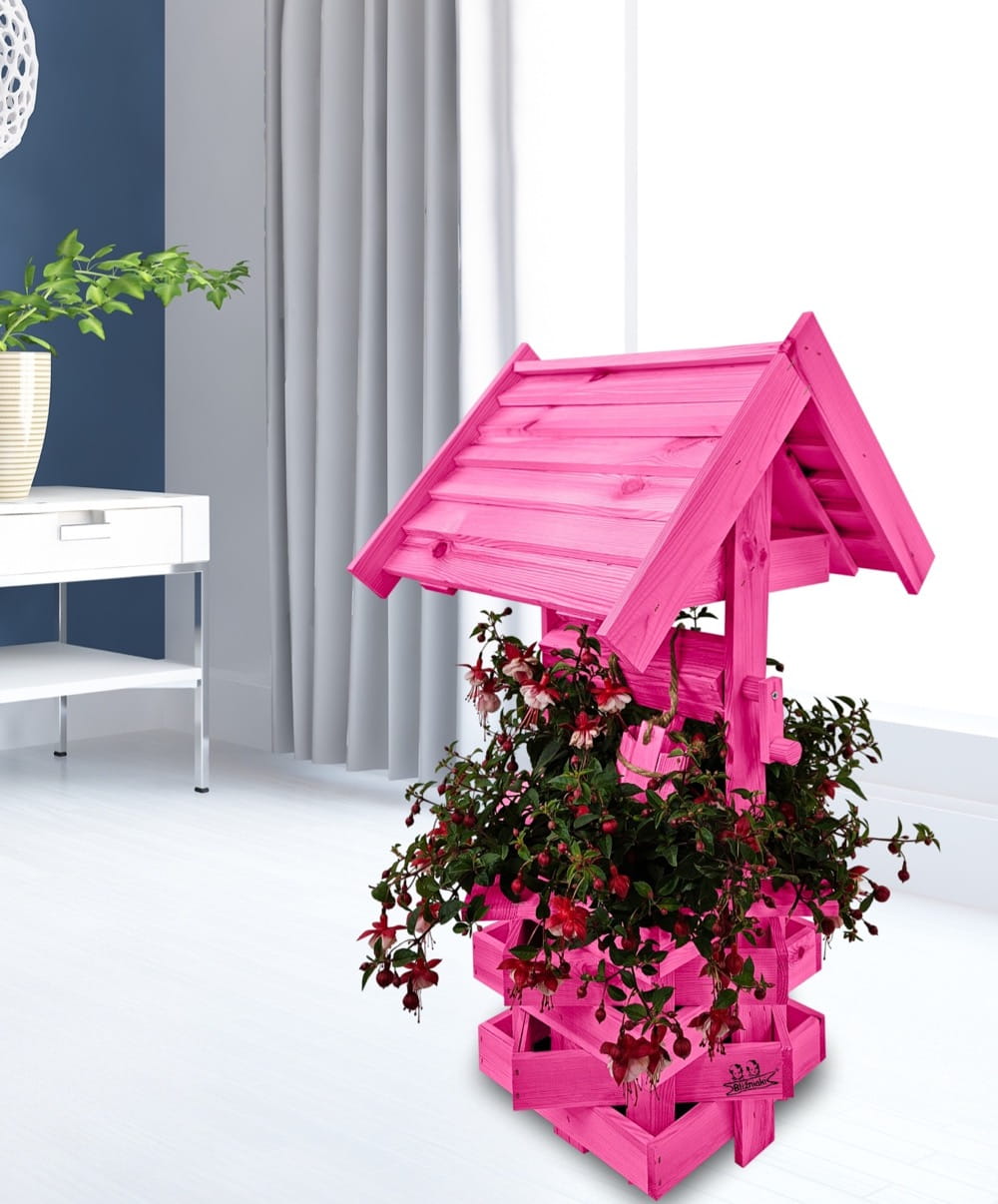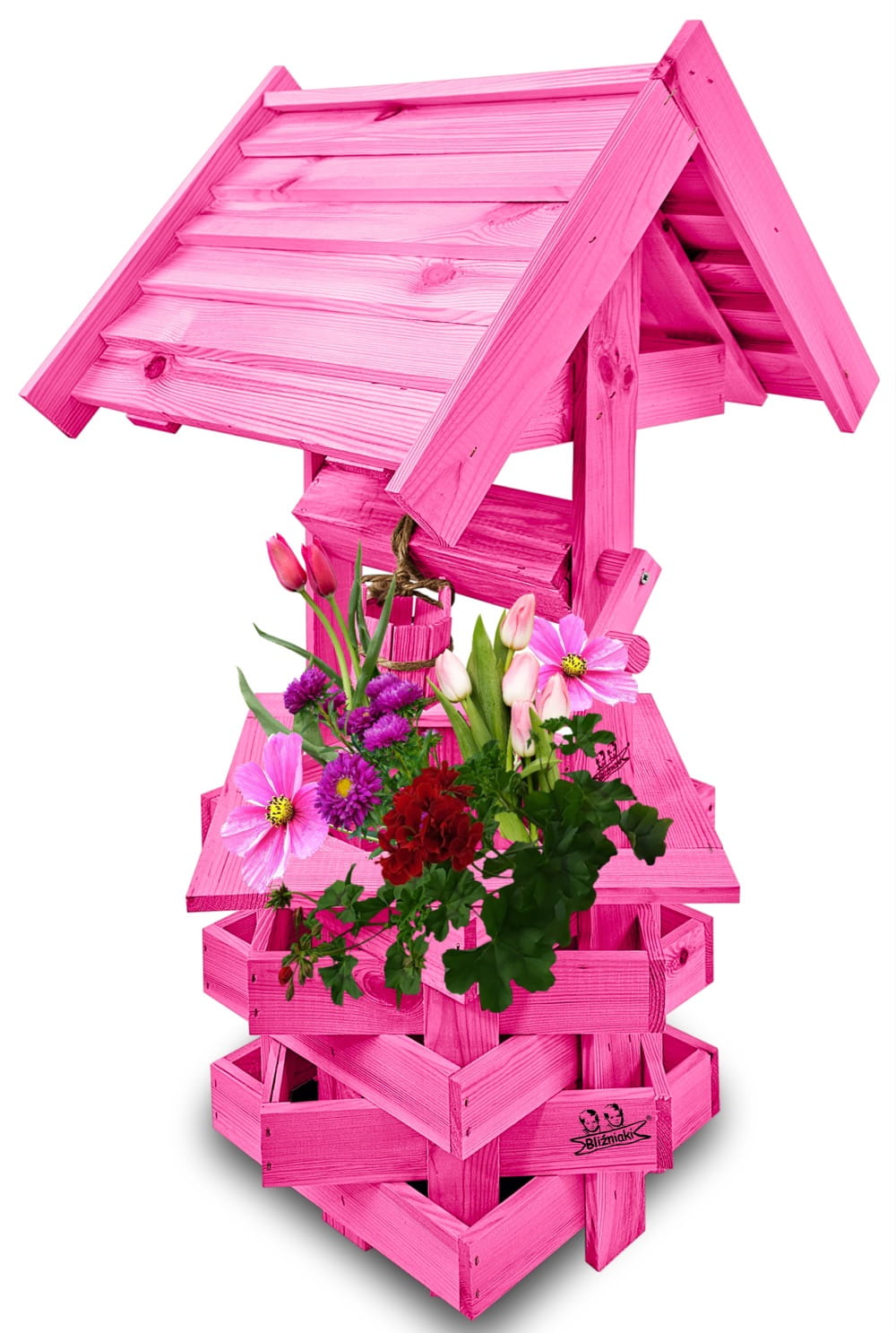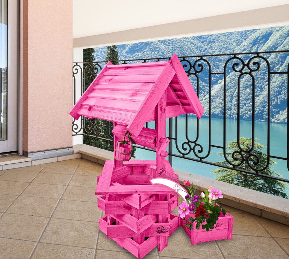 Nasza dekoracyjna studnia w kolorze różowym wykonana z suszonego drewna sosnowego to nie tylko piękny element dekoracyjny, ale również wyraz ekologicznego podejścia do projektowania ogrodów.
