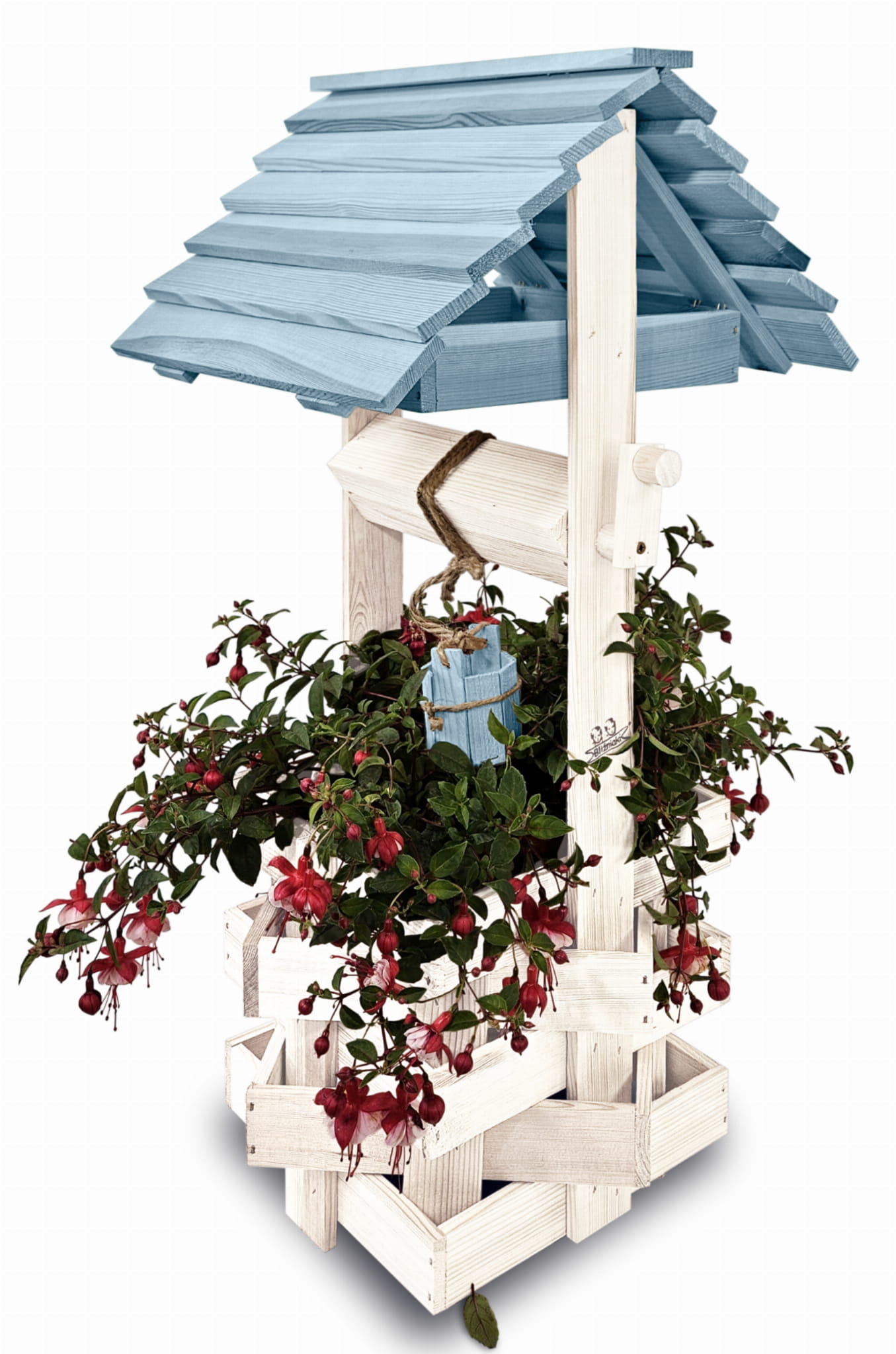 Ozdobna studnia drewniana do domu i ogrodu Studnia ogrodowa Studzienki ozdobne Doniczki Prezent Donica na kwiaty i pnącza Kolor PASTELOWY JASNY NIEBIESKI Studnie ogrodowe balkonowe OZDOBA WNĘTRZ I OGRODU Studzienka na pelargonie Kwietnik SC1 BI NBPP