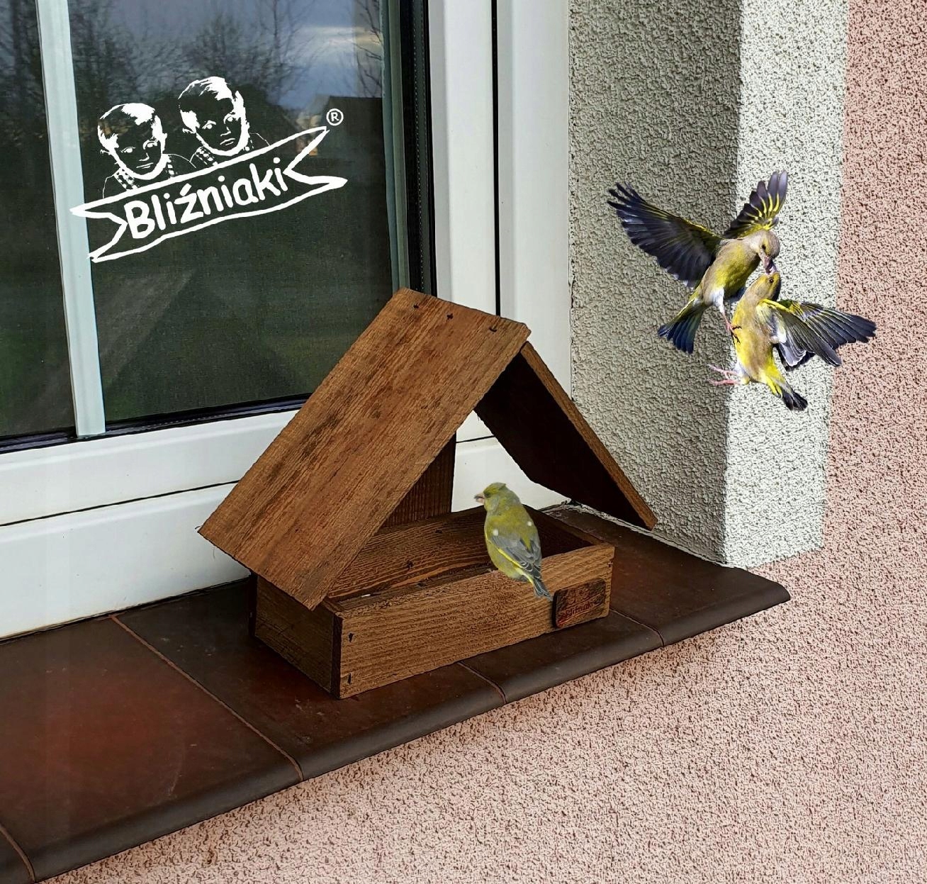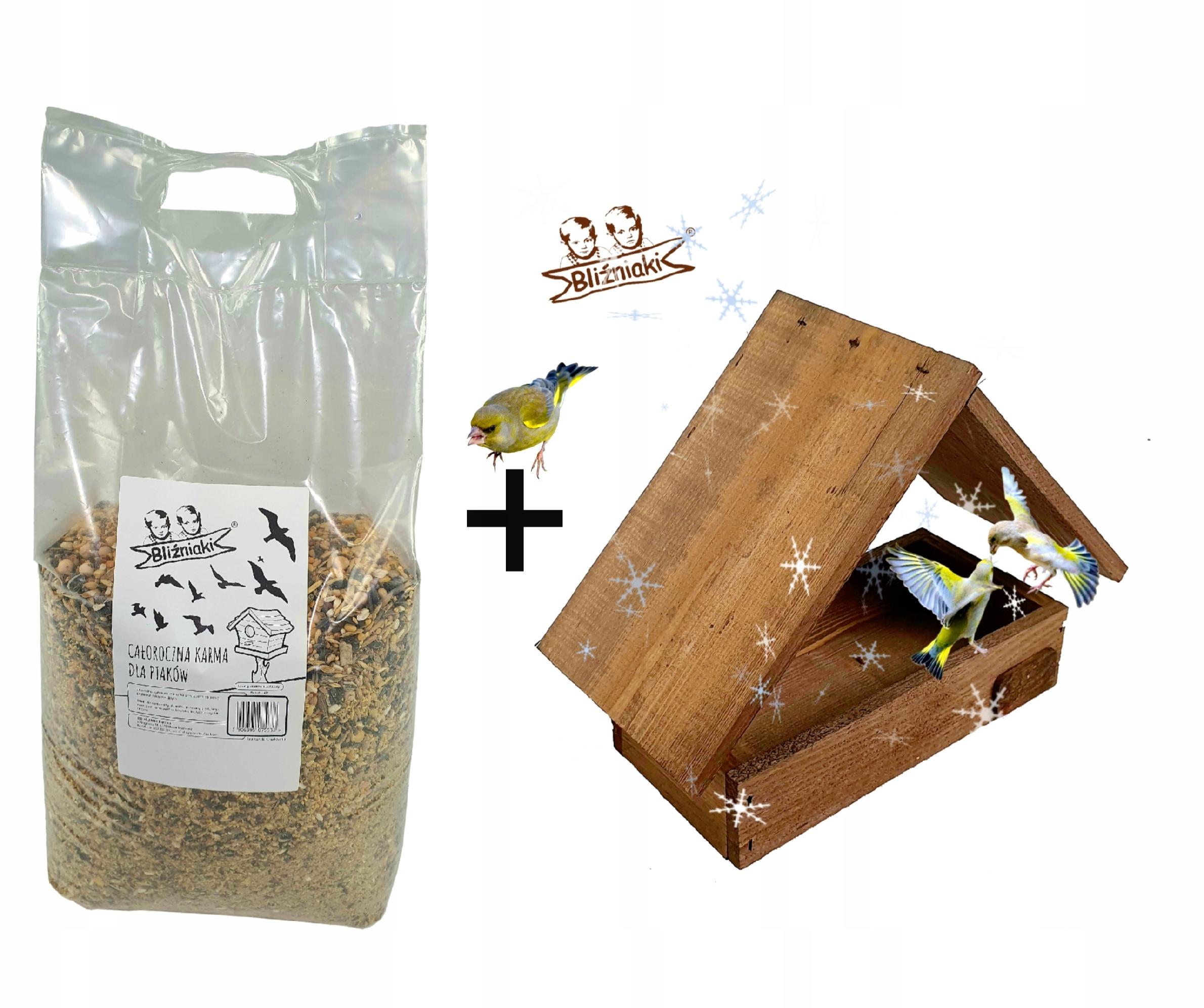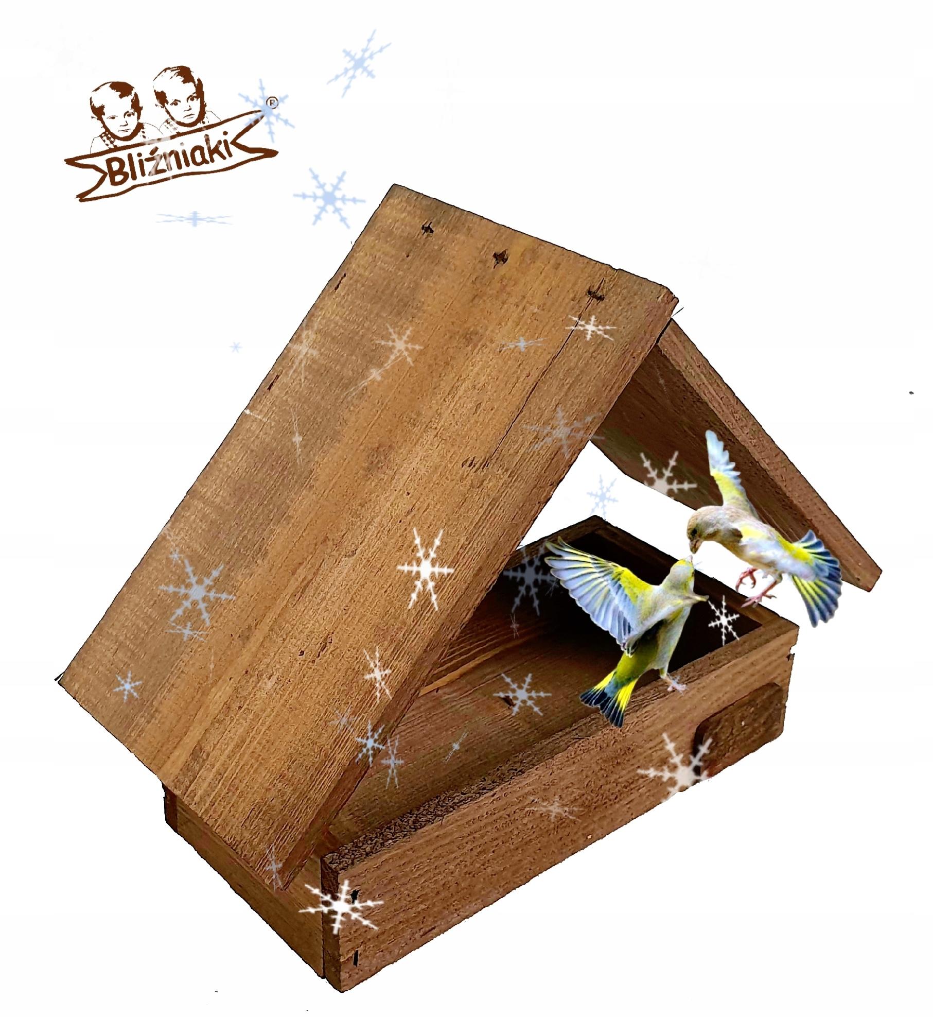 DREWNIANY KARMNIK ZE SKRZYNKĄ NA KARMĘ BUDKA DLA PTAKÓW