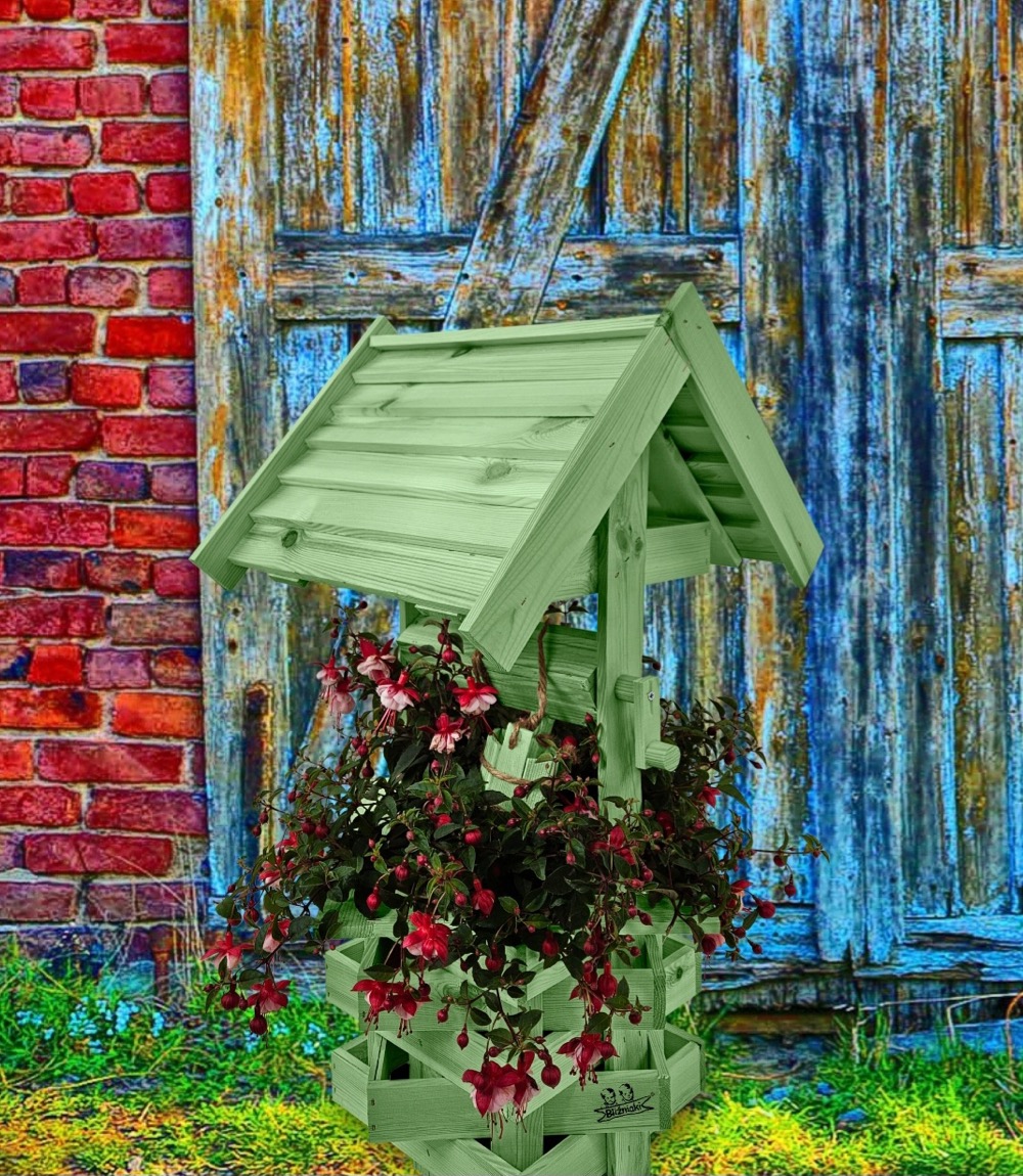 Nasza dekoracyjna studnia w kolorze jasnozielonym wykonana z suszonego drewna sosnowego to nie tylko piękny element dekoracyjny, ale również wyraz ekologicznego podejścia do projektowania ogrodów.