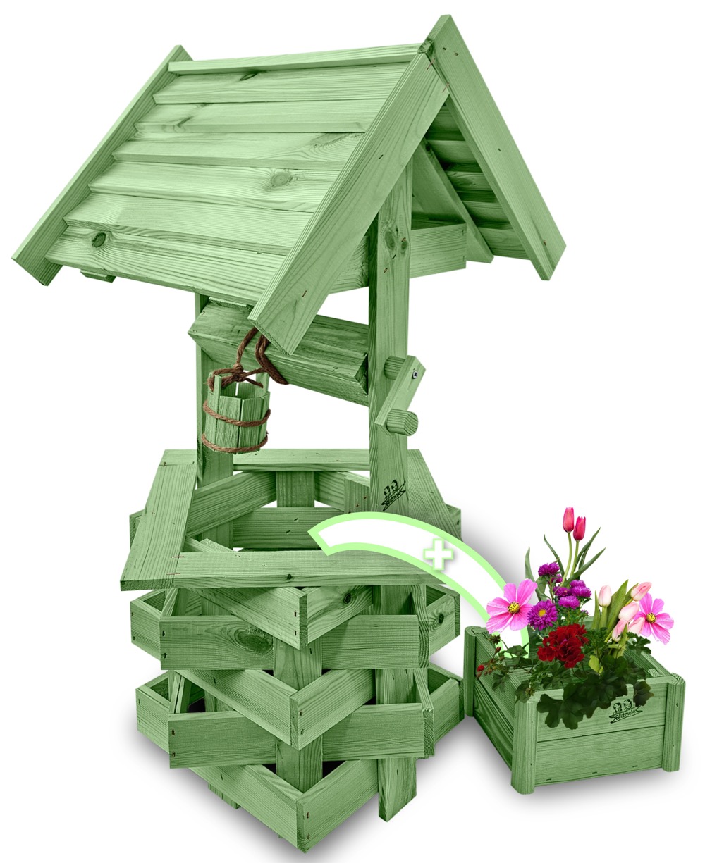 - Studnia została wzbogacona o drewnianą donicę, w której można dodatkowo stworzyć miniogródek
