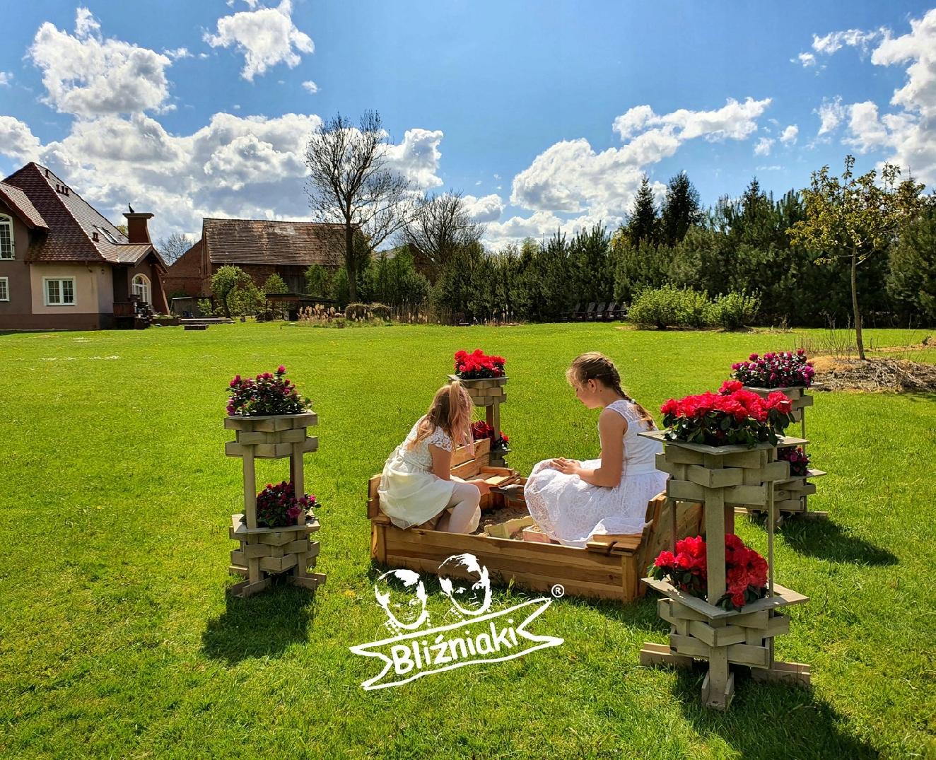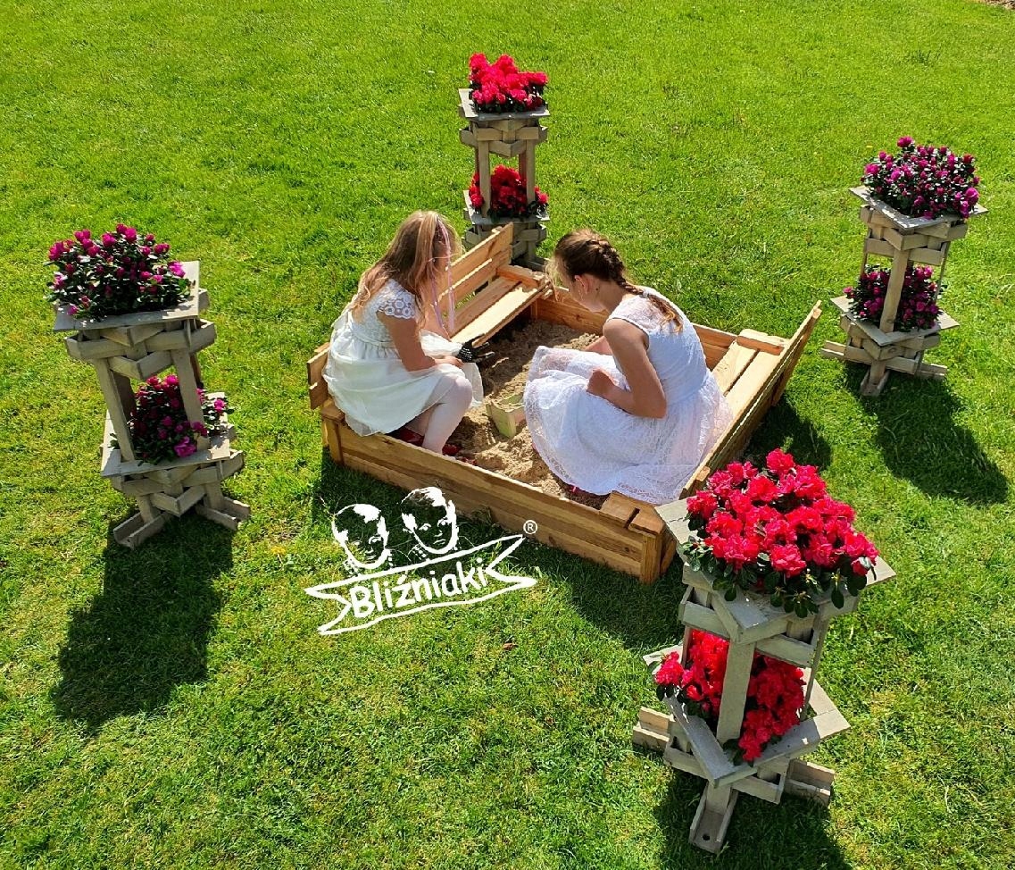 - Piaskownica została wykonana w całości z drewna sosnowego